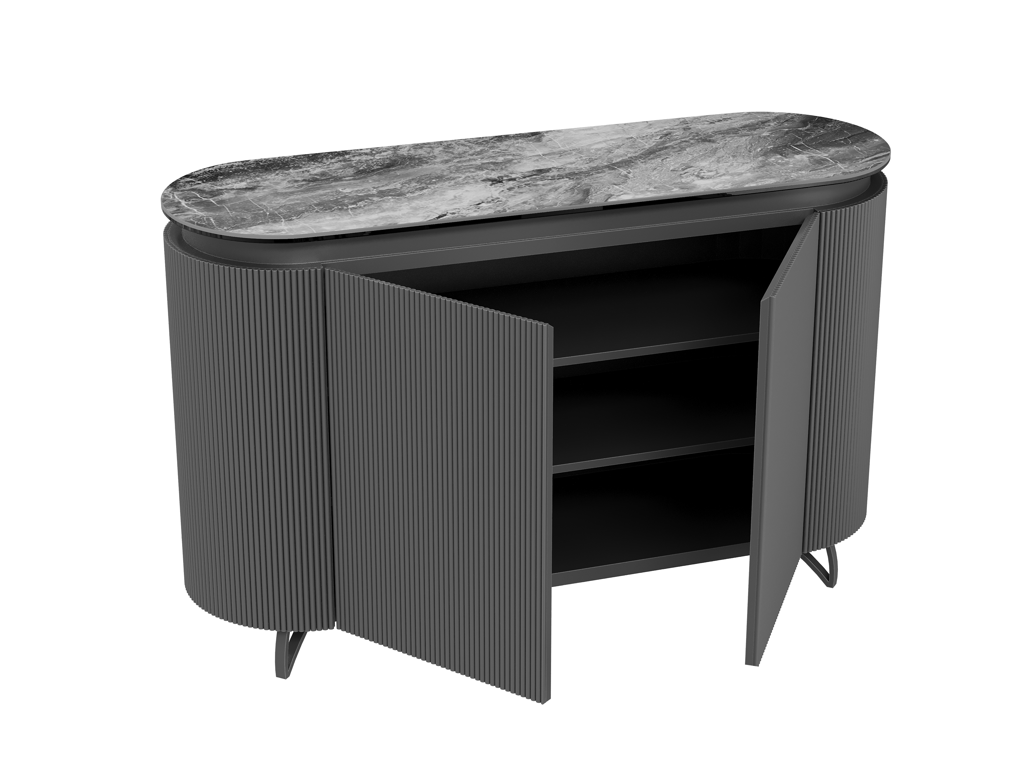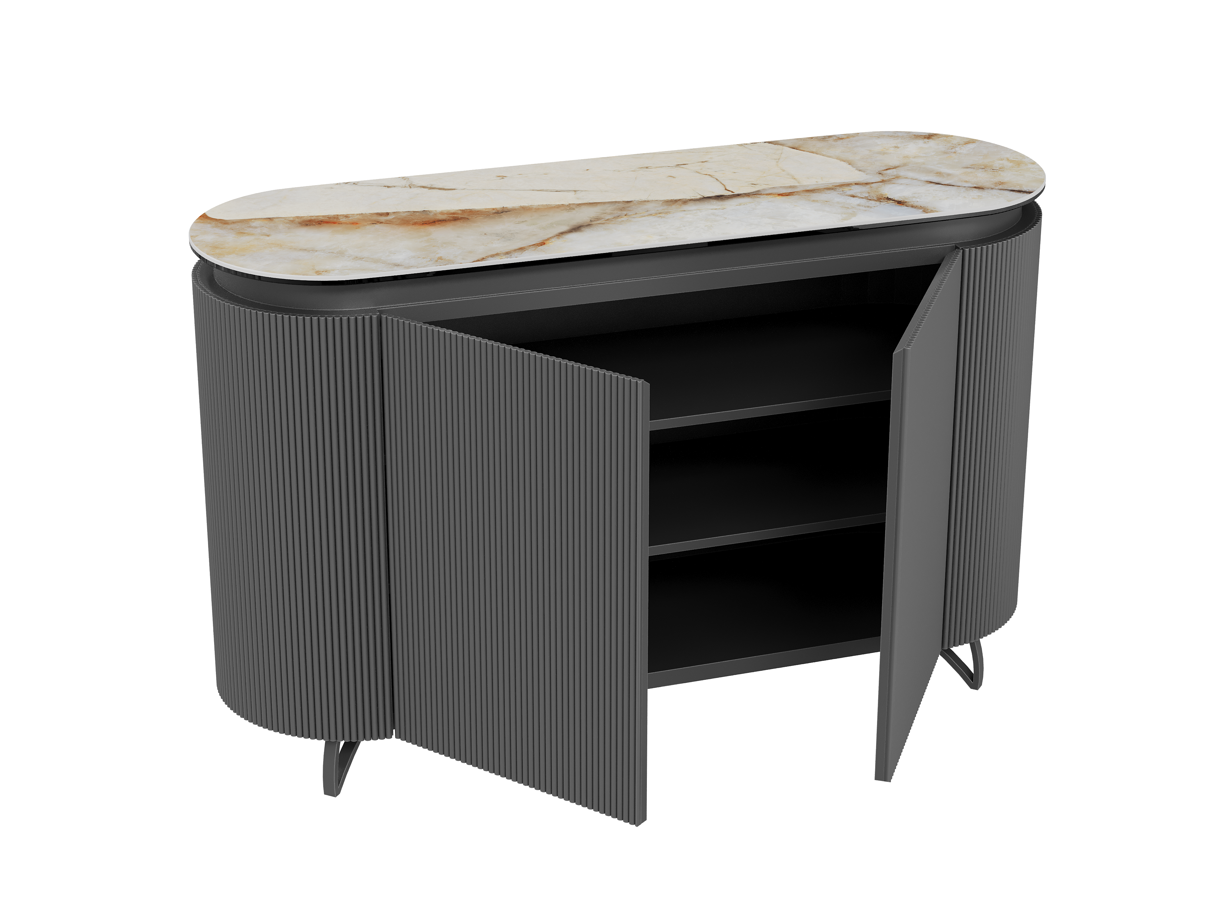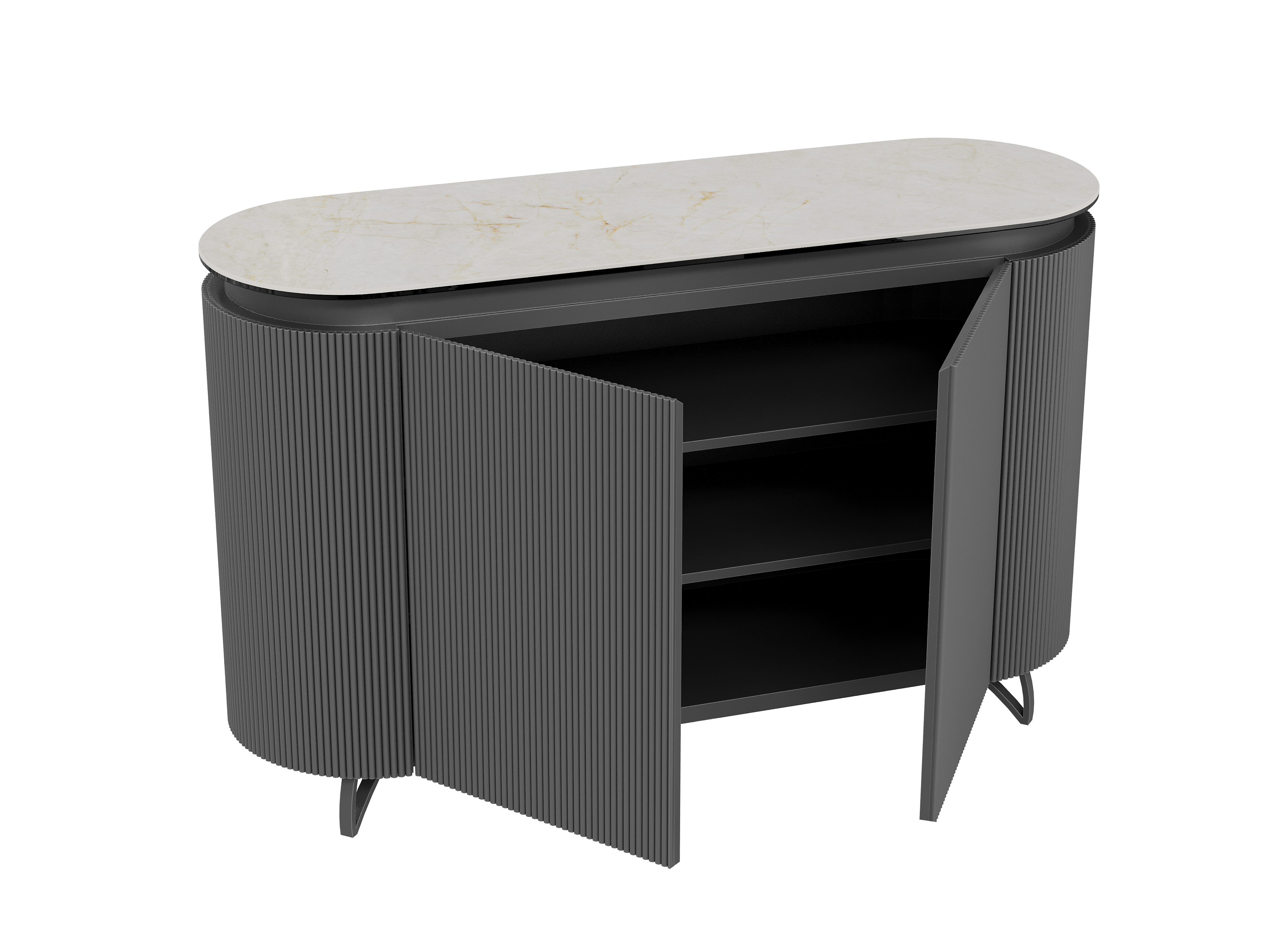 Das COLUMBUS Sideboard vereint die Wärme von Holz mit der Eleganz von Keramik und schafft so einen raffinierten und funktionalen Stil. Die gerillten Türen aus MDF mit Holzfurnier verleihen dem Möbelstück eine moderne, grafische Note. Mit Regalen und Schubladen im Inneren bietet es großzügigen Stauraum. Die Keramikplatte, erhältlich in zehn Ausführungen, passt sich harmonisch jedem Interieur an. In zwei Größen (130 oder 170 cm) erhältlich, verkörpert das COLUMBUS Sideboard das perfekte Gleichgewicht zwischen Modernität und Authentizität.