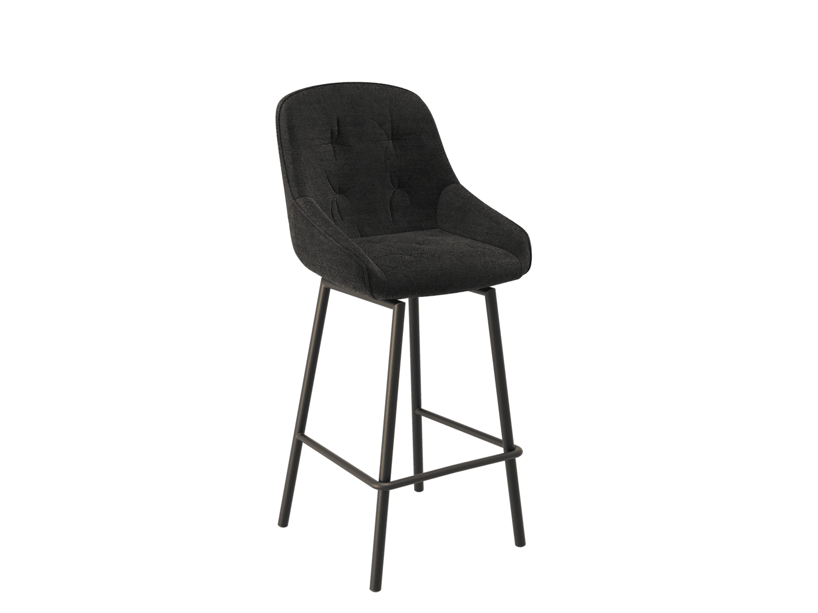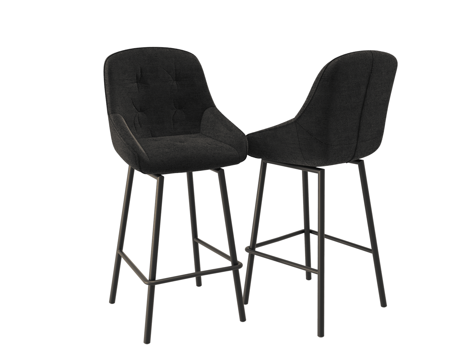 Dimensions and details Net weight : 8,4 Kg Seat : Pivots 180° Fabric composition : 100% Polyester Colour : Charcoal Foam density : 25kg/m3 Height : 100 cm Seating height : 65 cm Width : 45 cm Martindale Fabric : 60 000 Legs : Matt black lacquered steel Maximum supported weight : 120 kg Depth : 45 cm Sold by 2 pieces only Light resistant : 5/5 Pilling resistance : 5/5 Color fastness to rubbing : 5/5 Fabric : OEKO-TEX® Standard 100 NOT AVAILABLE FOR THE UK AND IRISH MARKET. INPI : 20240816