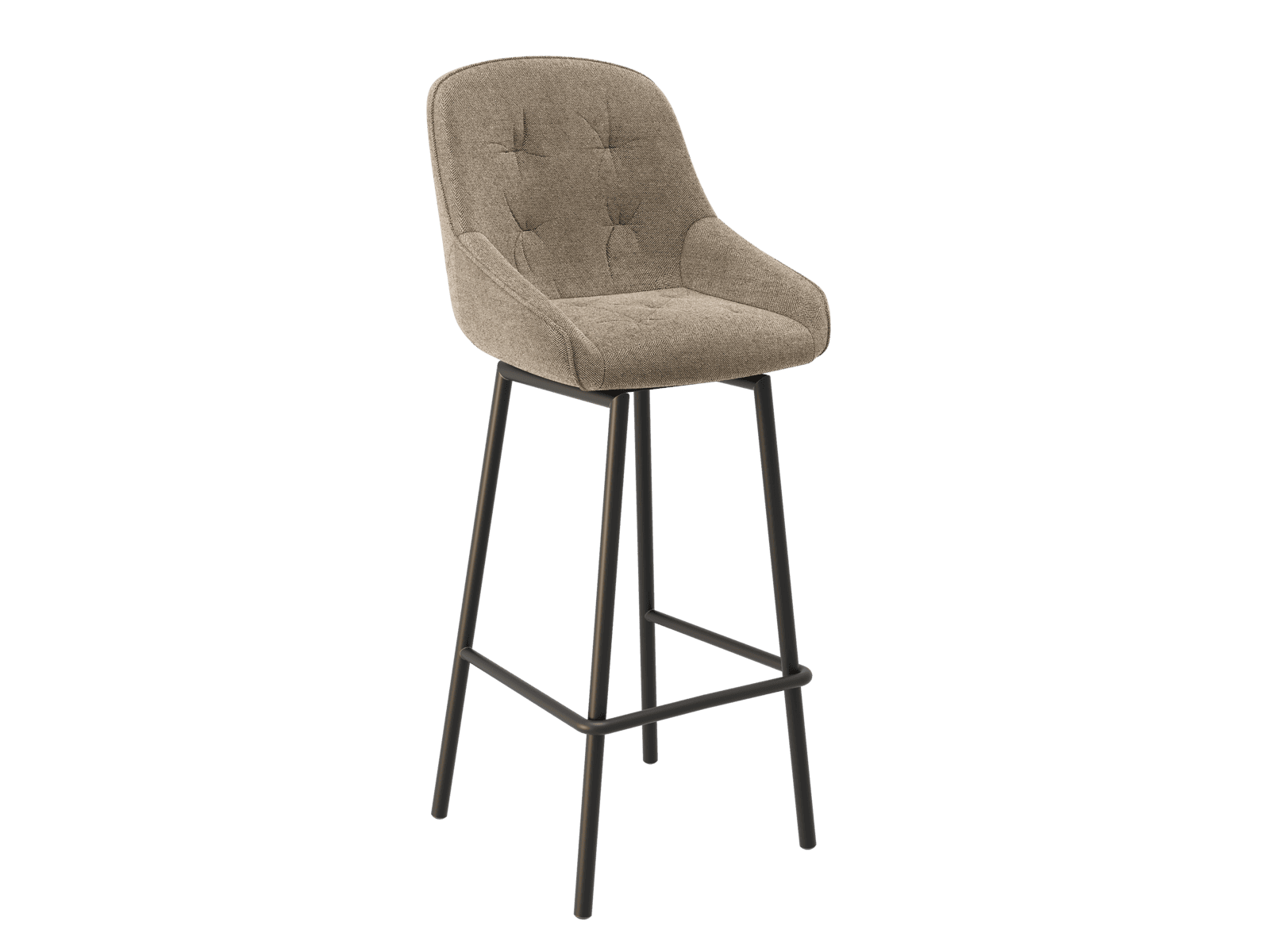 Dimensions and details Net weight : 8,8 Kg Seat : Pivots 180° Fabric composition : 100% Polyester Colour : Beige Foam density : 25kg/m3 Height : 110 cm Seating height : 75 cm Width : 45 cm Martindale Fabric : 60 000 Legs : Matt black lacquered steel Maximum supported weight : 120 kg Depth : 45 cm Sold by 2 pieces only Light resistant : 5/5 Pilling resistance : 5/5 Color fastness to rubbing : 5/5 Fabric : OEKO-TEX® Standard 100 NOT AVAILABLE FOR THE UK AND IRISH MARKET. INPI : 20240816