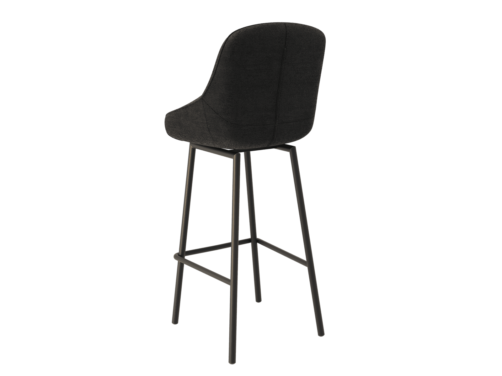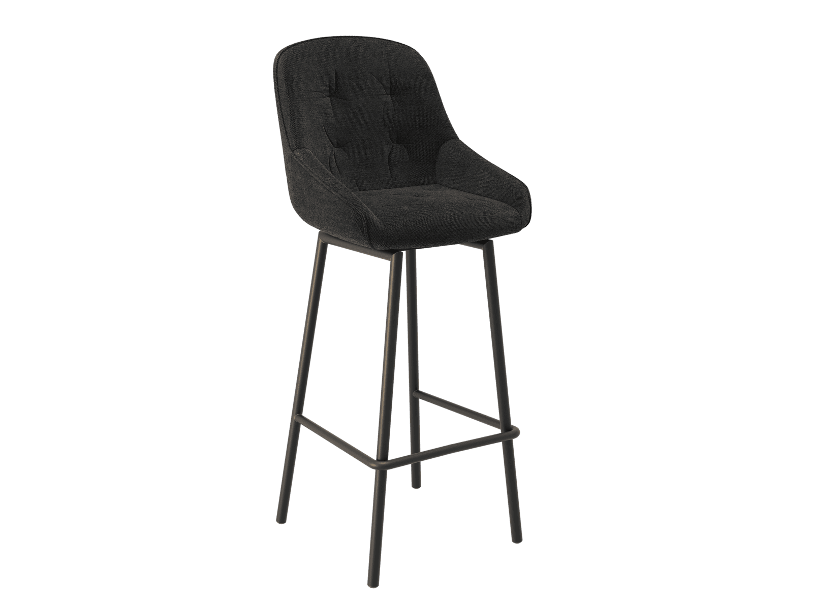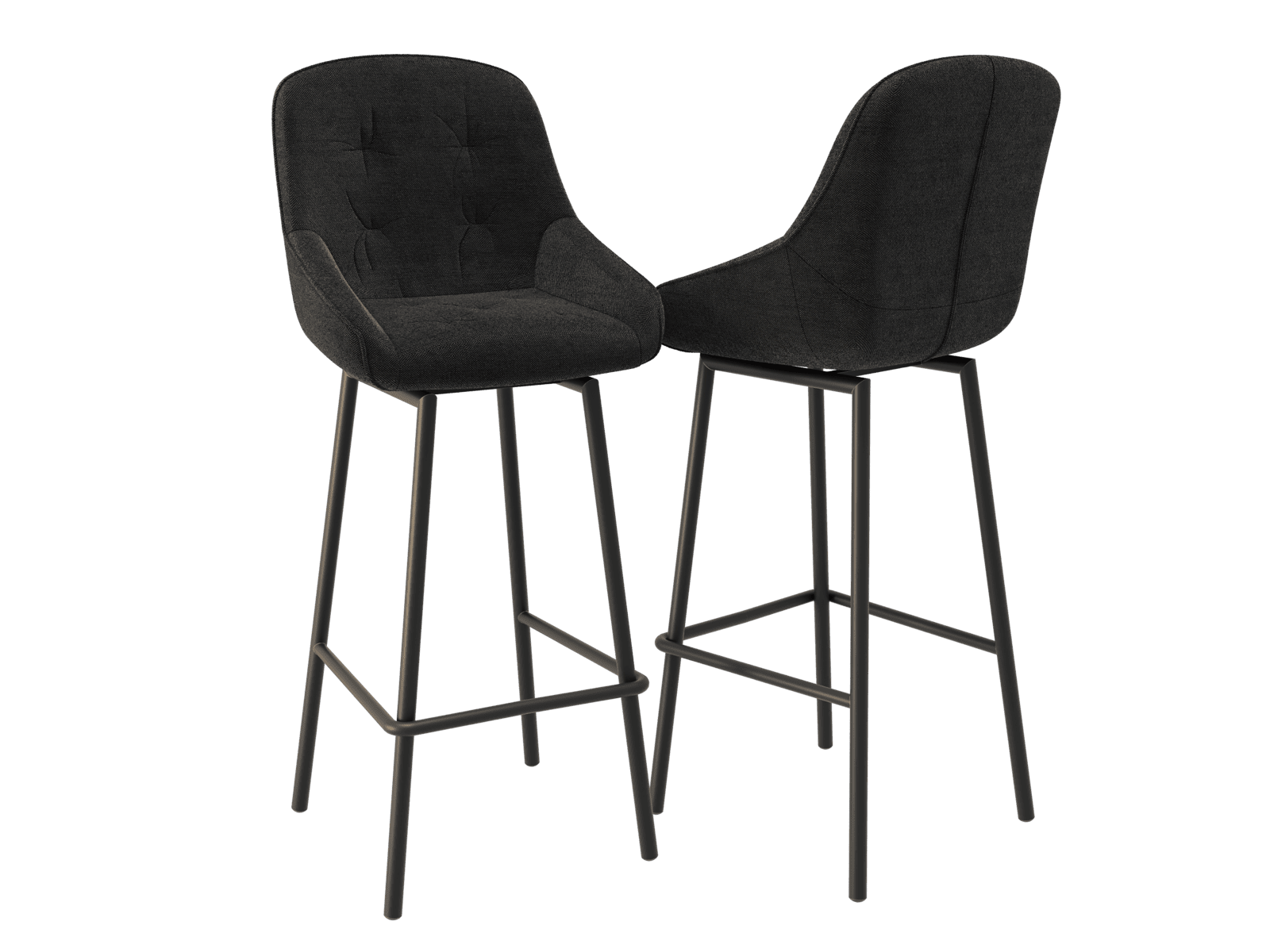 Dimensions and details Net weight : 8,8 Kg Seat : Pivots 180° Fabric composition : 100% Polyester Colour : Charcoal Foam density : 25kg/m3 Height : 110 cm Seating height : 75 cm Width : 45 cm Martindale Fabric : 60 000 Legs : Matt black lacquered steel Maximum supported weight : 120 kg Depth : 45 cm Sold by 2 pieces only Light resistant : 5/5 Pilling resistance : 5/5 Color fastness to rubbing : 5/5 Fabric : OEKO-TEX® Standard 100 NOT AVAILABLE FOR THE UK AND IRISH MARKET. INPI : 20240816