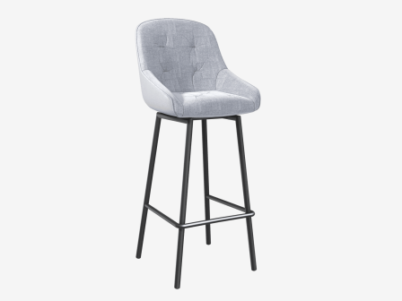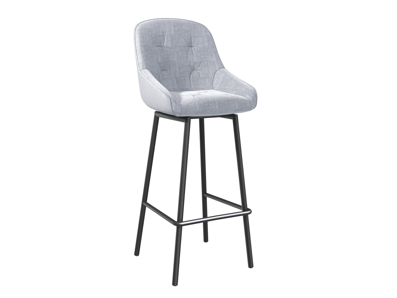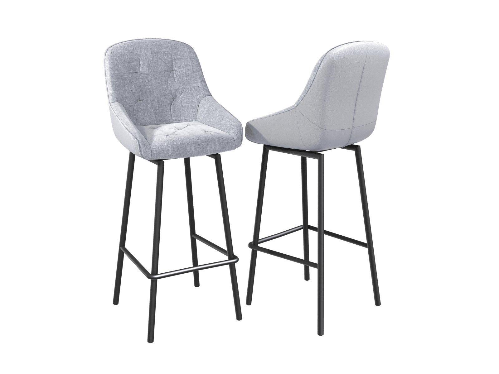 Dimensions and details Net weight : 8,75 Kg Seat : Pivots 180° Composition : 100% Polyurethan Fabric composition : 100% Polyester Colour : Grey Foam density : 25kg/m3 Height : 110 cm Seating height : 75 cm Width : 45 cm Martindale Polyurethane : 60 000 Martindale Fabric : 60 000 Legs : Matt black lacquered steel Maximum supported weight : 120 kg Depth : 45 cm Sold by 2 pieces only Light resistant : > 4 NOT AVAILABLE FOR THE UK AND IRISH MARKET. INPI : 20240816