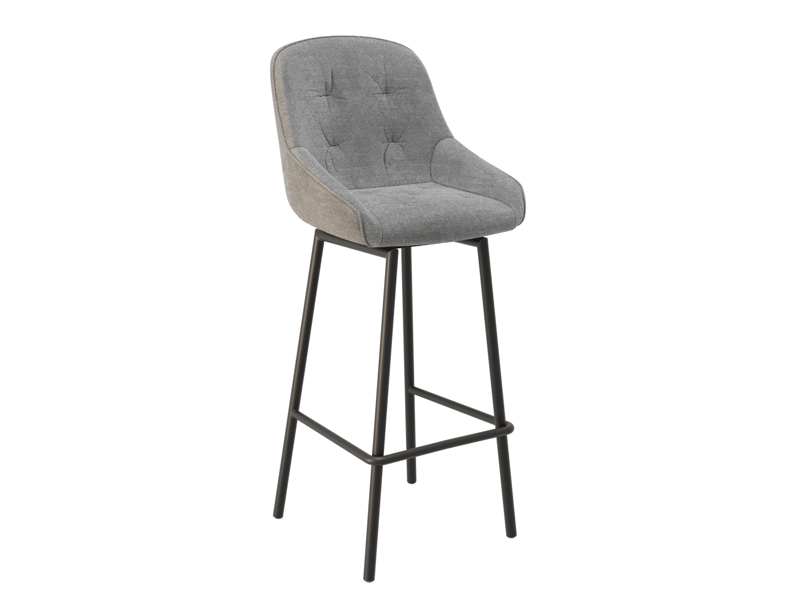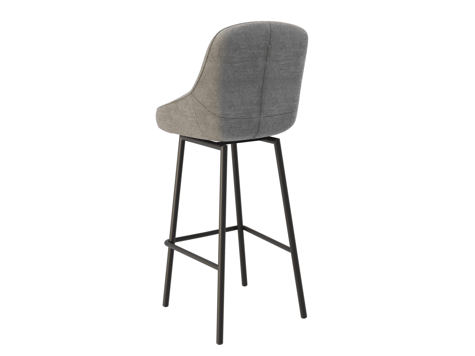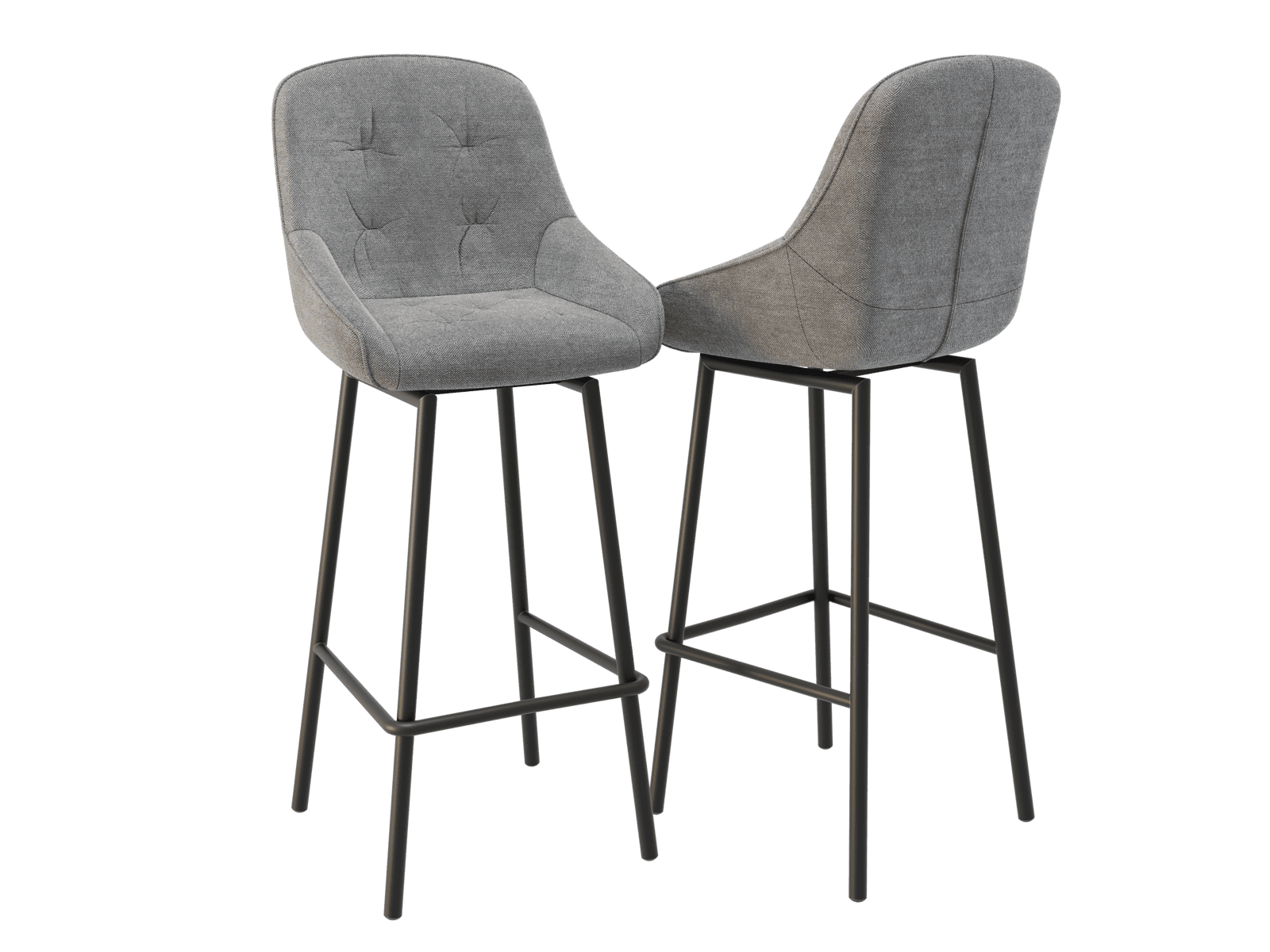 Dimensions and details Net weight : 8,8 Kg Seat : Pivots 180° Fabric composition : 100% Polyester Colour : Light grey Foam density : 25kg/m3 Height : 110 cm Seating height : 75 cm Width : 45 cm Martindale Fabric : 60 000 Legs : Matt black lacquered steel Maximum supported weight : 120 kg Depth : 45 cm Sold by 2 pieces only Light resistant : 5/5 Pilling resistance : 5/5 Color fastness to rubbing : 5/5 Fabric : OEKO-TEX® Standard 100 NOT AVAILABLE FOR THE UK AND IRISH MARKET. INPI : 20240816