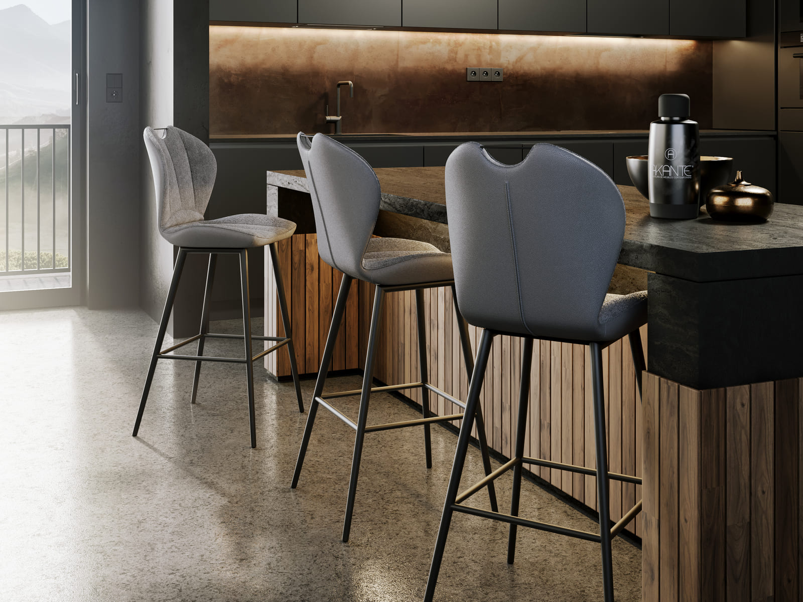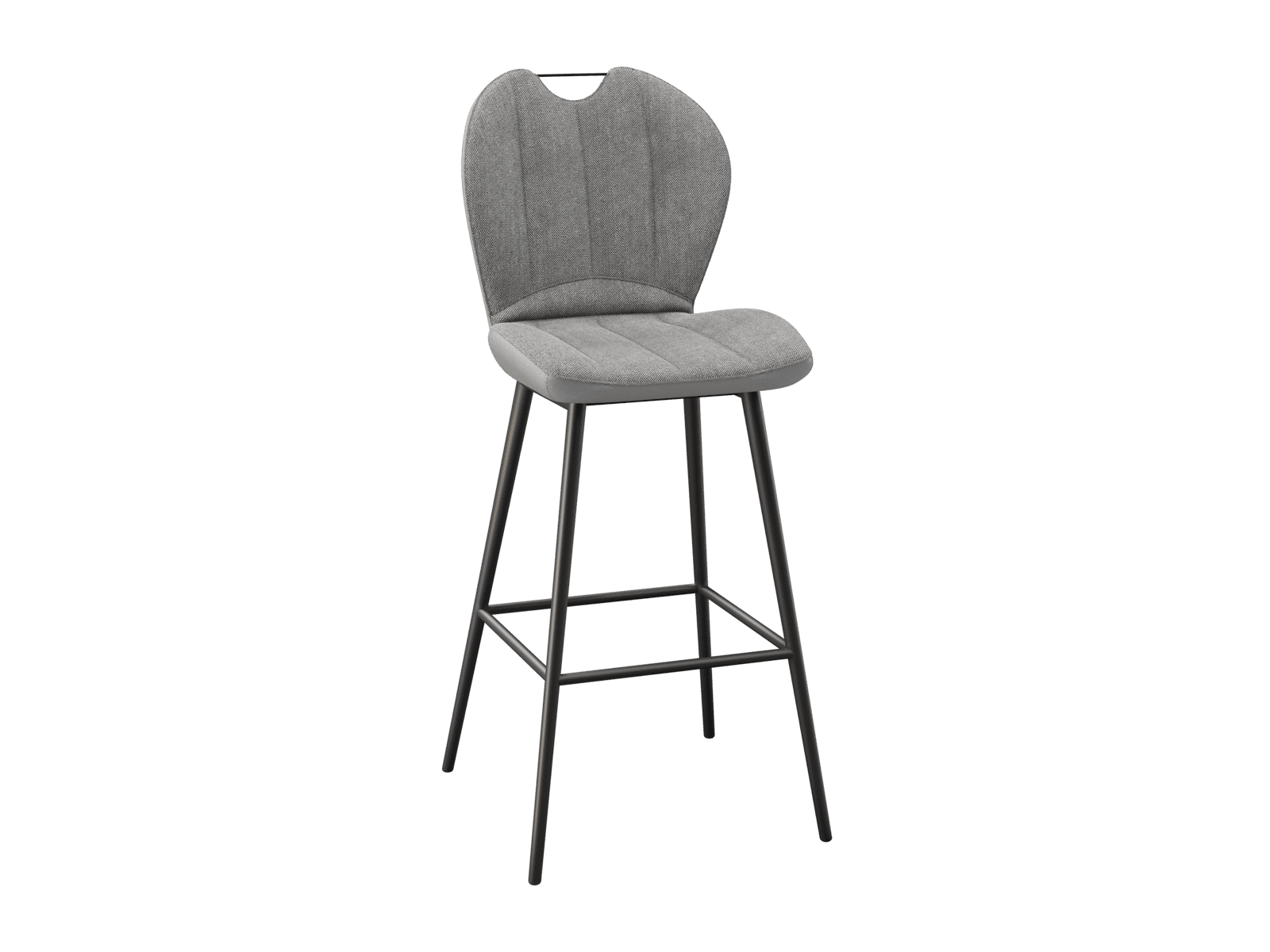 Dimensions and details Net weight : 8 Kg Seat : Pivots 180° Composition : 100% Polyurethan Fabric composition : 100% Polyester Colour : Light grey PU Colour : Grey Fabric Colour : Light grey Foam density : 25kg/m3 Seating height : 65 cm Total height : 97 cm Width : 46 cm Martindale : 60 000 Seat material : Fabric and Polyurethane Legs : Matt black lacquered steel Maximum supported weight : 120 kg Depth : 51,5 cm Sold by 2 pieces only Light resistant : 5/5 Pilling resistance : 5/5 Color fastness to rubbing : 5/5 Fire resistance : Complies with current European standard EN 1021-1 (cigarette resistance) Fire resistance : Complies with current European standard EN 1021-2 (flame resistance) Fabric : OEKO-TEX® Standard 100 INPI : 20244788