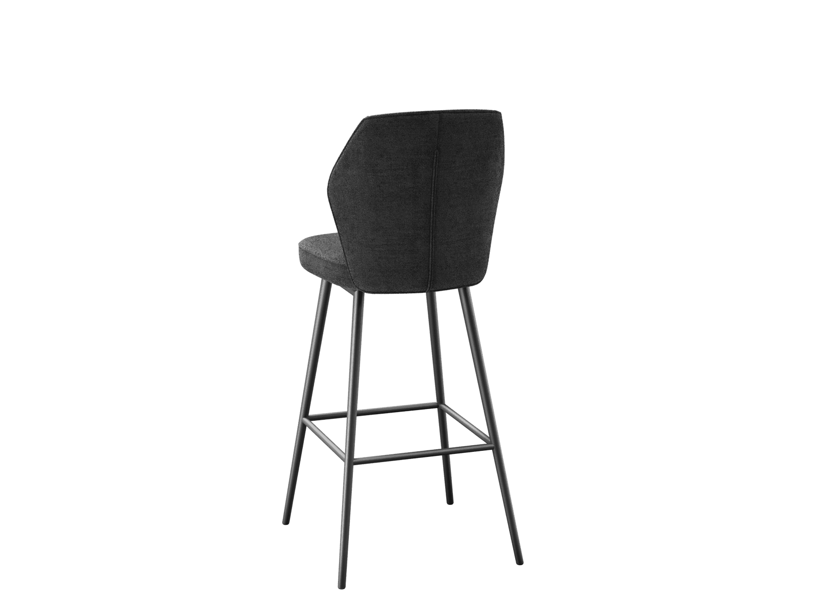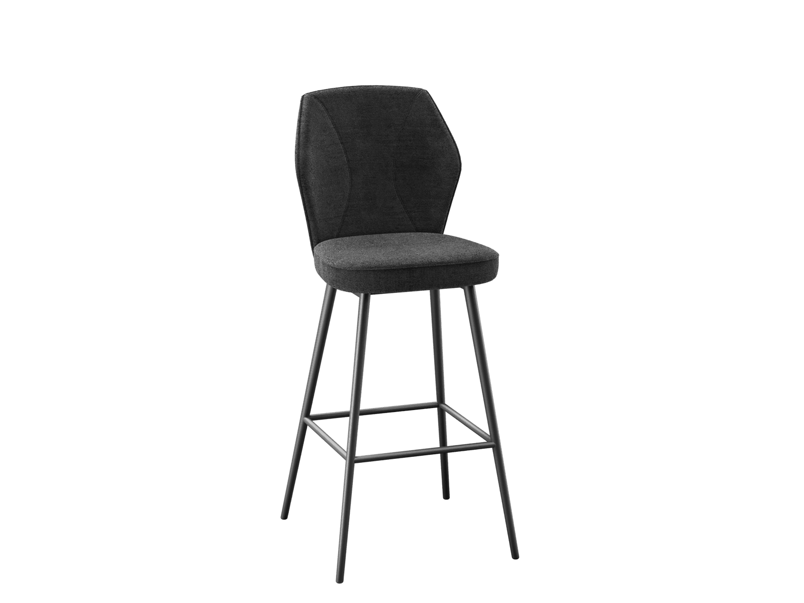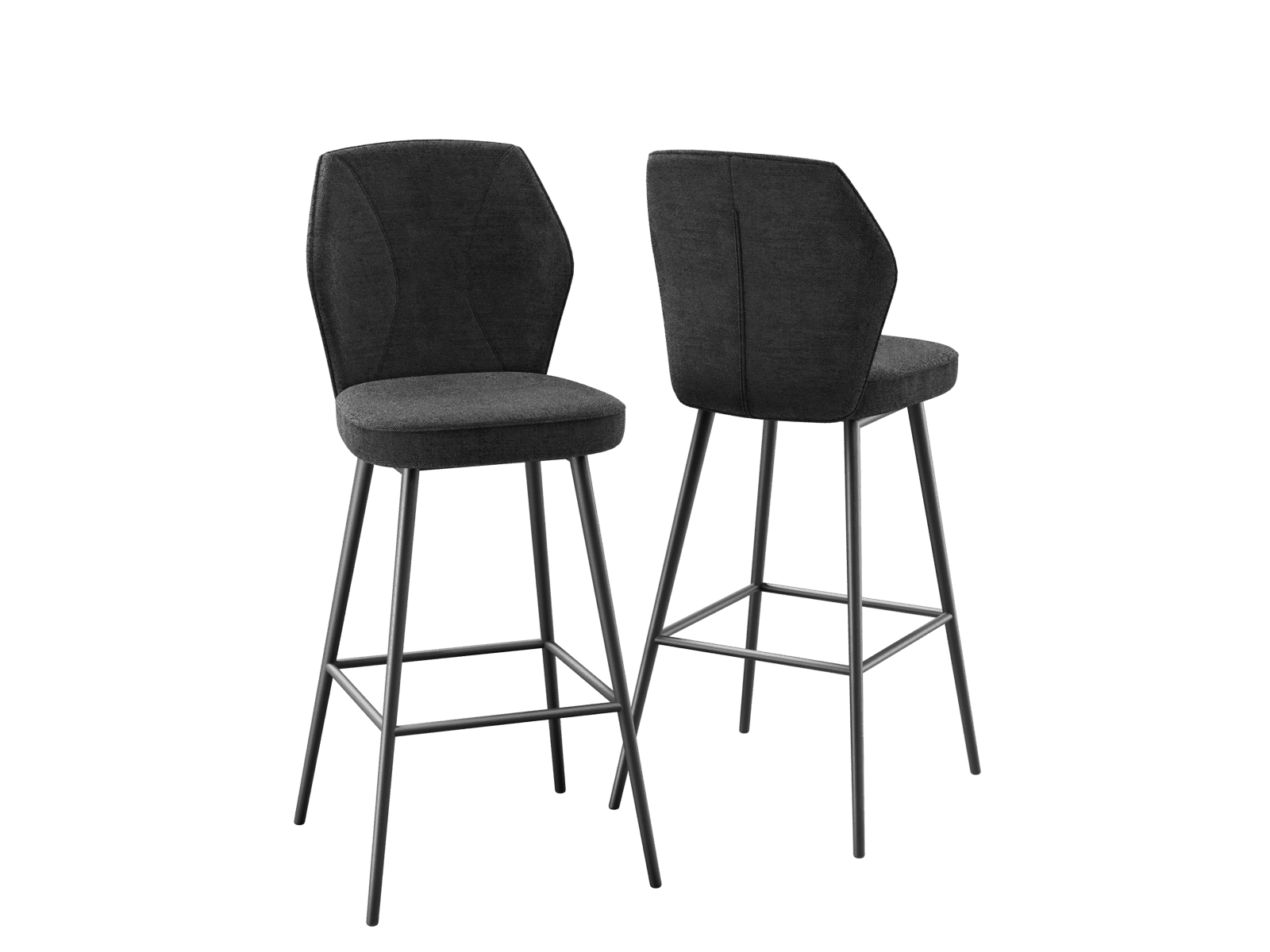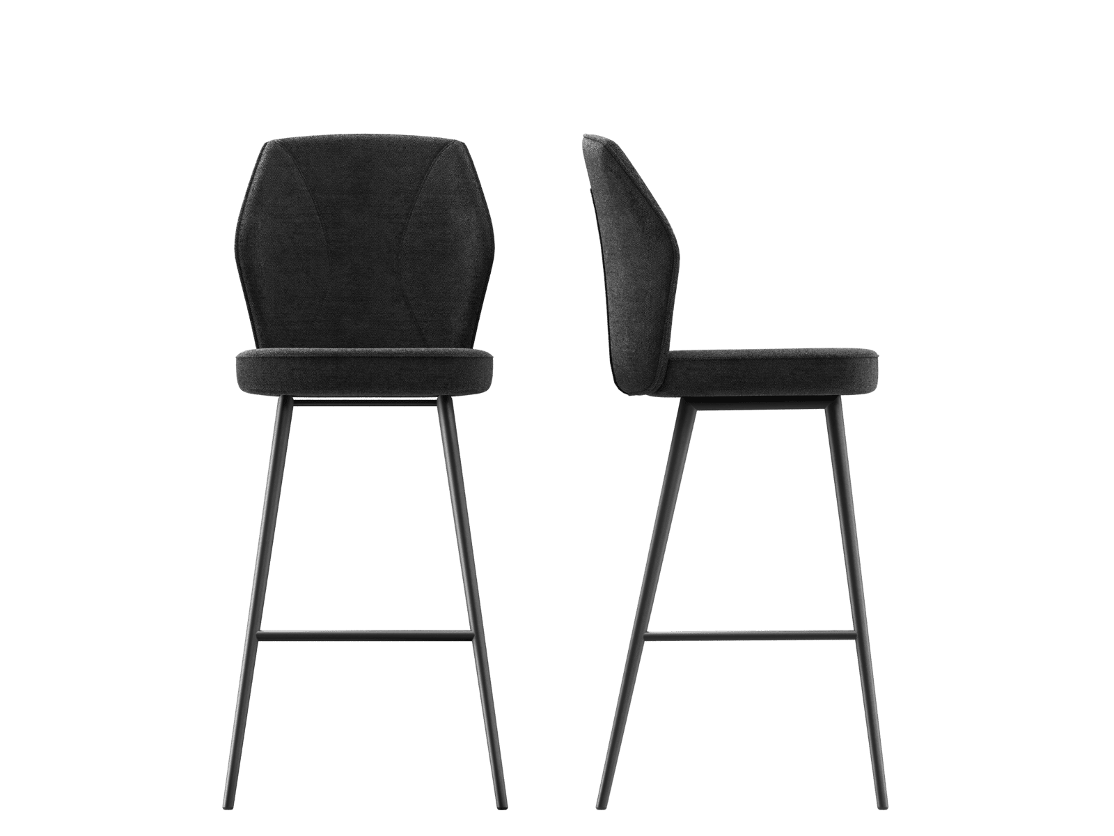 Dimensions and details Net weight : 8 Kg Seat : Pivots 180° Fabric composition : 100% Polyester Colour : Charcoal Foam density : 25kg/m3 Seating height : 65 cm Total height : 100 cm Width : 51 cm Martindale : 60 000 Seat material : Fabric Legs : Matt black lacquered steel Maximum supported weight : 120 kg Depth : 60 cm Sold by 2 pieces only Light resistant : 5/5 Pilling resistance : 5/5 Color fastness to rubbing : 5/5 Fabric : OEKO-TEX® Standard 100 NOT AVAILABLE FOR THE UK AND IRISH MARKET.
