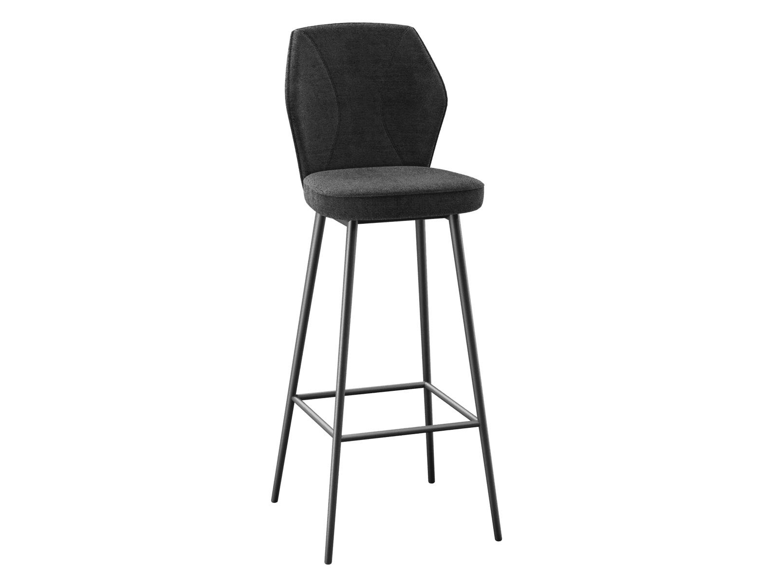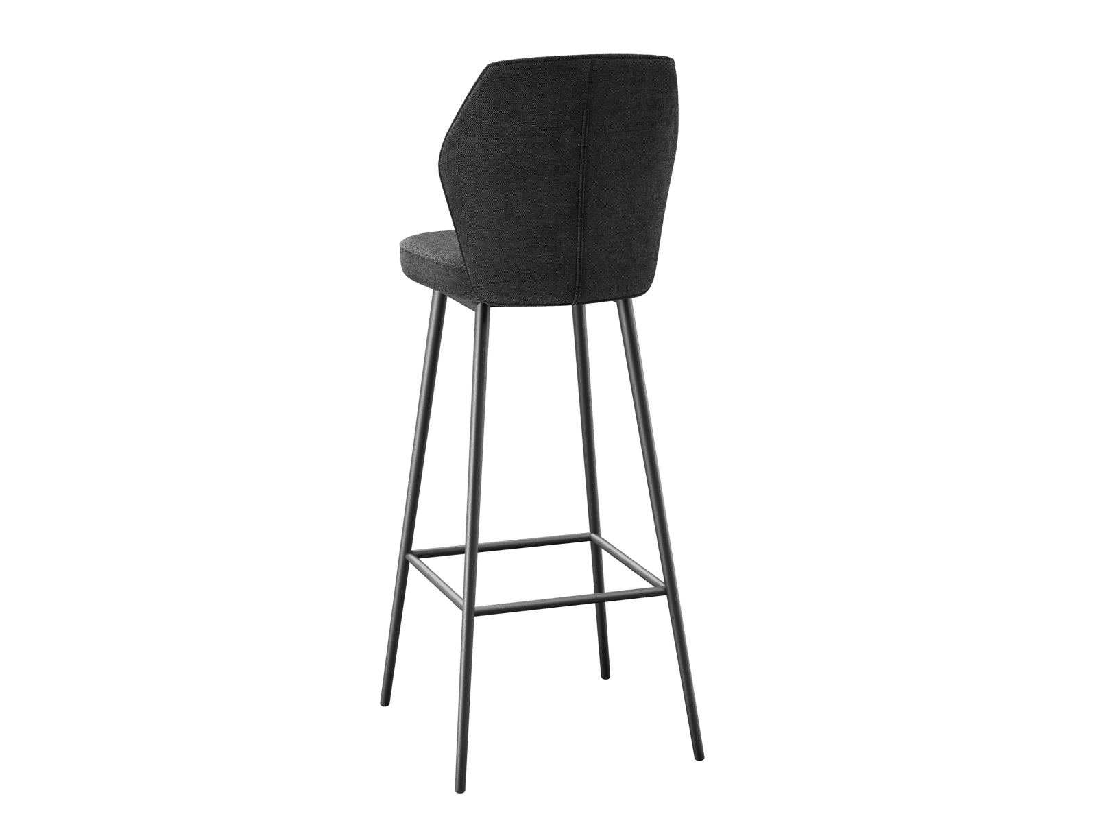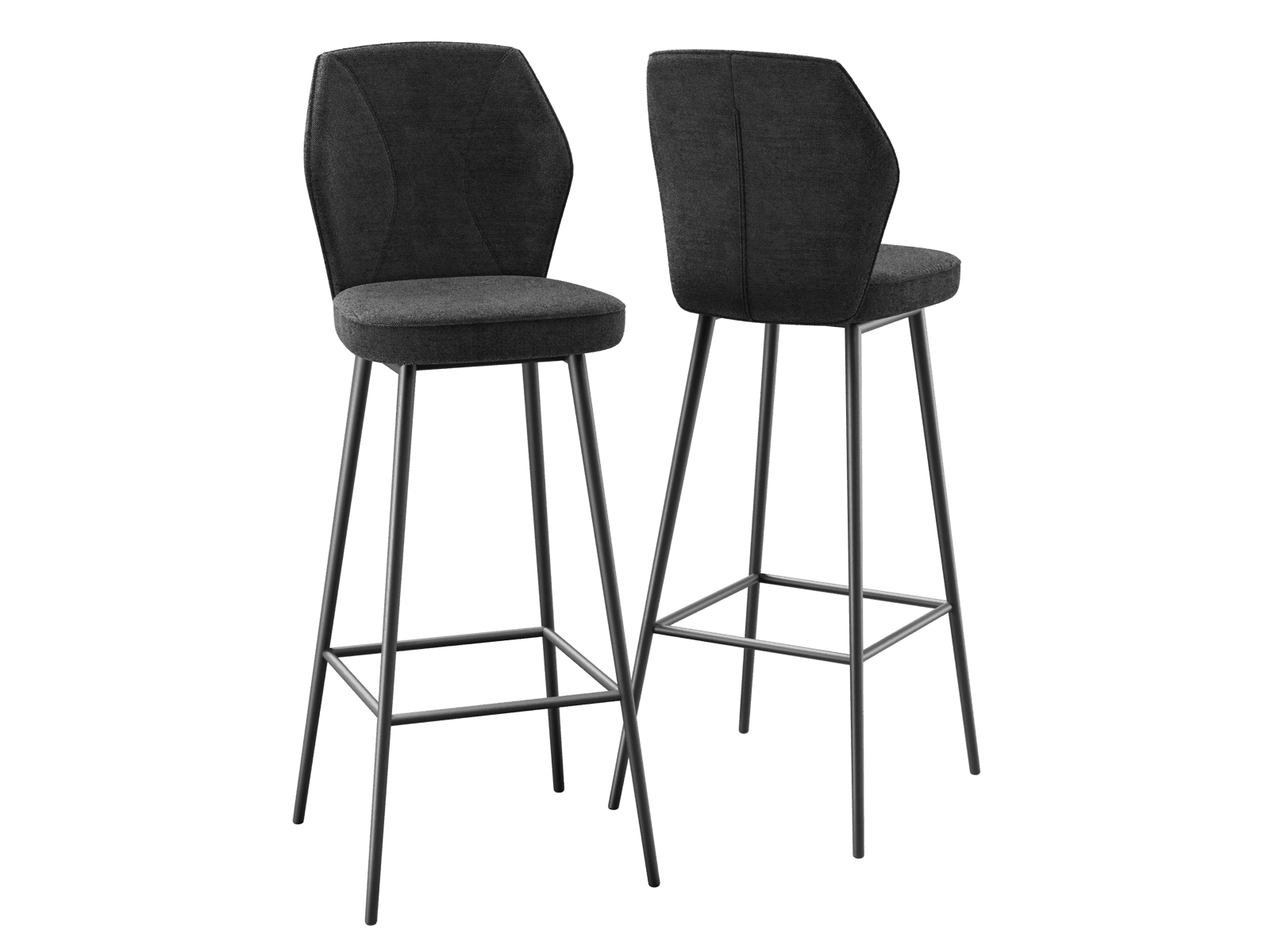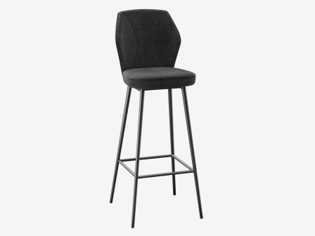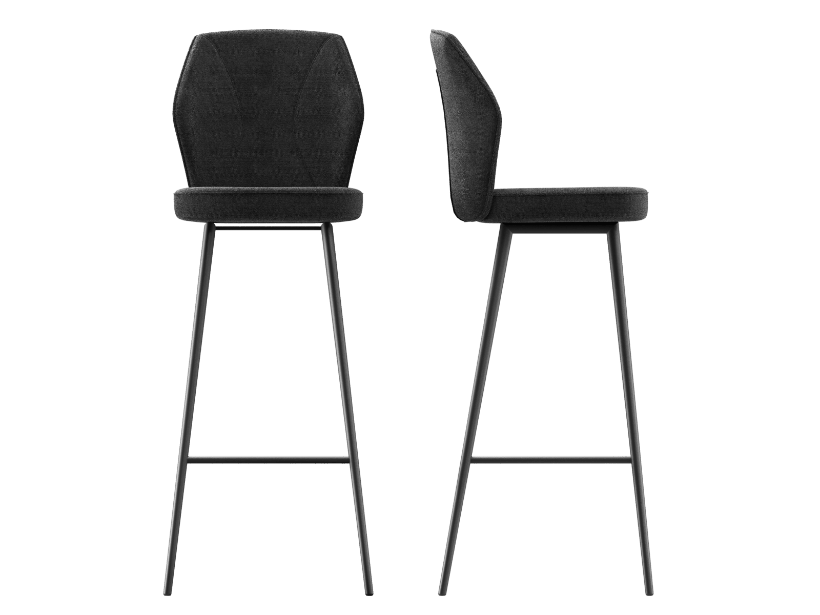 Dimensions and details Net weight : 8,4 Kg Seat : Pivots 180° Fabric composition : 100% Polyester Colour : Charcoal Foam density : 25kg/m3 Seating height : 75 cm Total height : 110 cm Width : 51 cm Martindale : 60 000 Seat material : Fabric Legs : Matt black lacquered steel Maximum supported weight : 120 kg Depth : 60 cm Sold by 2 pieces only Light resistant : 5/5 Pilling resistance : 5/5 Color fastness to rubbing : 5/5 Fabric : OEKO-TEX® Standard 100 NOT AVAILABLE FOR THE UK AND IRISH MARKET.
