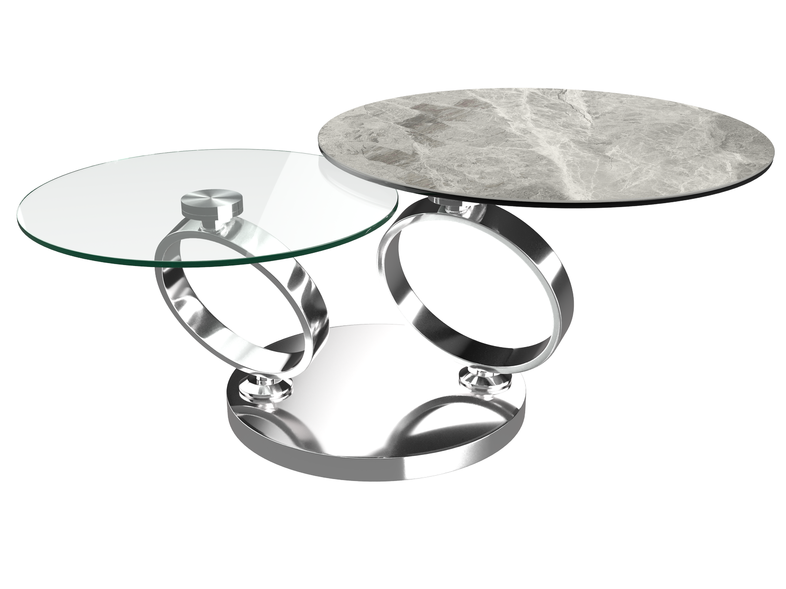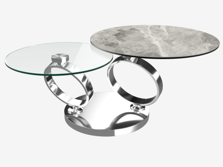 Dimensions and details Net weight : 42,8 Kg Colour : Marble emperador Diameter : 75 cm Dimensions : Ø 75 x 41,5 cm Dimensions opened : 130 x 75 x 41,5 cm Height : 41,5 cm Legs : Chrome steel Bottom plate : Ø 55 cm Lower plate : 10 mm clear glass Upper plate : 11 mm full body ceramic