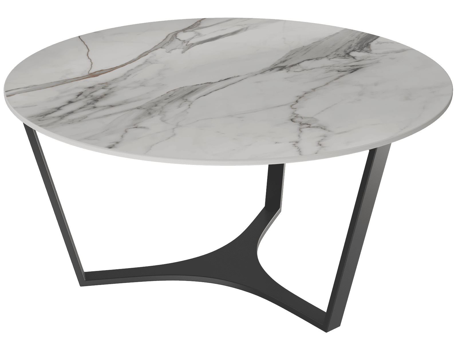 Dimensions and details Net weight : 28,8 Kg Colour : Marble fiorentino Diameter : 90 cm Dimensions : Ø 90 x 40 cm Height : 40 cm Legs : Matt black lacquered steel Plate : 11 thick full body ceramic INPI : 20215513