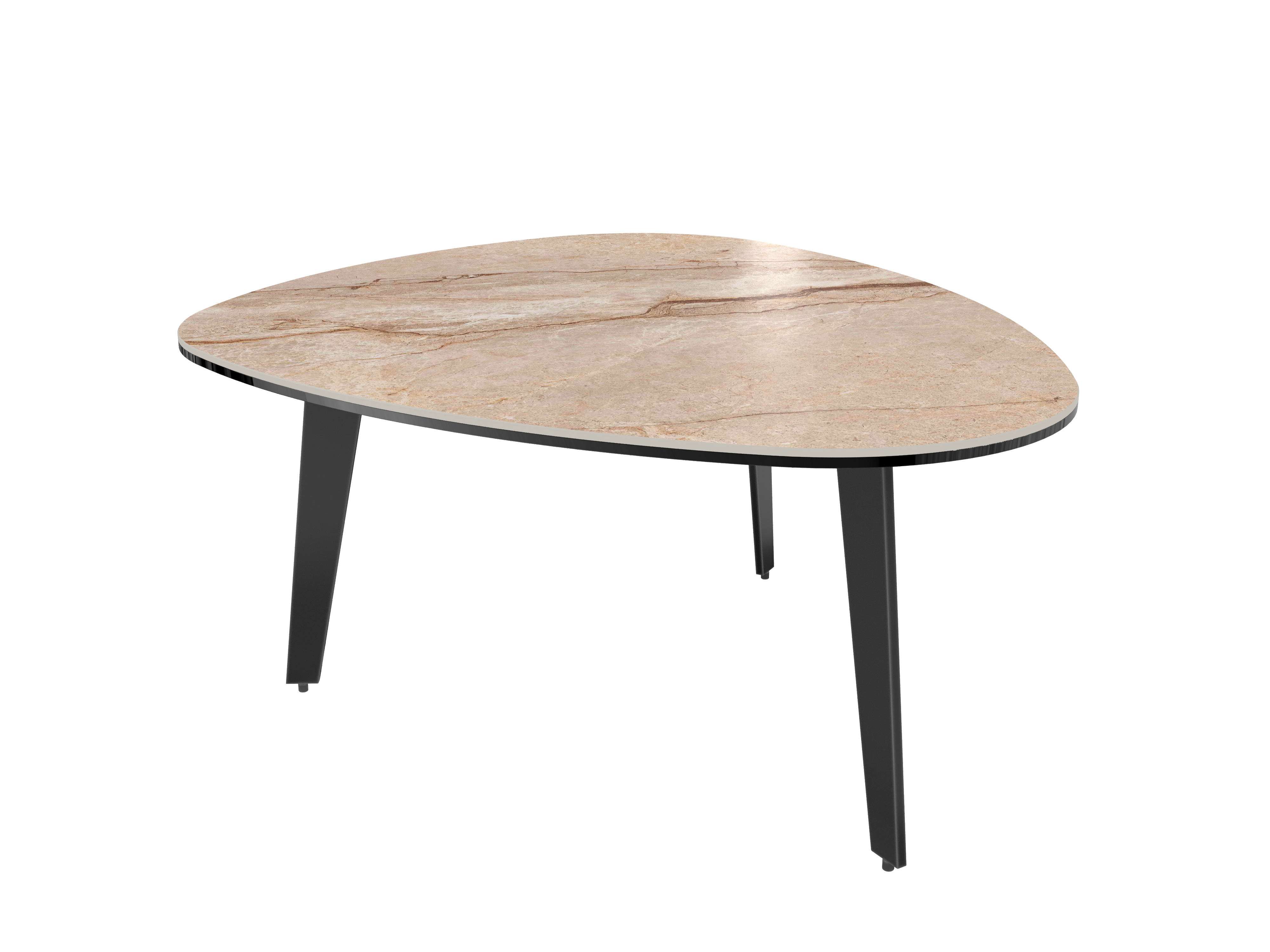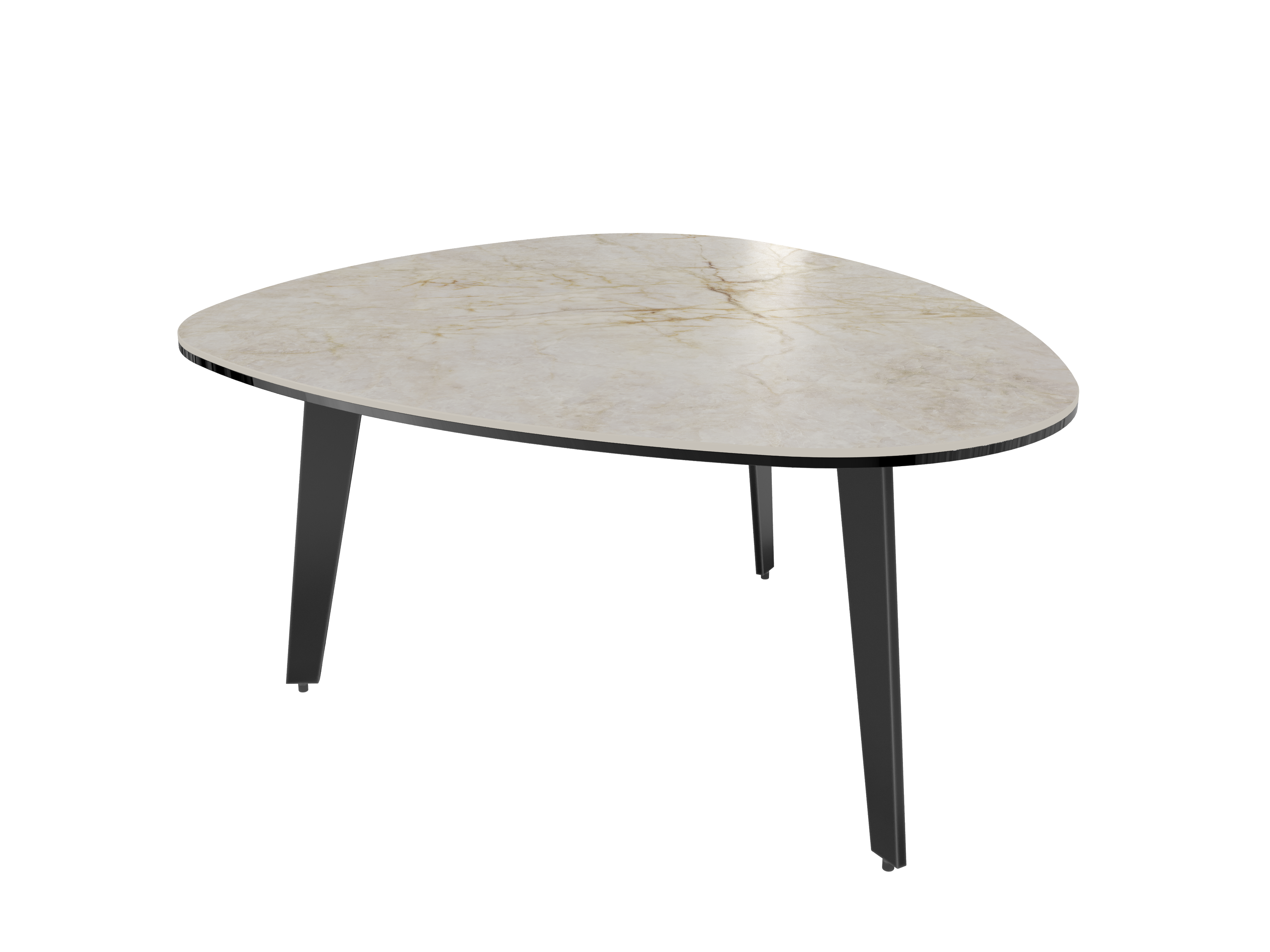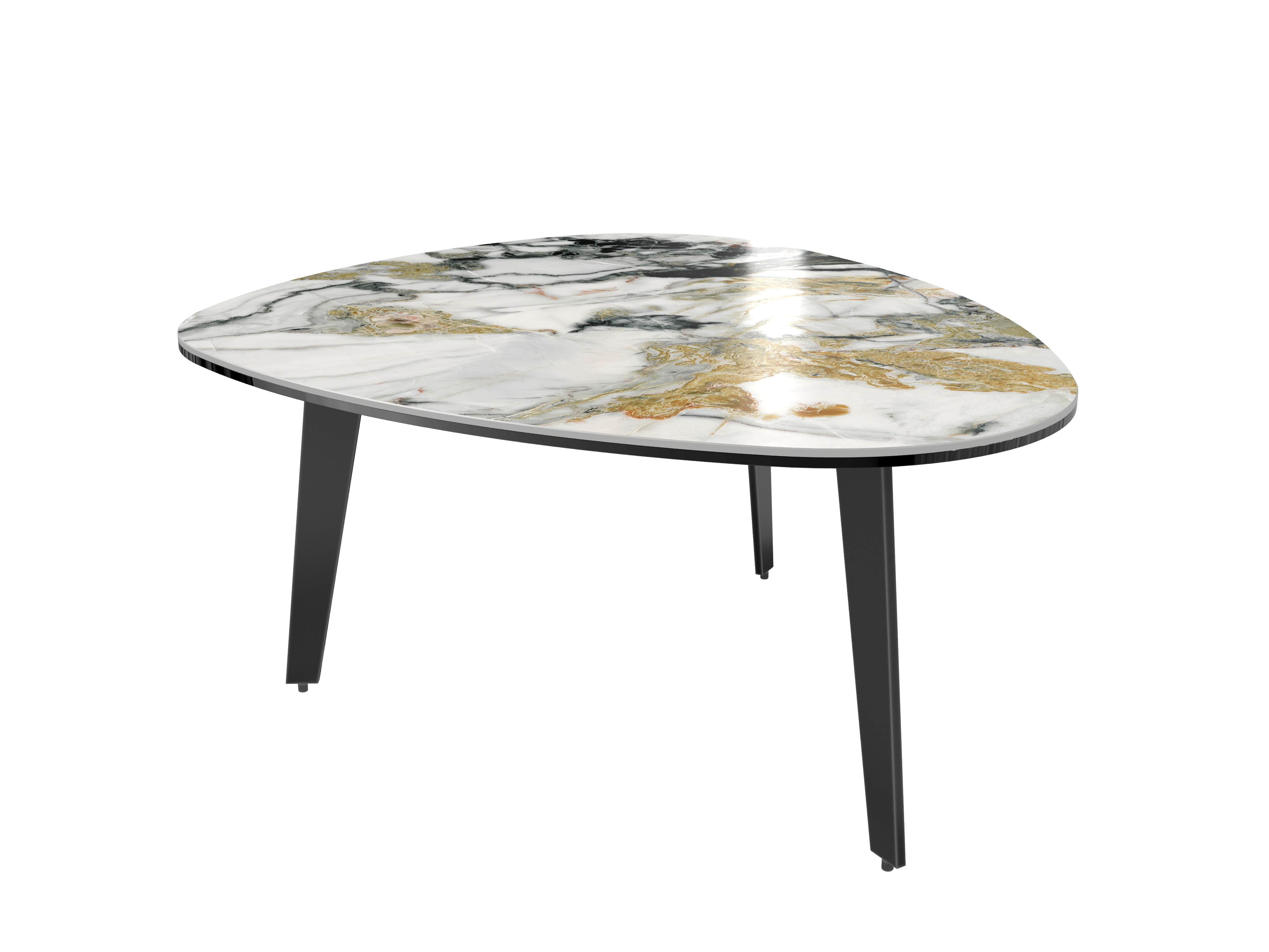 The Galet coffee table is a great work of originality and practicality combined. A 3mm ceramic plate glued upon a glass plate, it is available in 3 different heights. The accompanying photo shows the 38cm table with upper plate dimensions of 92cm x 76cm