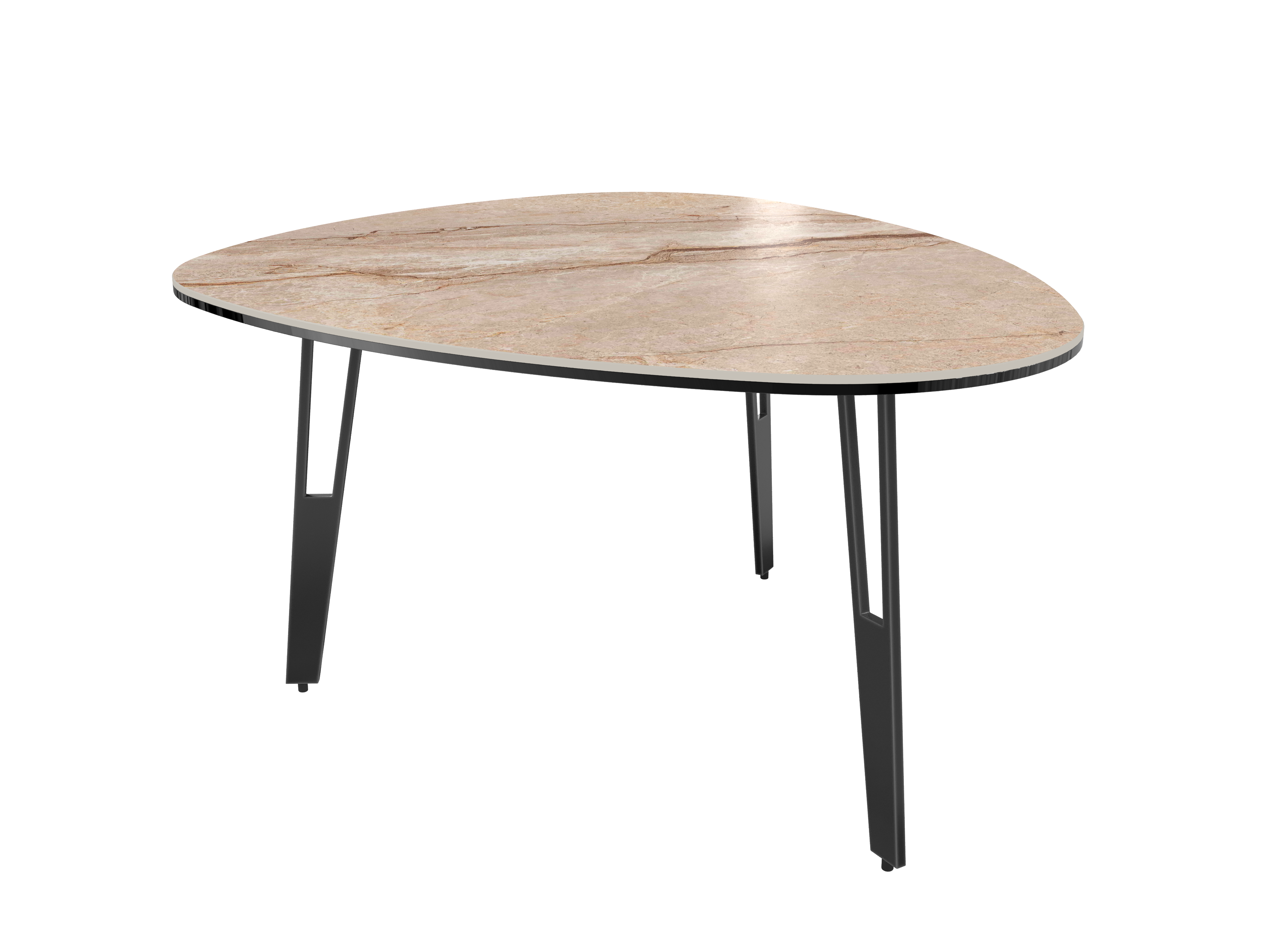 Dimensions and details Net weight : 17,15 Kg Colour : Travertine Dimensions : 92 x 76 x 43 cm Height : 43 cm Width : 76 cm Length : 92 cm Open-style legs Legs : Matt black lacquered steel Plate : 3 mm thick ceramic glued upon a 6 mm glass pane INPI : 20190743