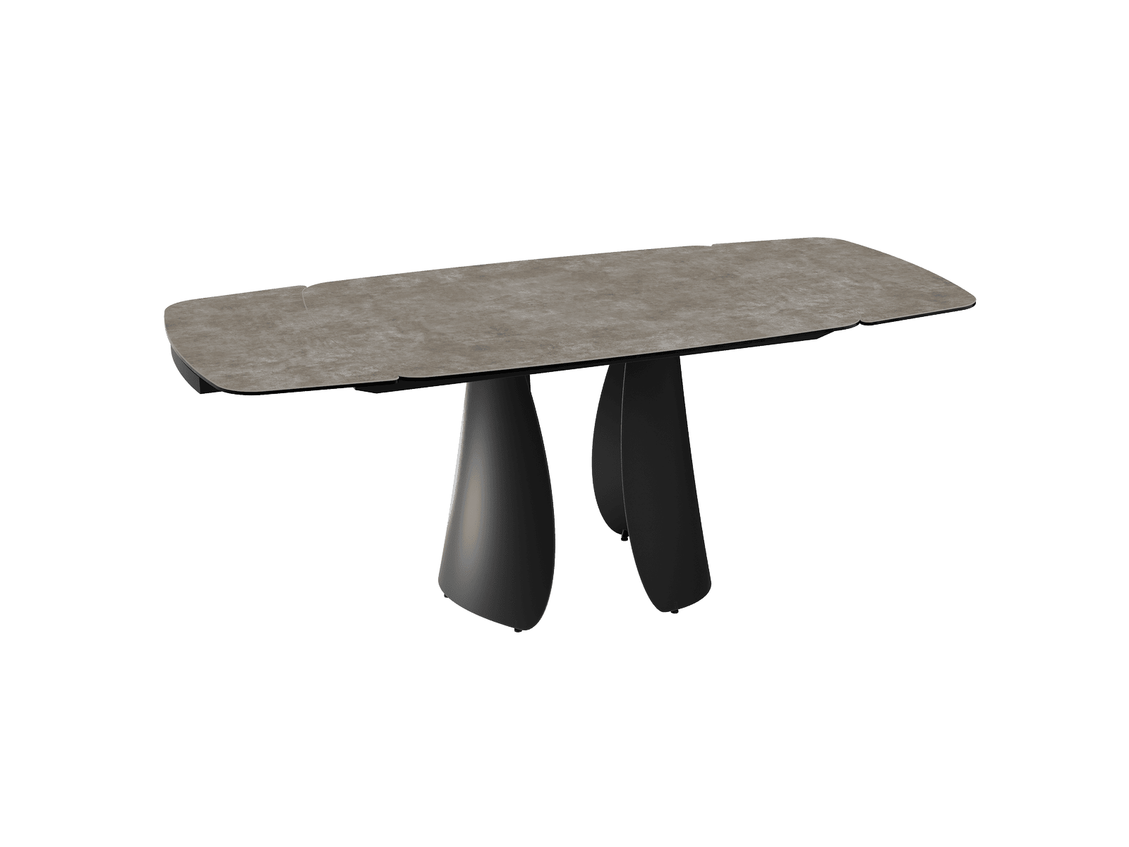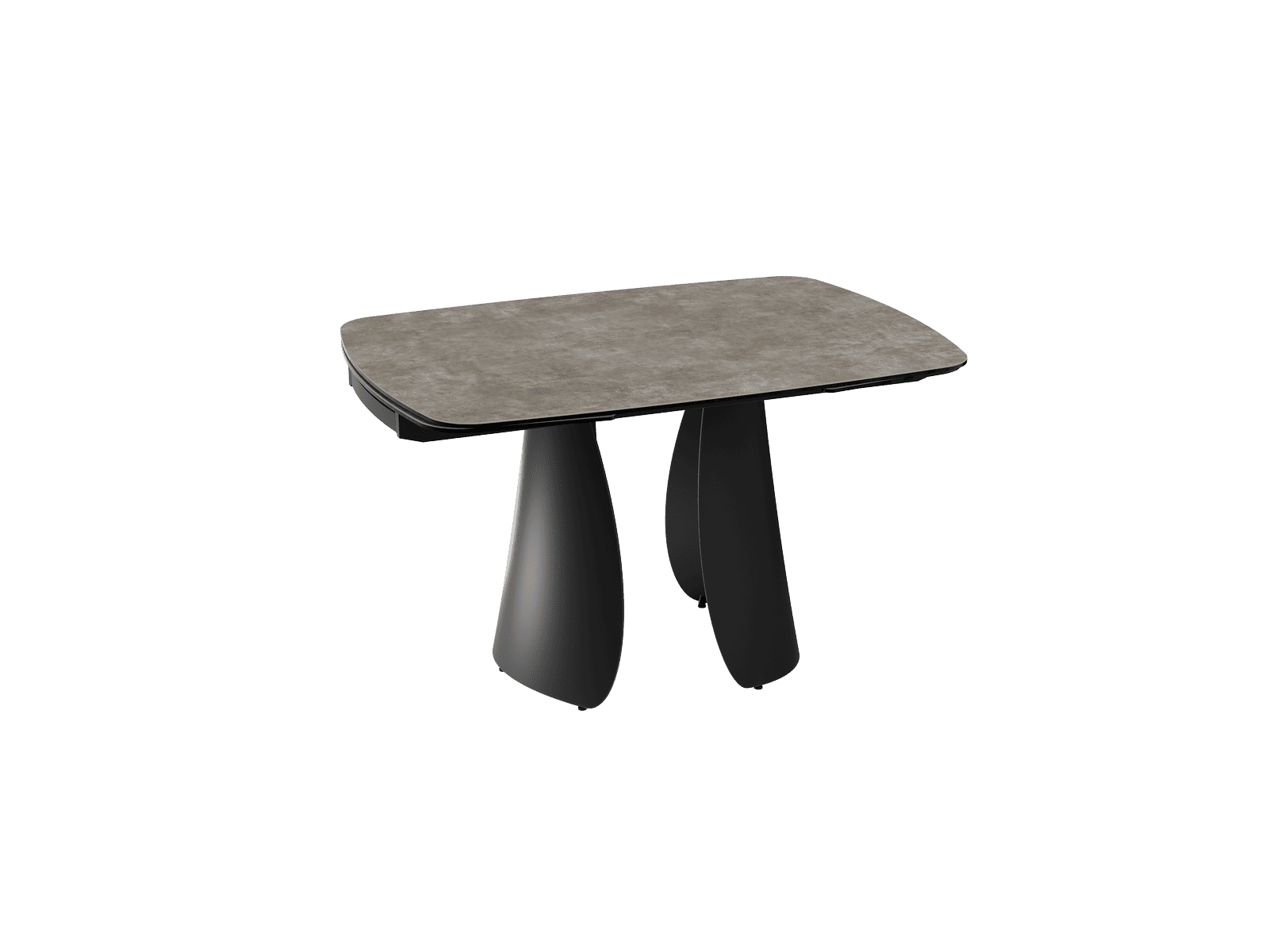 Dimensions and details Net weight : 104 Kg Colour : Argile Dimensions : 130/200 x 100 x 76 cm Dimensions closed : 130 x 100 x 76 cm Dimensions opened : 200 x 100 x 76 cm Number of seats : 6 to 8 people Legs : Matt black lacquered steel Plate : 3 mm thick ceramic glued upon a 8 mm glass pane Extension