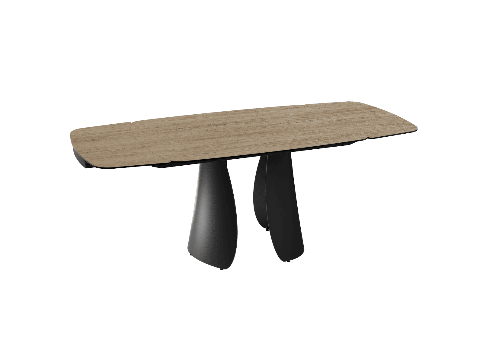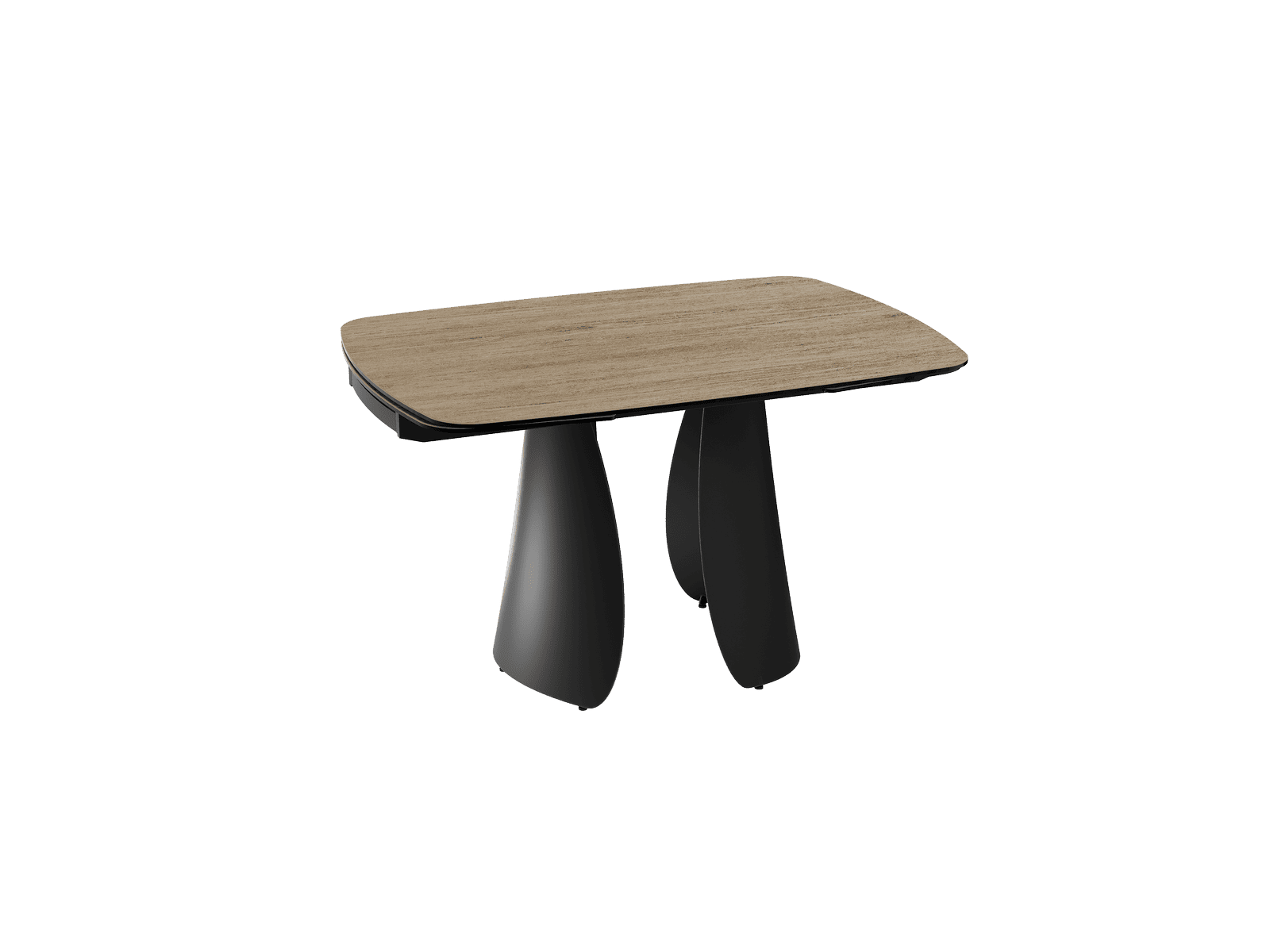 Dimensions and details Net weight : 104 Kg Colour : Clear oak Dimensions : 130/200 x 100 x 76 cm Dimensions closed : 130 x 100 x 76 cm Dimensions opened : 200 x 100 x 76 cm Number of seats : 6 to 8 people Legs : Matt black lacquered steel Plate : 3 mm thick ceramic glued upon a 8 mm glass pane Extension