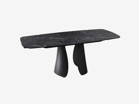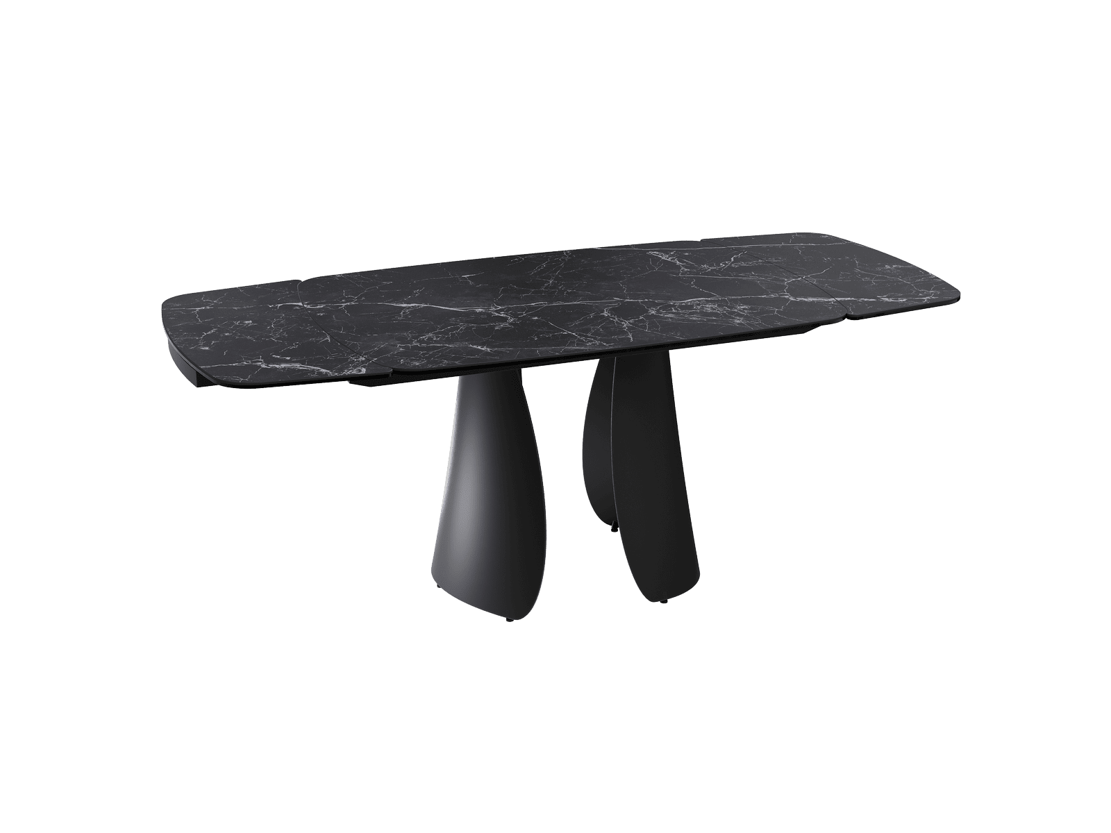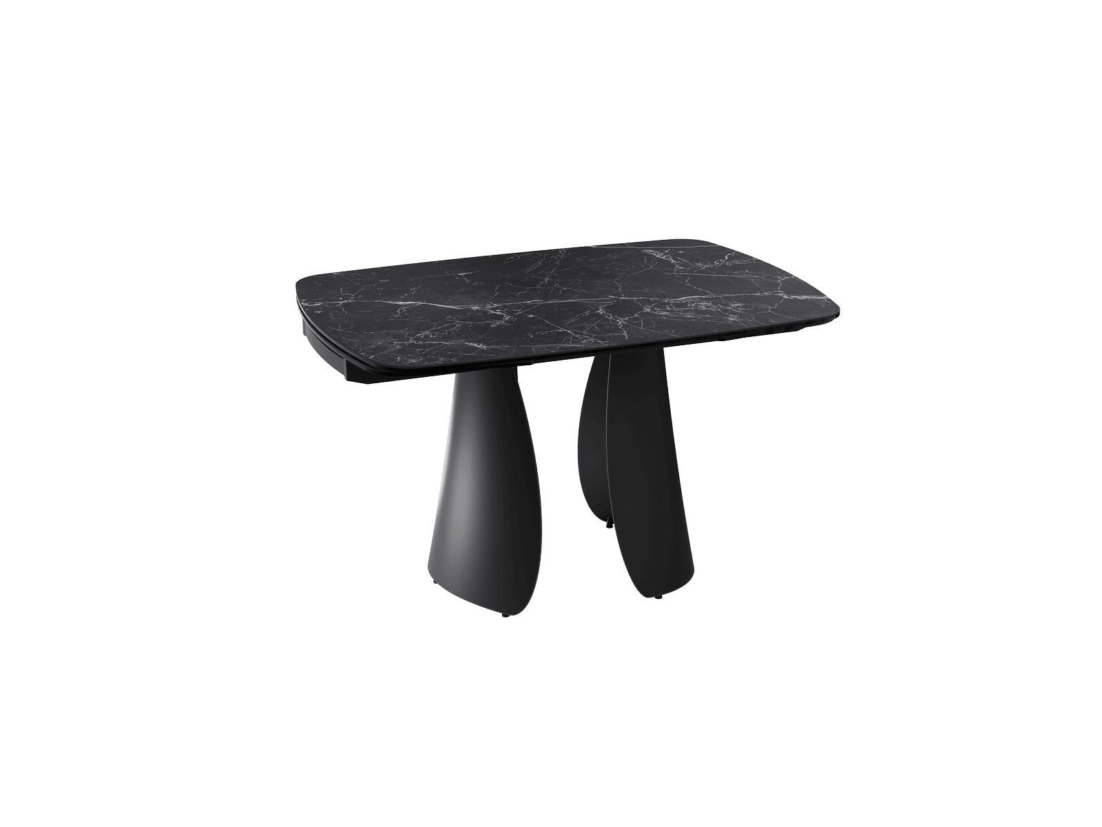 Dimensions and details Net weight : 104 Kg Colour : Marble marquina Dimensions : 130/200 x 100 x 76 cm Dimensions closed : 130 x 100 x 76 cm Dimensions opened : 200 x 100 x 76 cm Number of seats : 6 to 8 people Legs : Matt black lacquered steel Plate : 6 mm thick ceramic glued upon a 8 mm glass pane Extension
