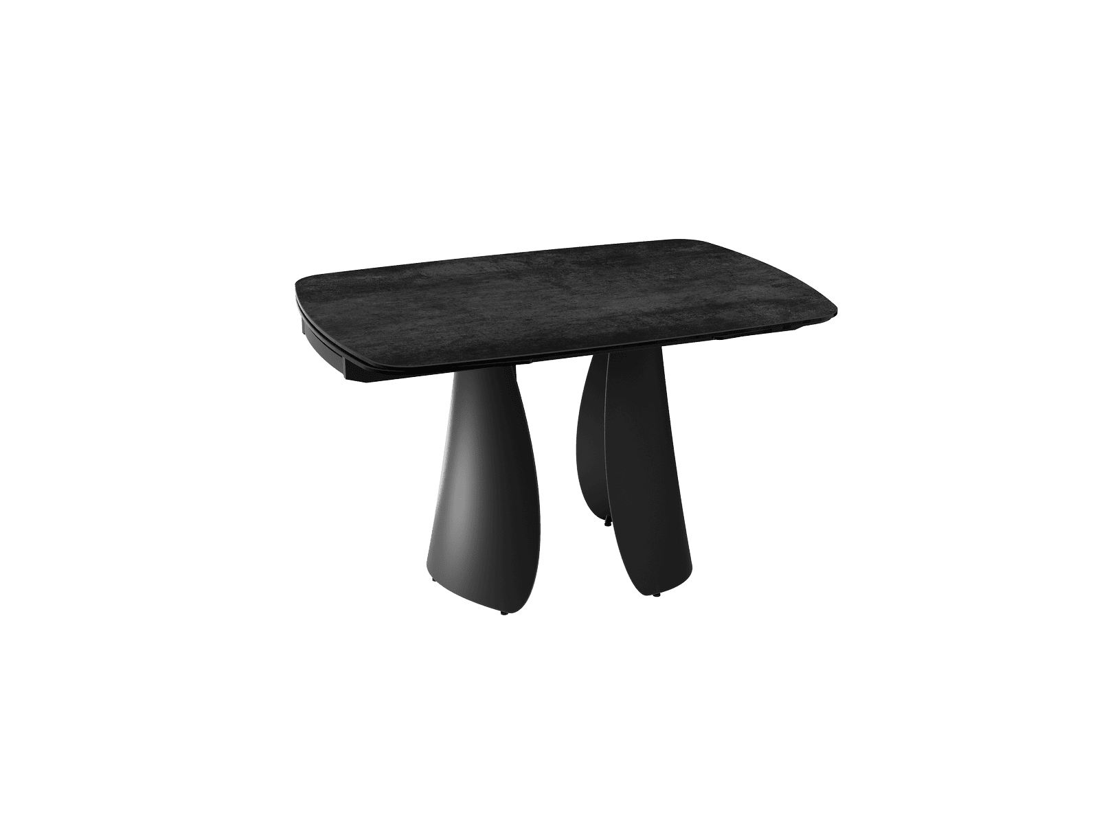 Dimensions and details Net weight : 104 Kg Colour : Titanium Dimensions : 130/200 x 100 x 76 cm Dimensions closed : 130 x 100 x 76 cm Dimensions opened : 200 x 100 x 76 cm Number of seats : 6 to 8 people Legs : Matt black lacquered steel Plate : 3 mm thick ceramic glued upon a 8 mm glass pane Extension