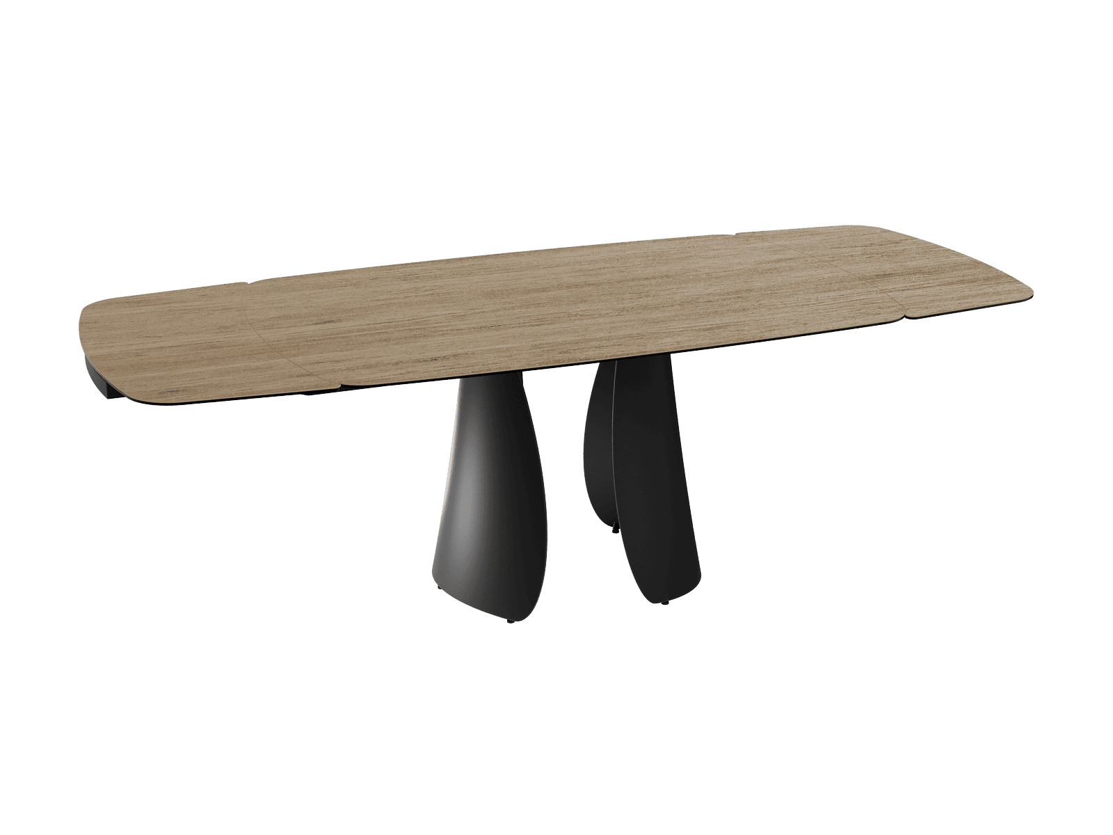 Dimensions and details Net weight : 121,5 Kg Colour : Clear oak Dimensions : 160/240 x 100 x 76 cm Dimensions closed : 160 x 100 x 76 cm Dimensions opened : 240 x 100 x 76 cm Height : 76 cm Width : 100 cm Length : 160/240 cm Number of seats : 8 to 10 people Legs : Matt black lacquered steel Plate : 3 mm thick ceramic glued upon a 8 mm glass pane Extension