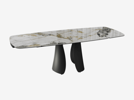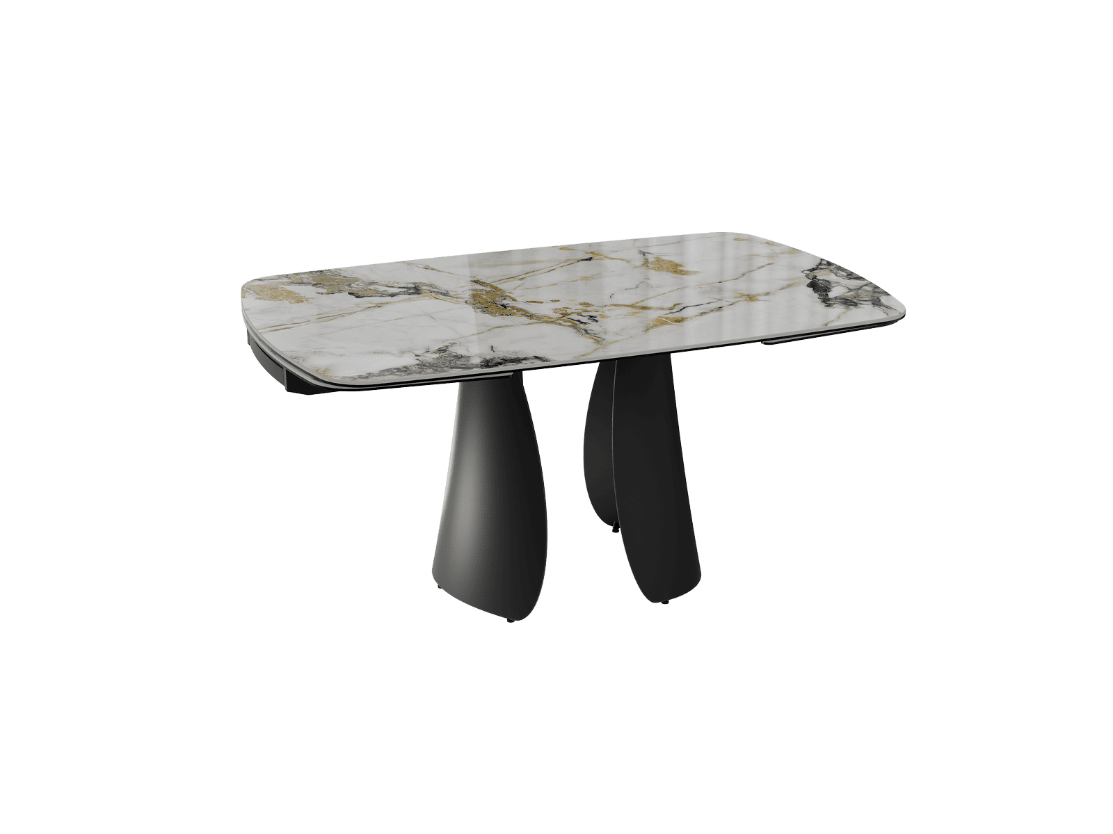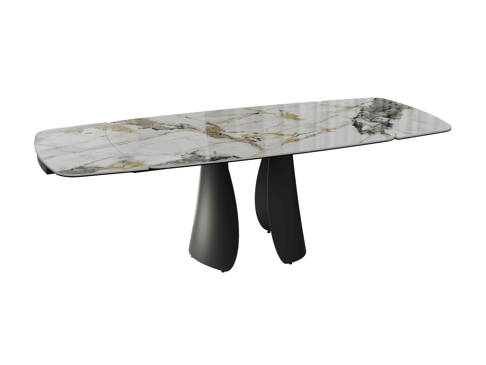 Dimensions and details Net weight : 131,5 Kg Colour : Marble doro Dimensions : 160/240 x 100 x 76 cm Dimensions closed : 160 x 100 x 76 cm Dimensions opened : 240 x 100 x 76 cm Height : 76 cm Width : 100 cm Length : 160/240 cm Number of seats : 6 to 8 people Legs : Matt black lacquered steel Plate : 6 mm thick ceramic glued upon a 8 mm glass pane Extension