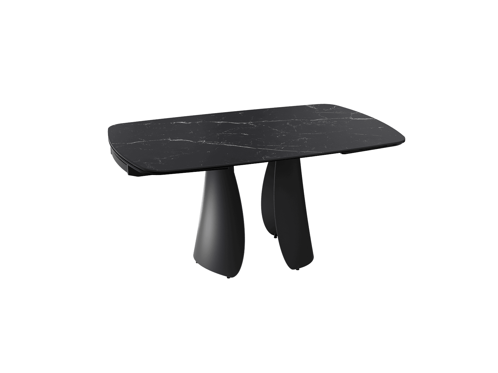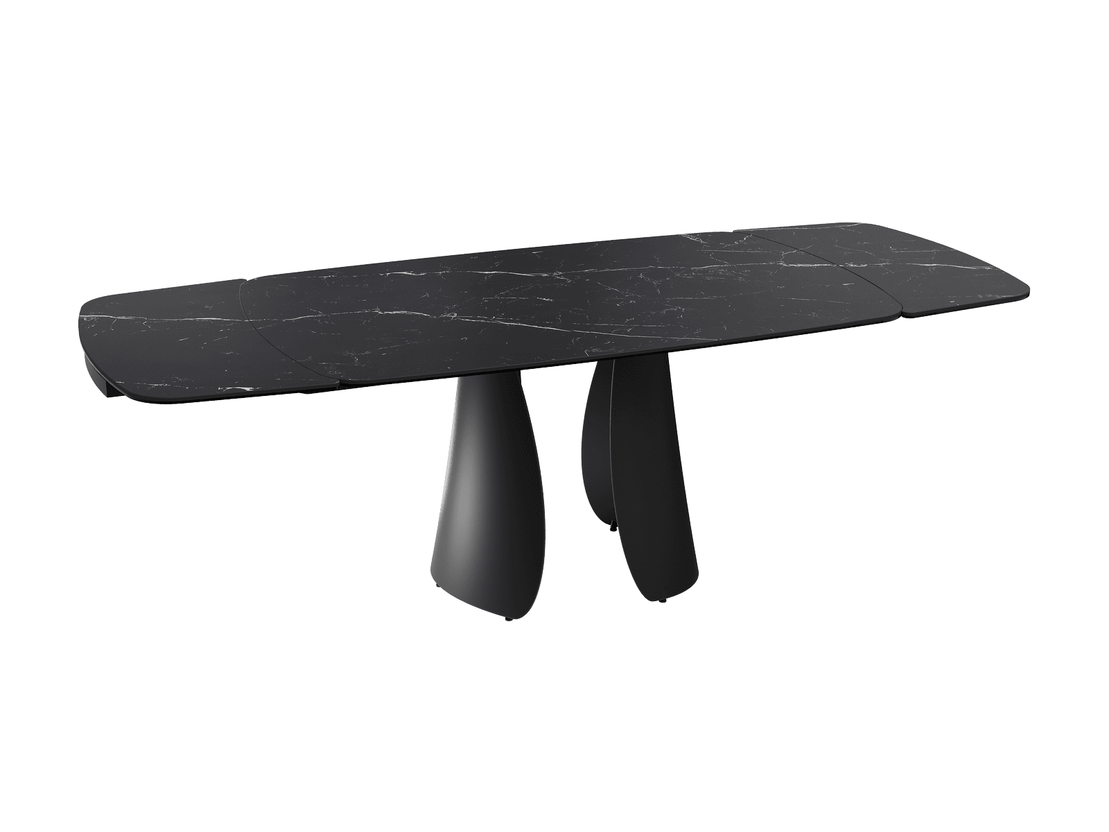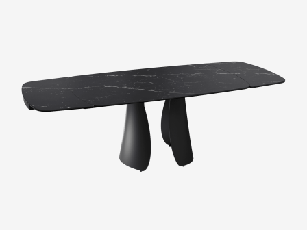 Dimensions and details Net weight : 131,5 Kg Colour : Marble marquina Dimensions : 160/240 x 100 x 76 cm Dimensions closed : 160 x 100 x 76 cm Dimensions opened : 240 x 100 x 76 cm Height : 76 cm Width : 100 cm Length : 160/240 cm Number of seats : 6 to 8 people Legs : Matt black lacquered steel Plate : 6 mm thick ceramic glued upon a 8 mm glass pane Extension
