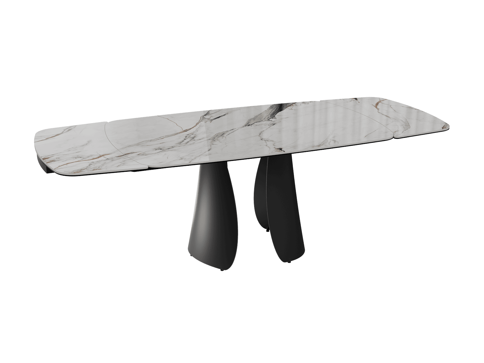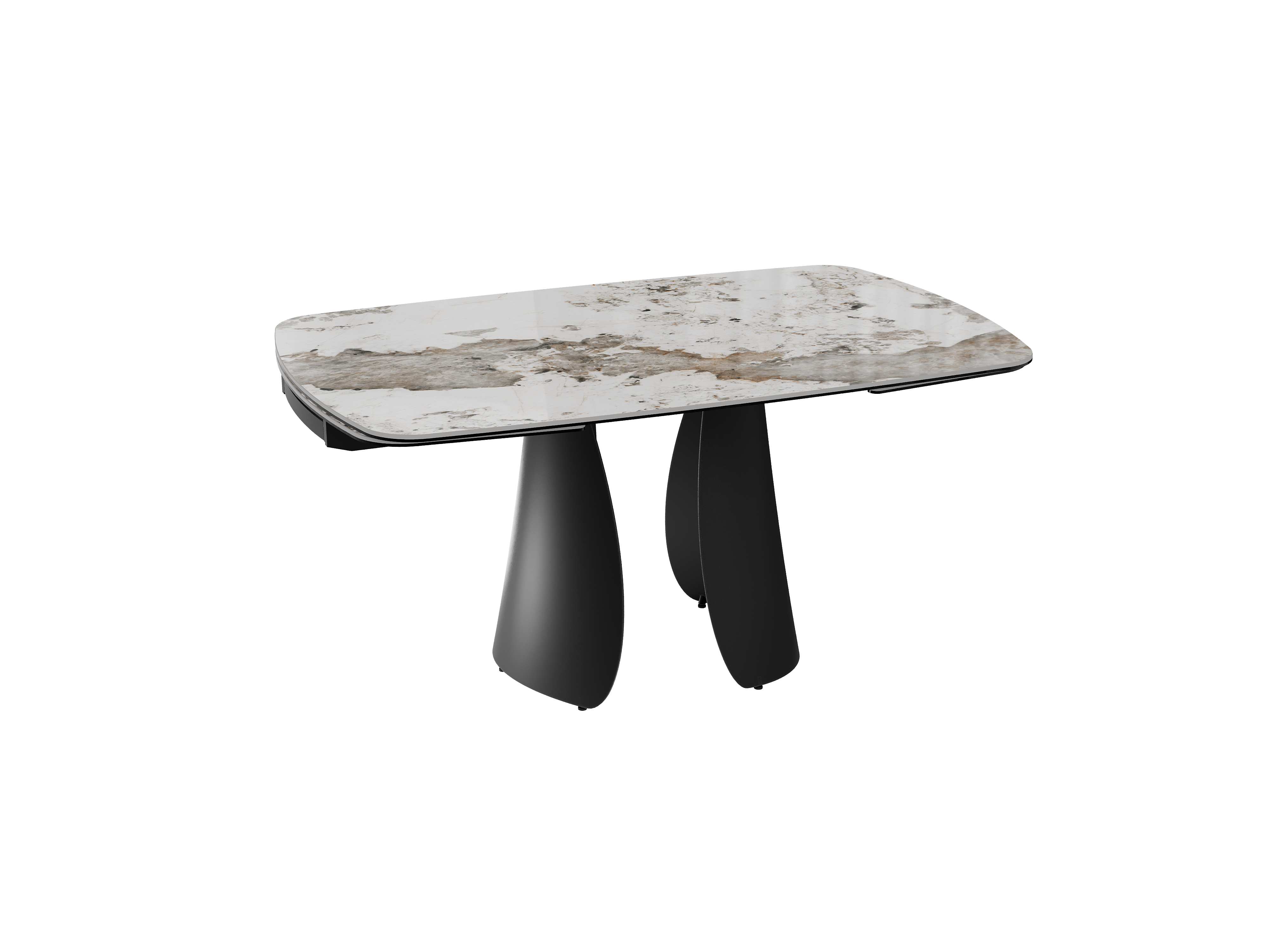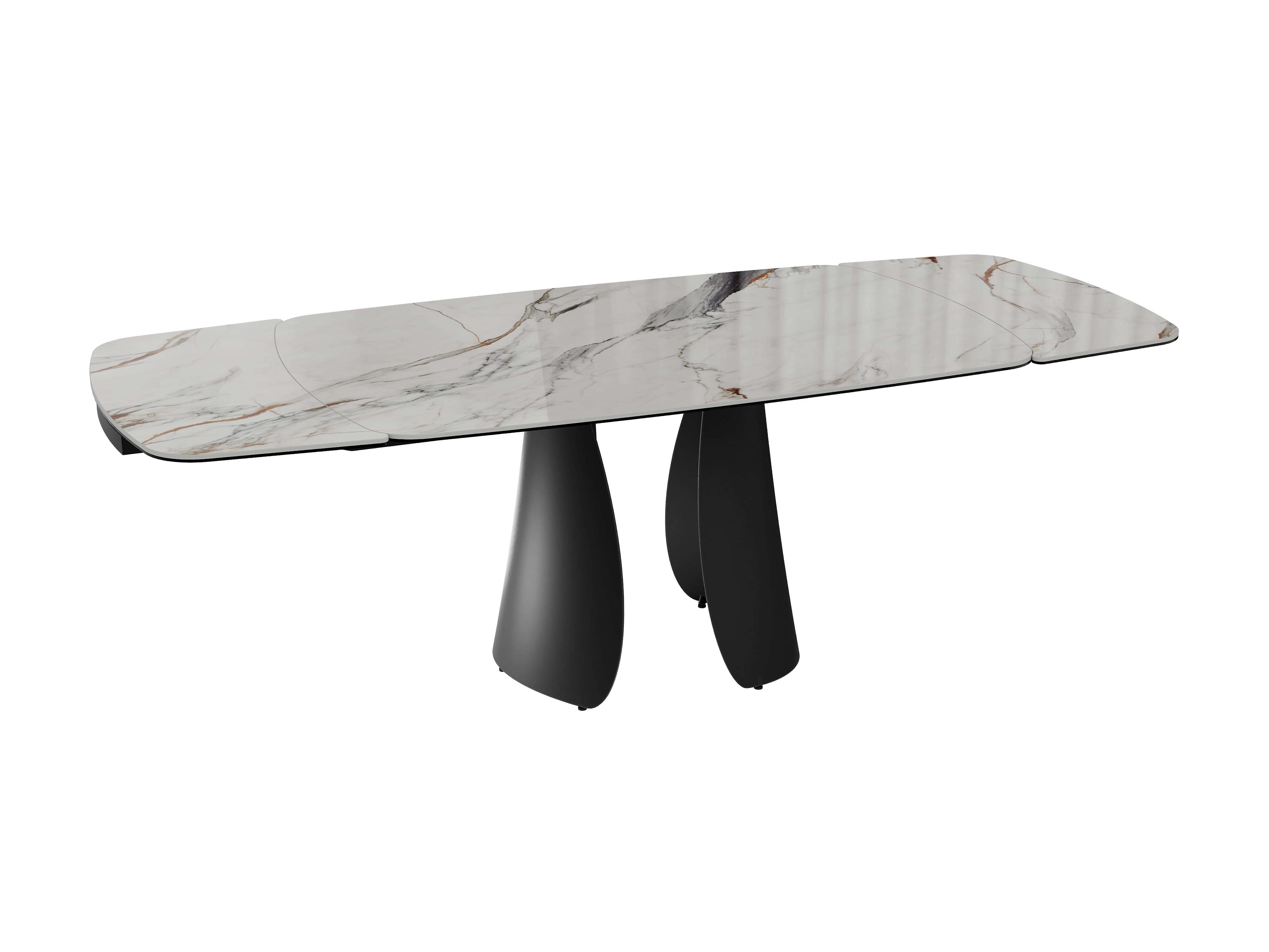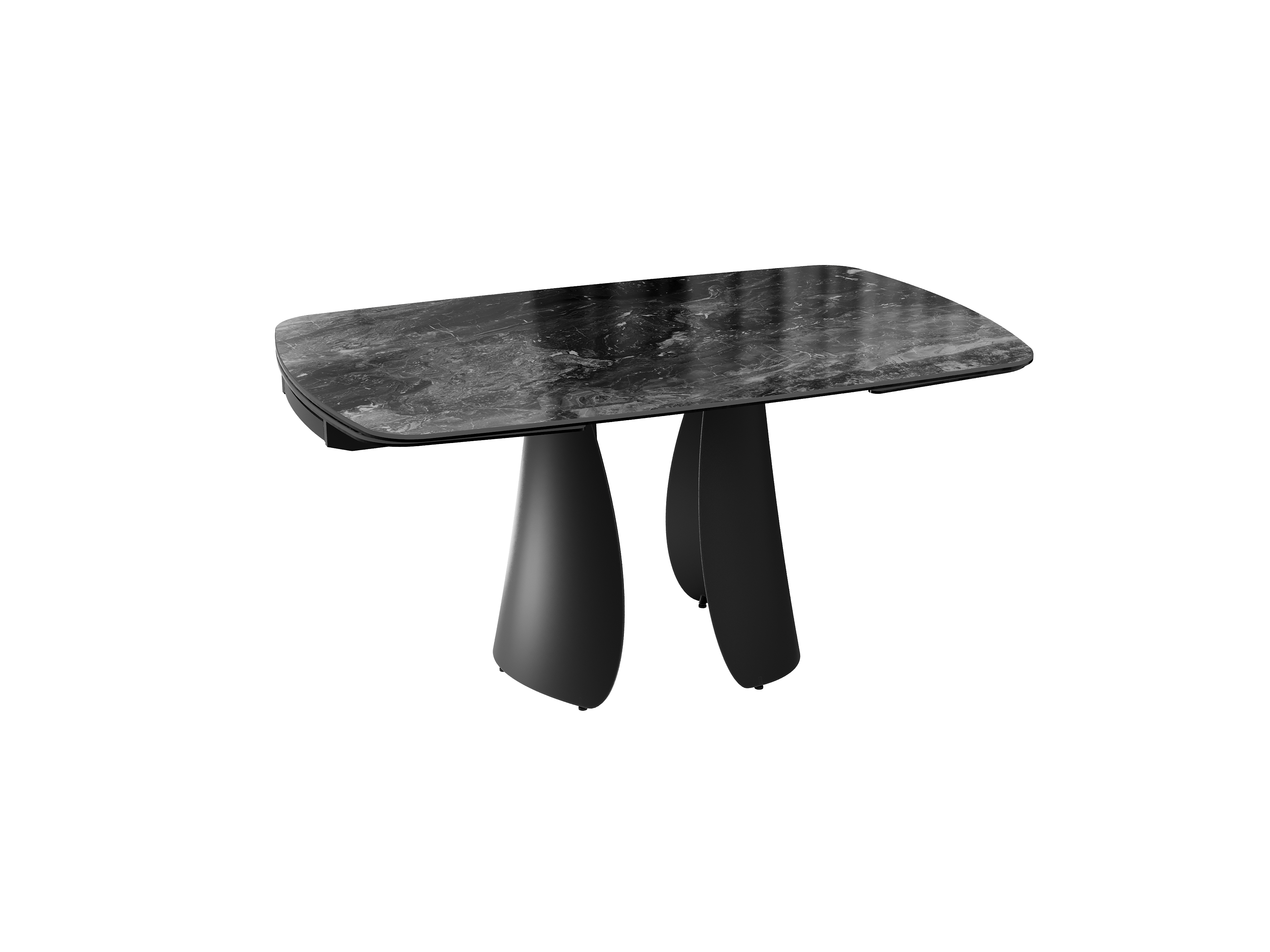 Dimensions and details Net weight : 131,5 Kg Colour : Marble fiorentino Dimensions : 160/240 x 100 x 76 cm Dimensions closed : 160 x 100 x 76 cm Dimensions opened : 240 x 100 x 76 cm Height : 76 cm Width : 100 cm Length : 160/240 cm Number of seats : 6 to 8 people Legs : Matt black lacquered steel Plate : 6 mm thick ceramic glued upon a 8 mm glass pane Extension