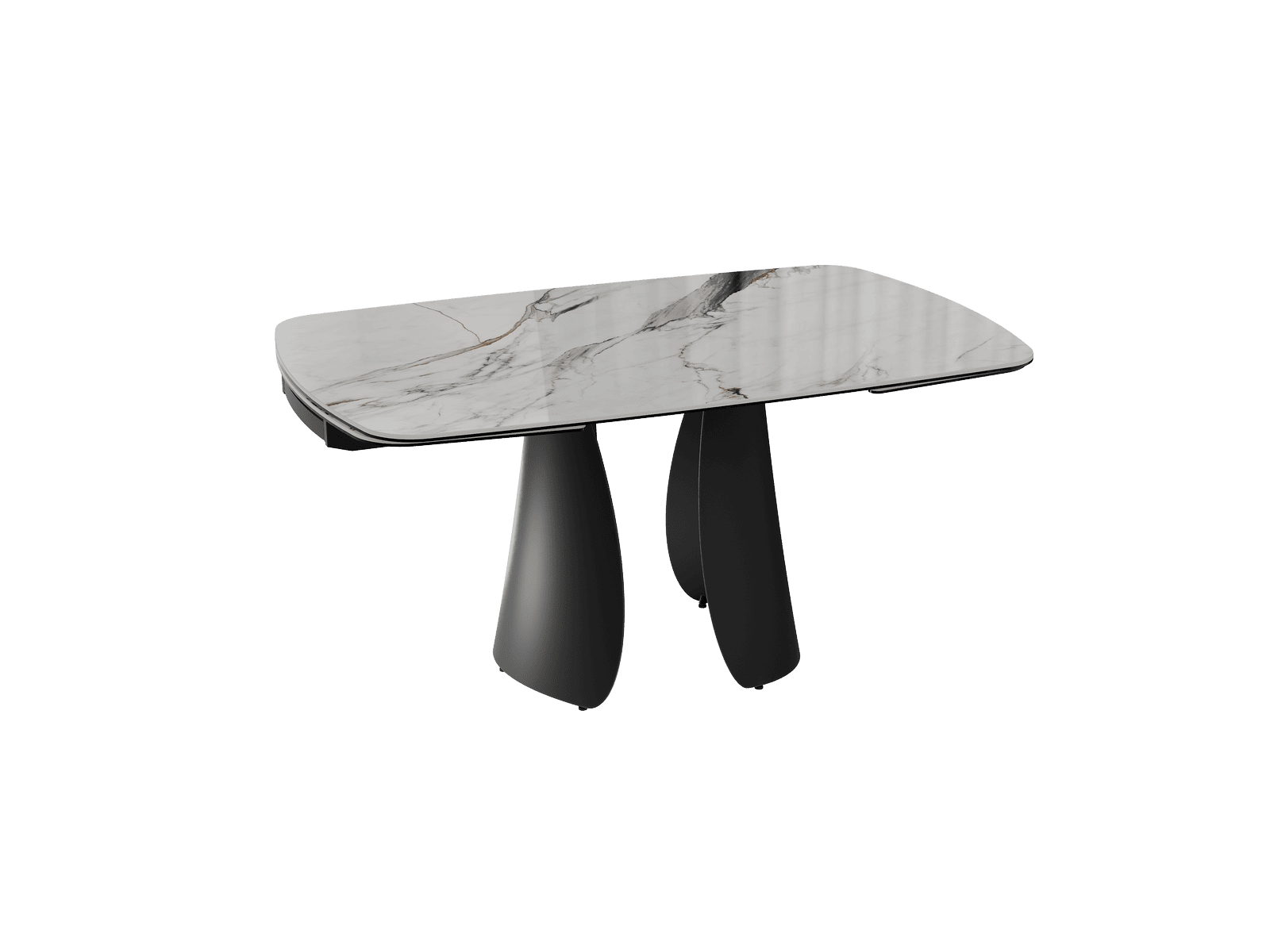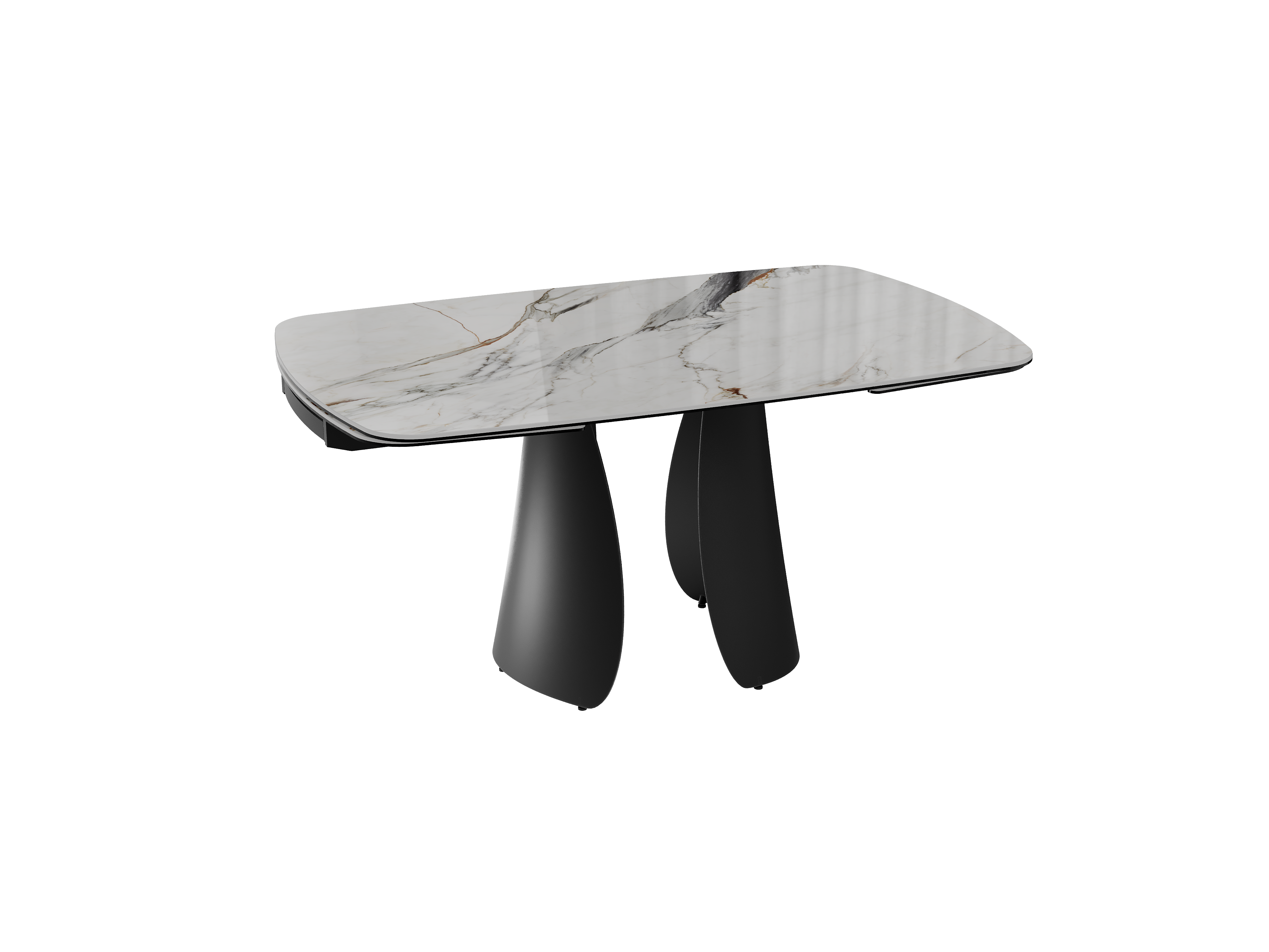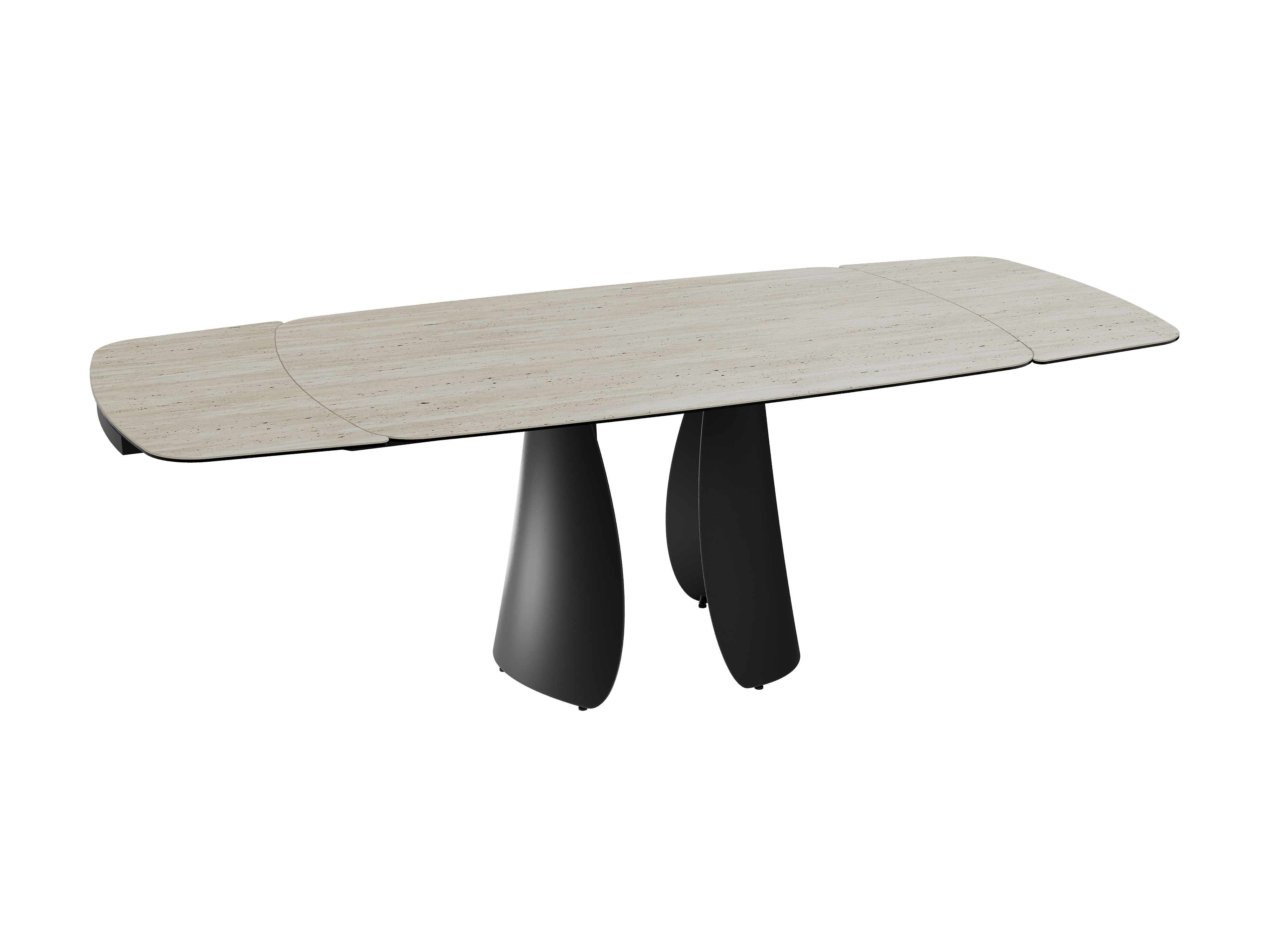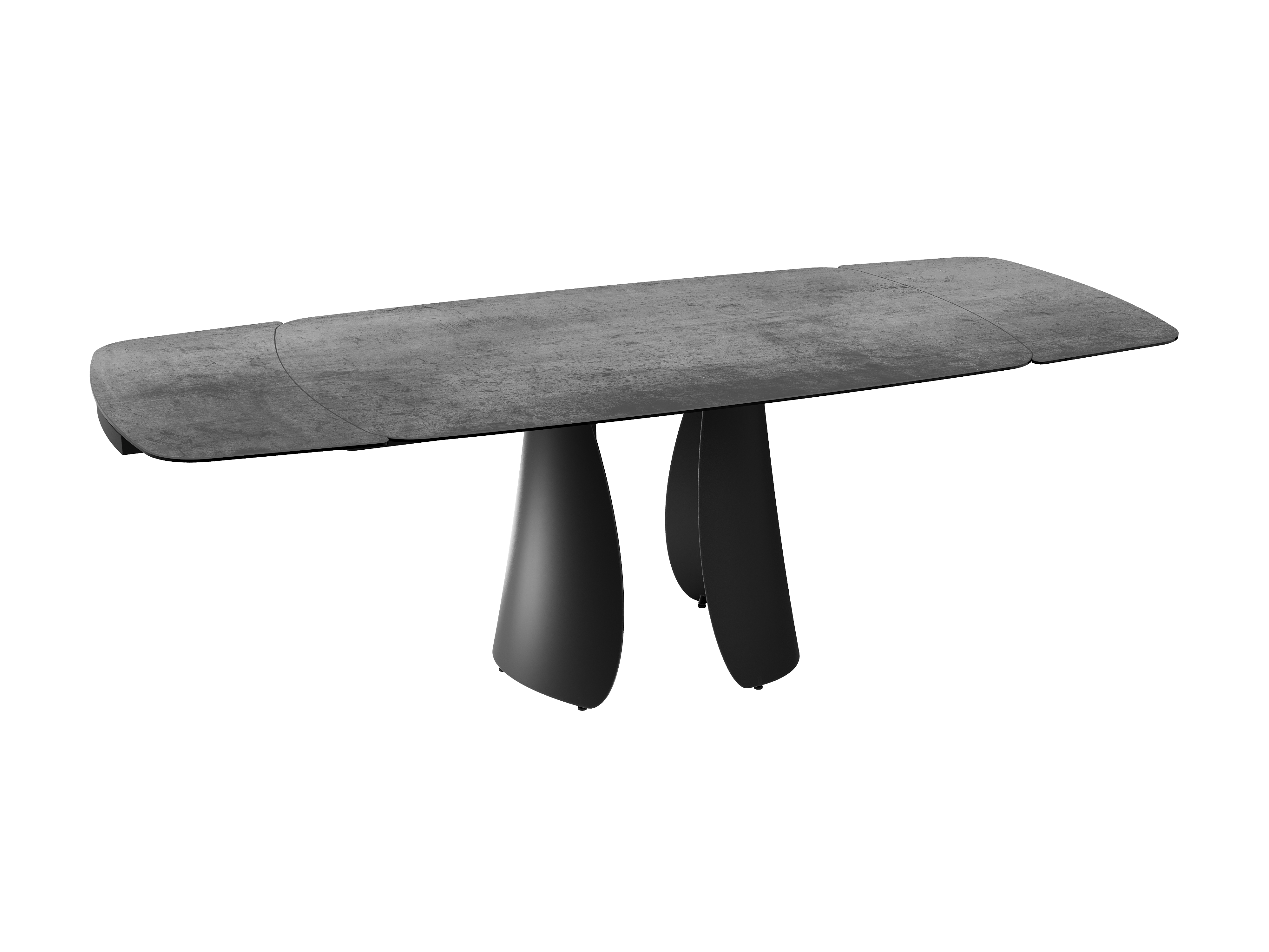 Dimensions and details Net weight : 131,5 Kg Colour : Marble fiorentino Dimensions : 160/240 x 100 x 76 cm Dimensions closed : 160 x 100 x 76 cm Dimensions opened : 240 x 100 x 76 cm Height : 76 cm Width : 100 cm Length : 160/240 cm Number of seats : 6 to 8 people Legs : Matt black lacquered steel Plate : 6 mm thick ceramic glued upon a 8 mm glass pane Extension