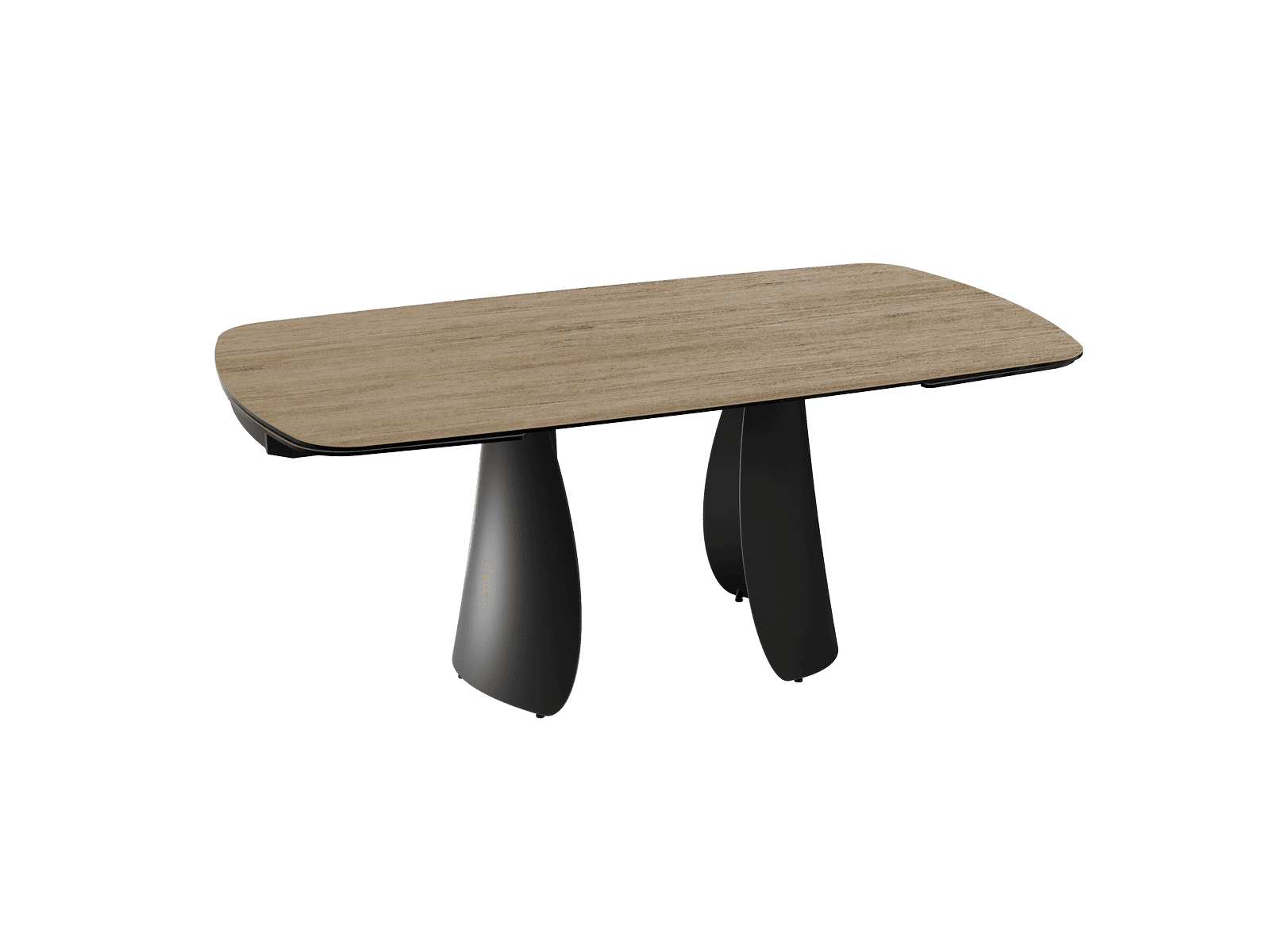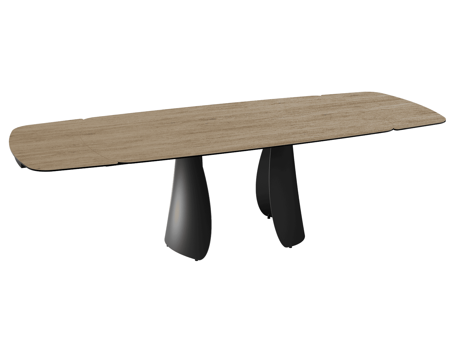 Dimensions and details Net weight : 143 Kg Colour : Clear oak Dimensions : 190/270 x 100 x 76 cm Dimensions closed : 190 x 100 x 76 cm Dimensions opened : 270 x 100 x 76 cm Height : 76 cm Width : 100 cm Length : 190/270 cm Number of seats : 10 to 12 people Legs : Matt black lacquered steel Plate : 3 mm thick ceramic glued upon a 8 mm glass pane Extension