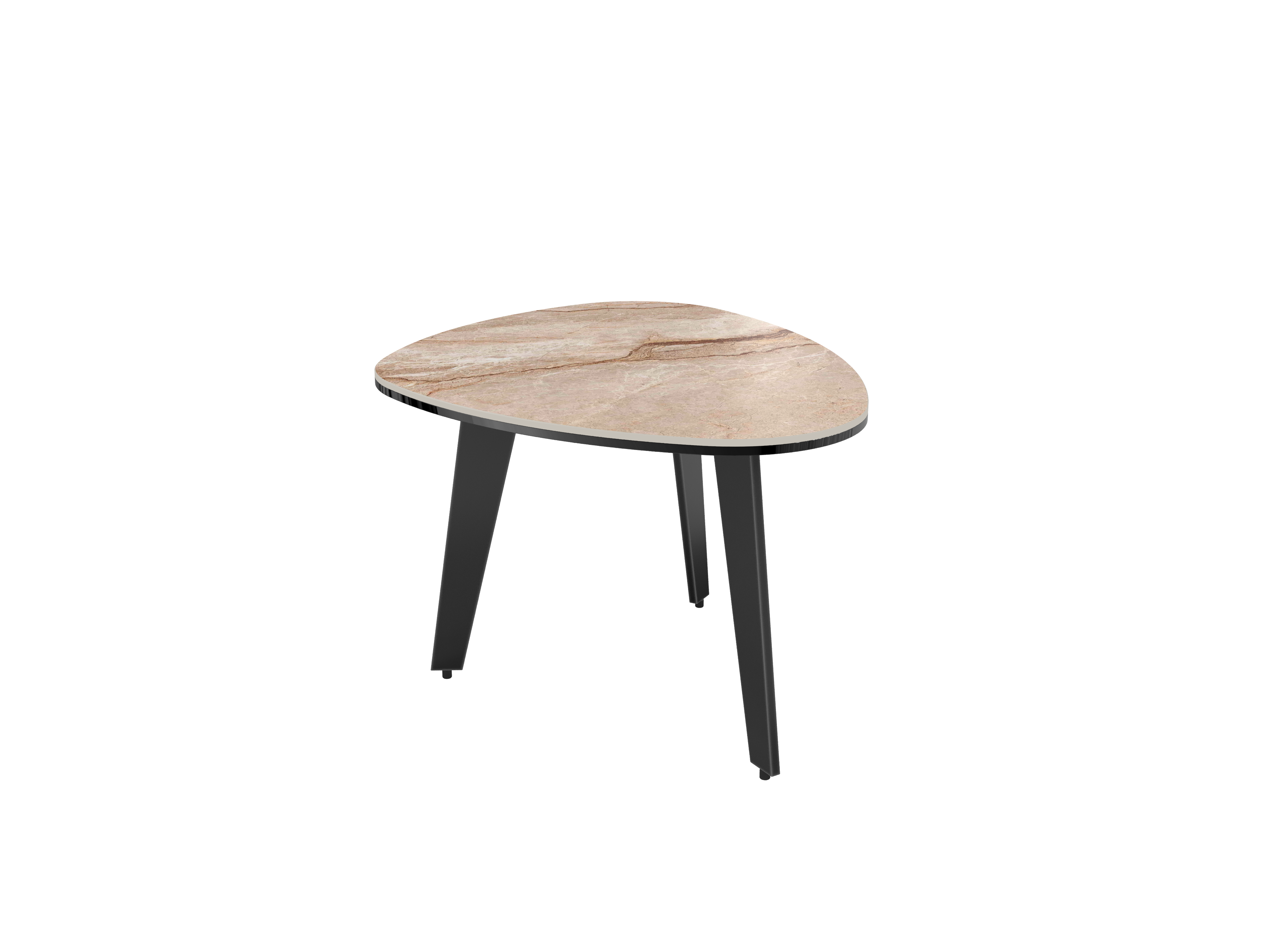 The small side table has a strong character. Akante is proud to present the Galet side table with the new Silver ceramic that combine in an association which will surely remind you of pebbles on a beach in summer. The ceramic is 3 mm thick and glued upon a 6 mm glass pane to ensure a top-notch resistance.