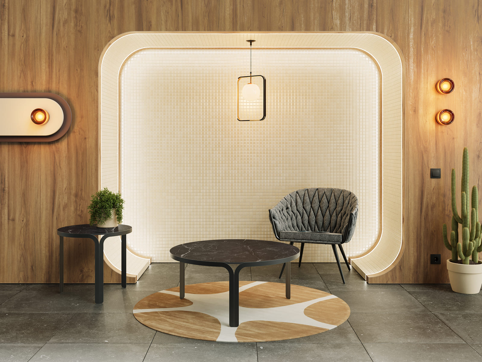 Dimensions and details Net weight : 20,7 Kg Colour : Marble marquina Diameter : 90 cm Dimensions : Ø 90 x 40 cm Height : 40 cm Plate : 11 thick full body ceramic Frame : Black lacquered steel INPI : 20234015