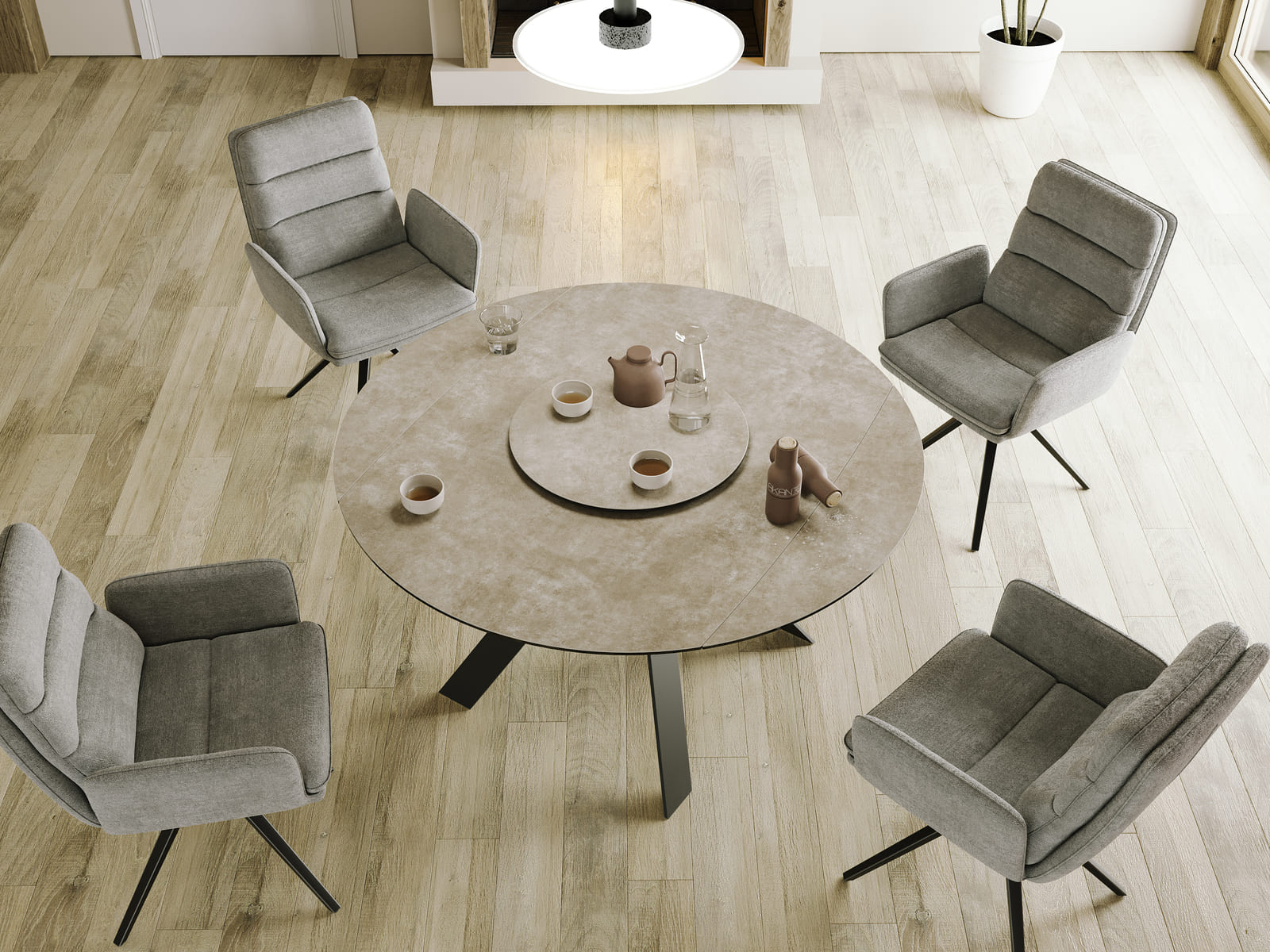Discover our new Lazy Susan turntable, available in Ø55 cm and Ø75 cm. It rotates 360° with a simple gesture to make sharing at the table easier. Customisable in 12 ceramic finishes, it pairs perfectly with our large convivial dining tables.