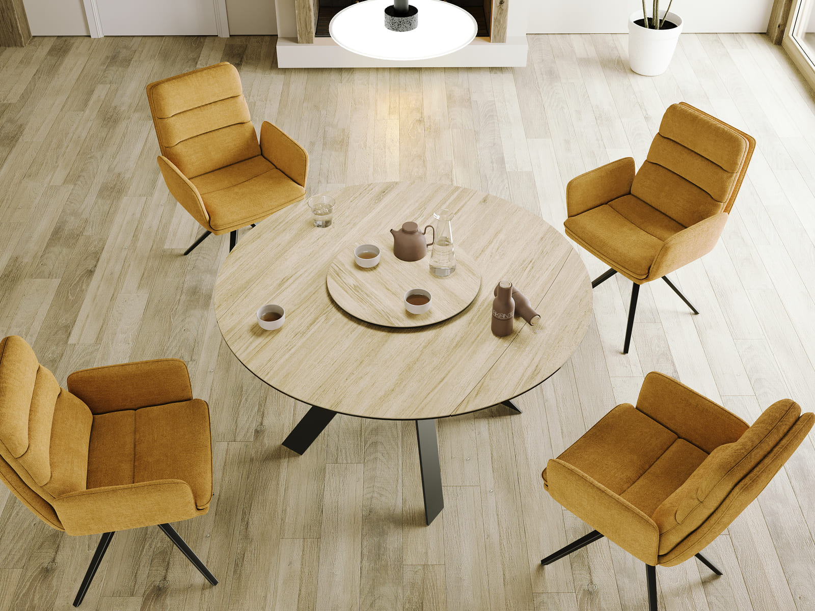Discover our new Lazy Susan turntable, available in Ø55 cm and Ø75 cm. It rotates 360° with a simple gesture to make sharing at the table easier. Customisable in 12 ceramic finishes, it pairs perfectly with our large convivial dining tables.