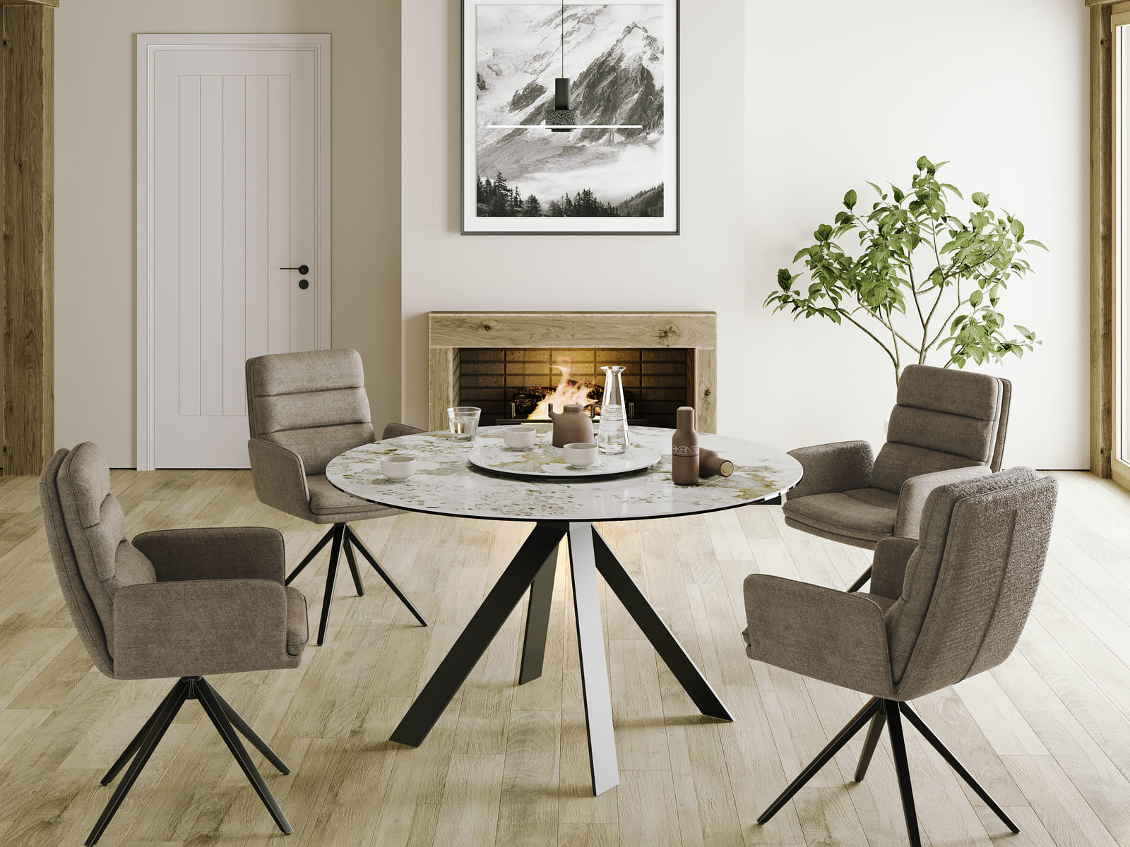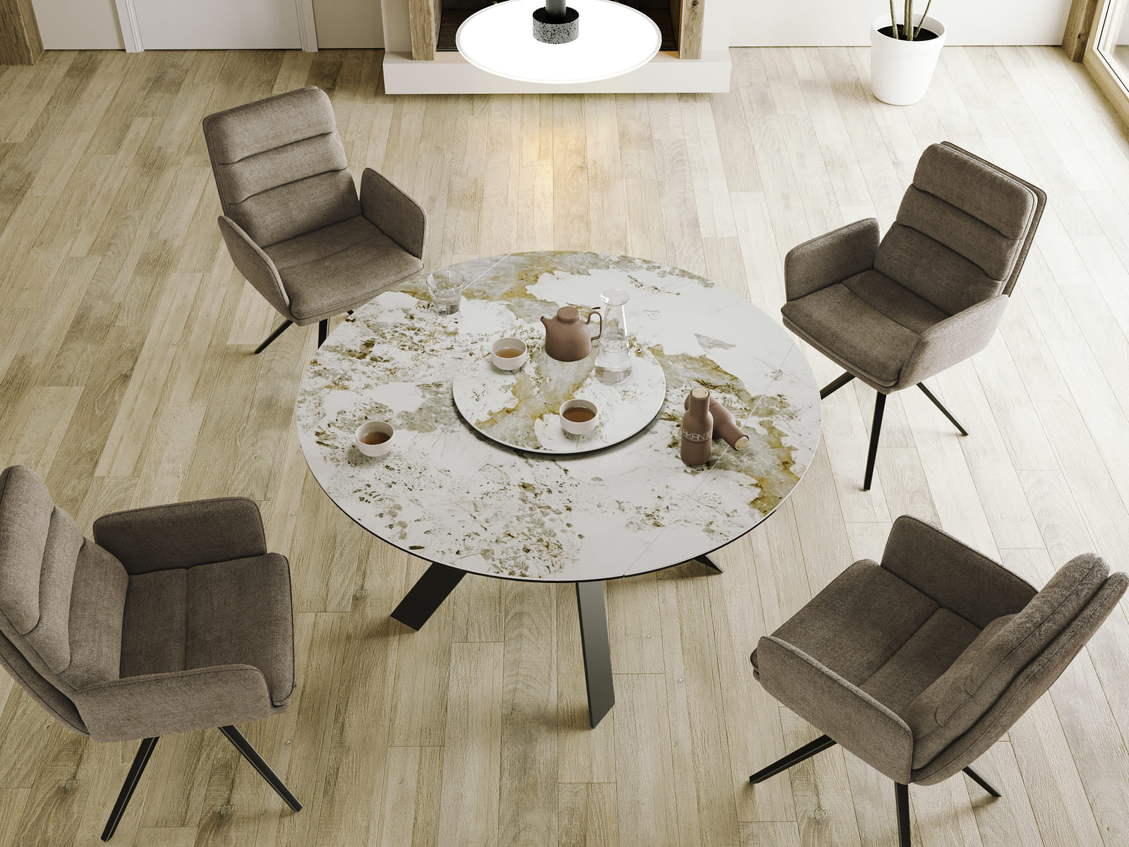 Discover our new Lazy Susan turntable, available in Ø55 cm and Ø75 cm. It rotates 360° with a simple gesture to make sharing at the table easier. Customisable in 12 ceramic finishes, it pairs perfectly with our large convivial dining tables.