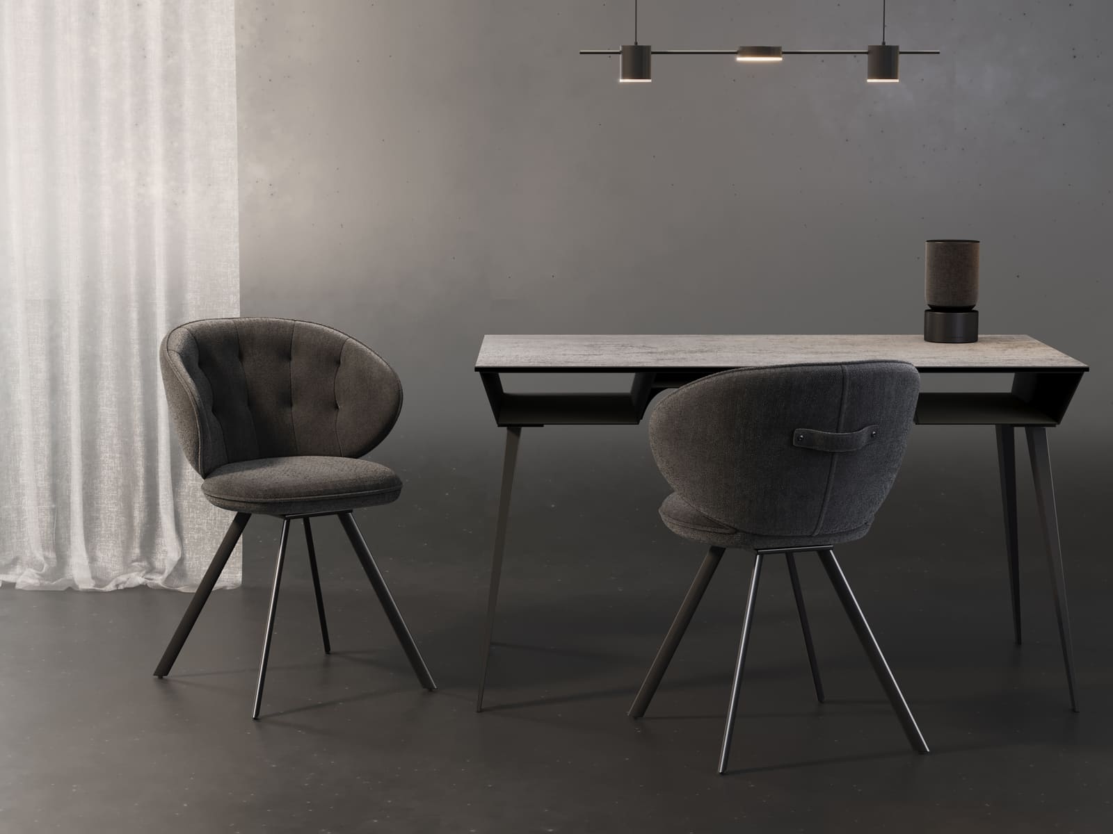 Dimensiones y detalles Peso neto : 9 Kg Asiento : Giratorio de 180° autoretorno Composición Tejido : 100% poliéster Color : Antracita Densidad espuma : 25kg/m3 Altura asiento : 48 cm Altura total : 80 cm Ancho : 56,5 cm Martindale : 60 000 Materia del asiento : Tejido Base : Acero lacado negro mate Carga maxima soportada : 120 kg Profundidad : 60 cm Vendidas por 2 Resistencia a la luz : 5/5 Resistencia al pilling : 5/5 Resistencia del color al rozamiento : 5/5 Resistencia al fuego : Respeta la norma europea en vigor EN 1021-1 (resistencia cigarrillo) Resistencia al fuego : Respeta la norma europea en vigor EN 1021-2 (resistencia llama) Tejido : OEKO-TEX® Standard 100 Código INPI : 20231433