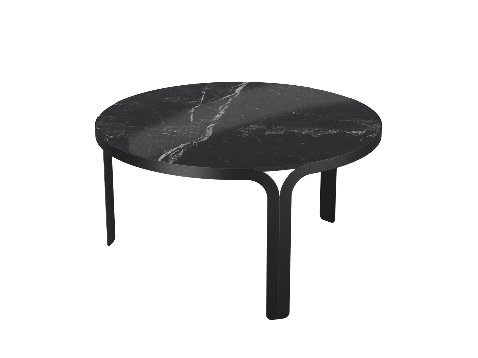 Akante is proud to present the Madura coffee table in its fully black version, the epitome of modern elegance. Its plate consists of a fullbody 11 mm thick ceramic making it an elegant yet simple coffee table. Its marble ceramic is the perfect companion to its matt black lacquered steel base. The plate is 75 cm in diameter and the table is 40 cm in height.