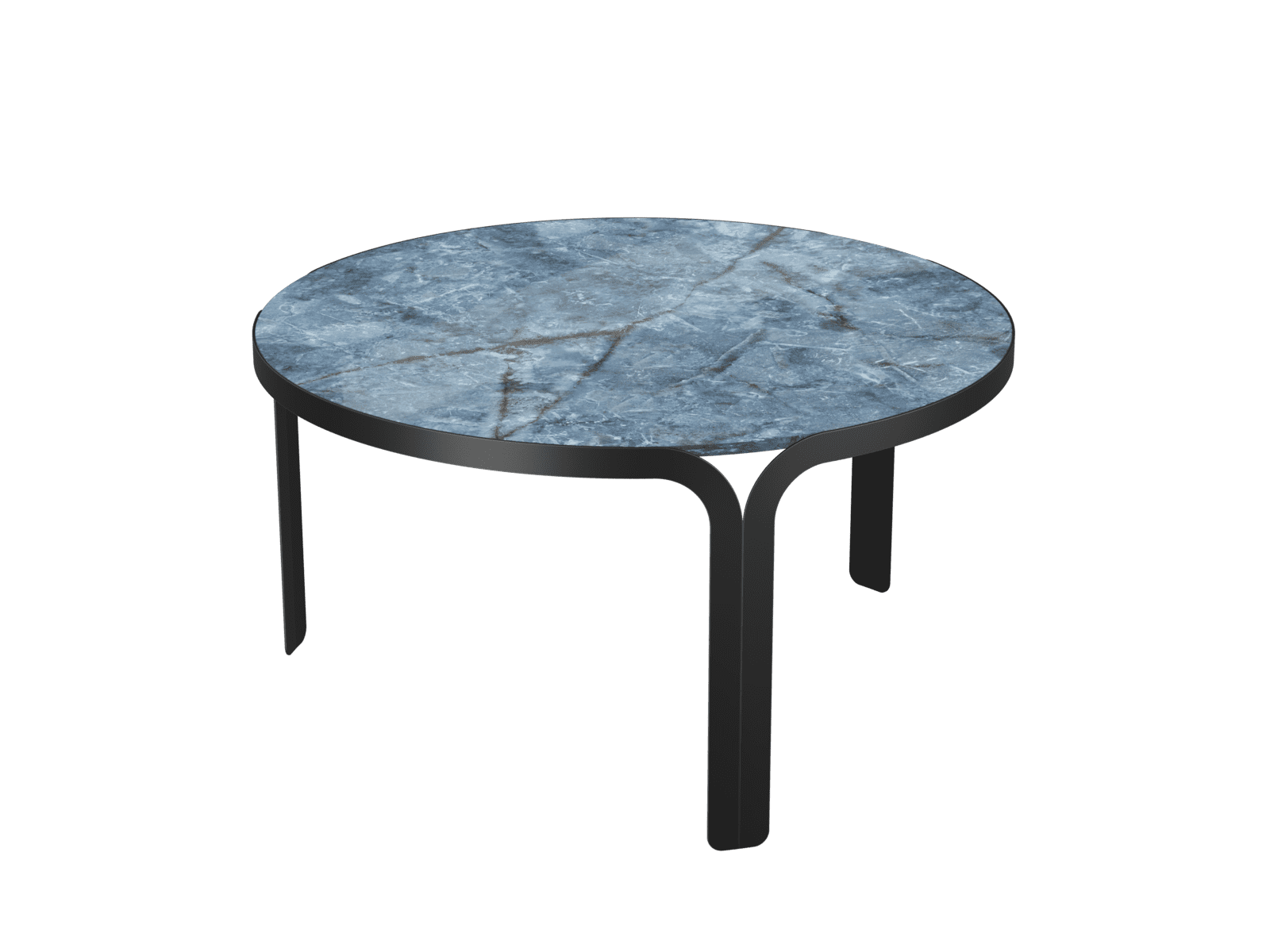 Add a touch of colour to your living room thanks to the Blue Onyx marble ceramic. The Madura coffee table has a 75 cm in diameter plate made of an 11 mm thick fullbody ceramic. Its round shape softens its look. The elegant matt black base is 40 cm in height.