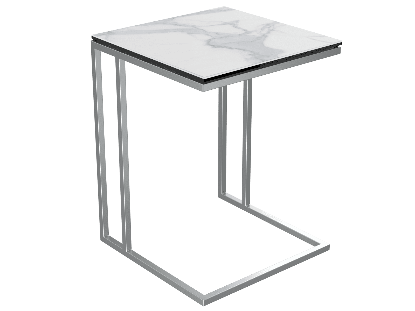 Alicia is a side table by Akante, available in a multiude of glass and ceramic finishes as well as two choices of base. Its glass plate gives it a chic and modern touch to the room. Its shape and height have been designed to slide beneath your sofa and under the armrests. Accompanying photo shows the matt marble ceramic version and brushed stainless steel base.