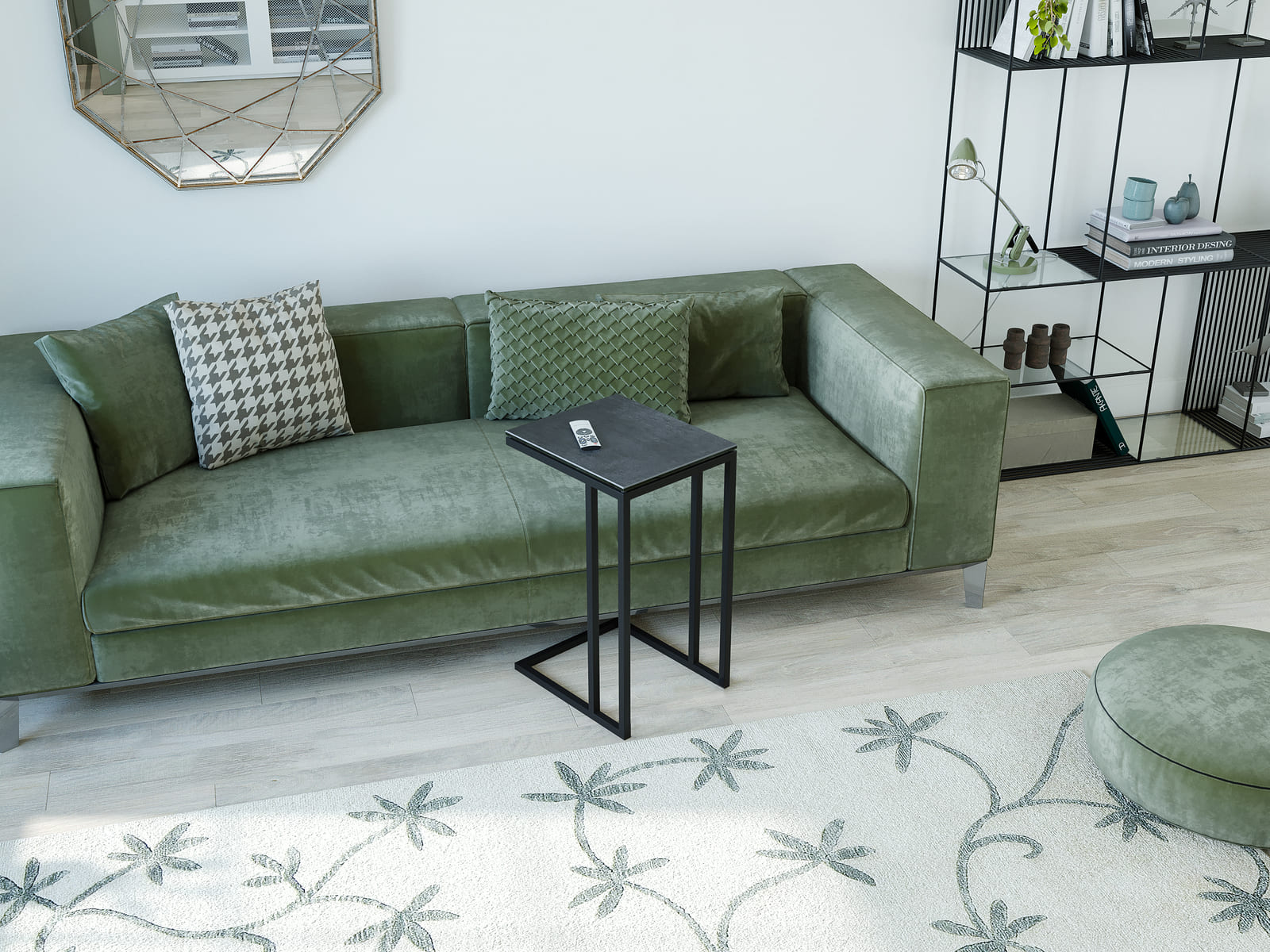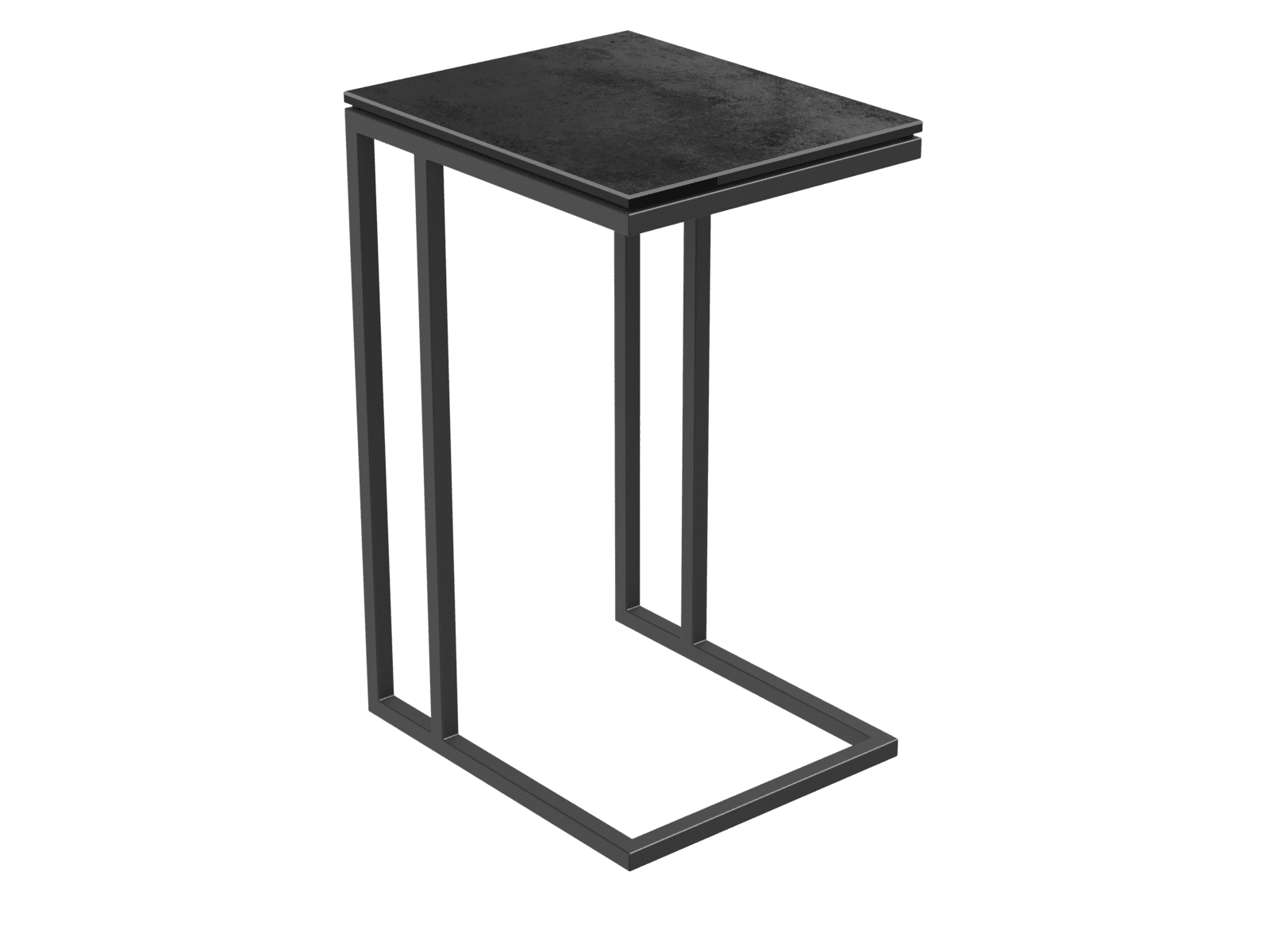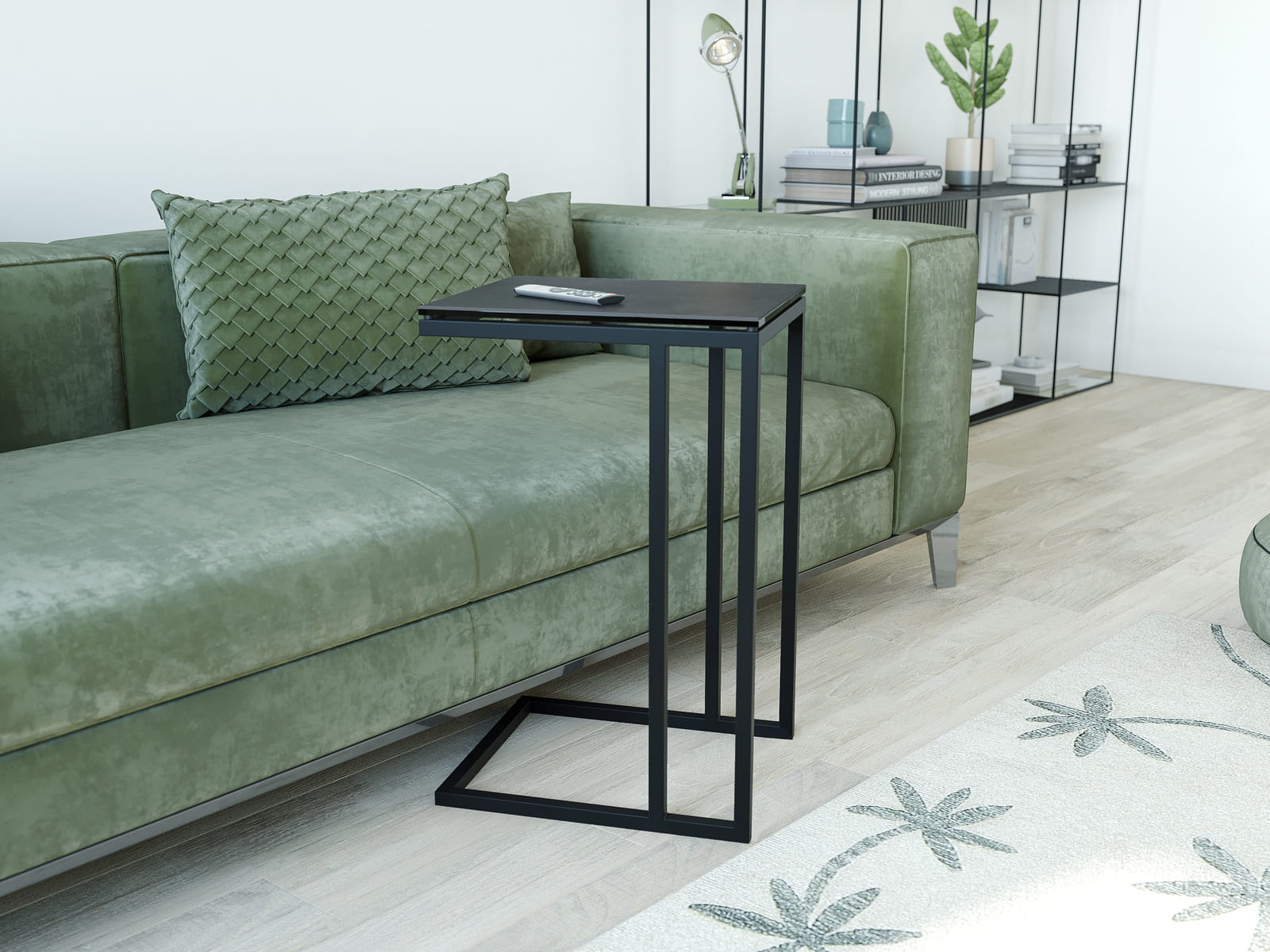 The Alicia black side table is fit to become an essential in your living room. It can hold your computer, your magazines and cups of coffee as a side table or as an extension of your decoration by carrying plants, lamps… It has a trendy matt black lacquered steel base, 66 cm high, that will allow it to be slid easily beside your couch. Its 42 by 35 cm plate is made of titanium ceramic. It's 3 mm thick and glued upon a 6 mm glass pane which makes it as sturdy as stable. It's the perfect choice for a daily use basis.