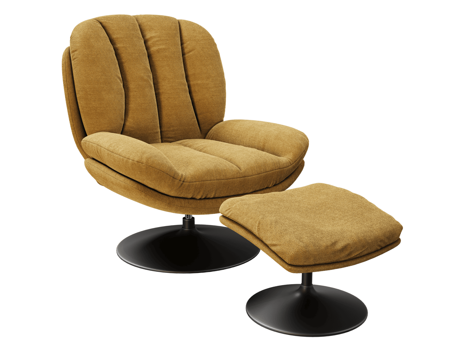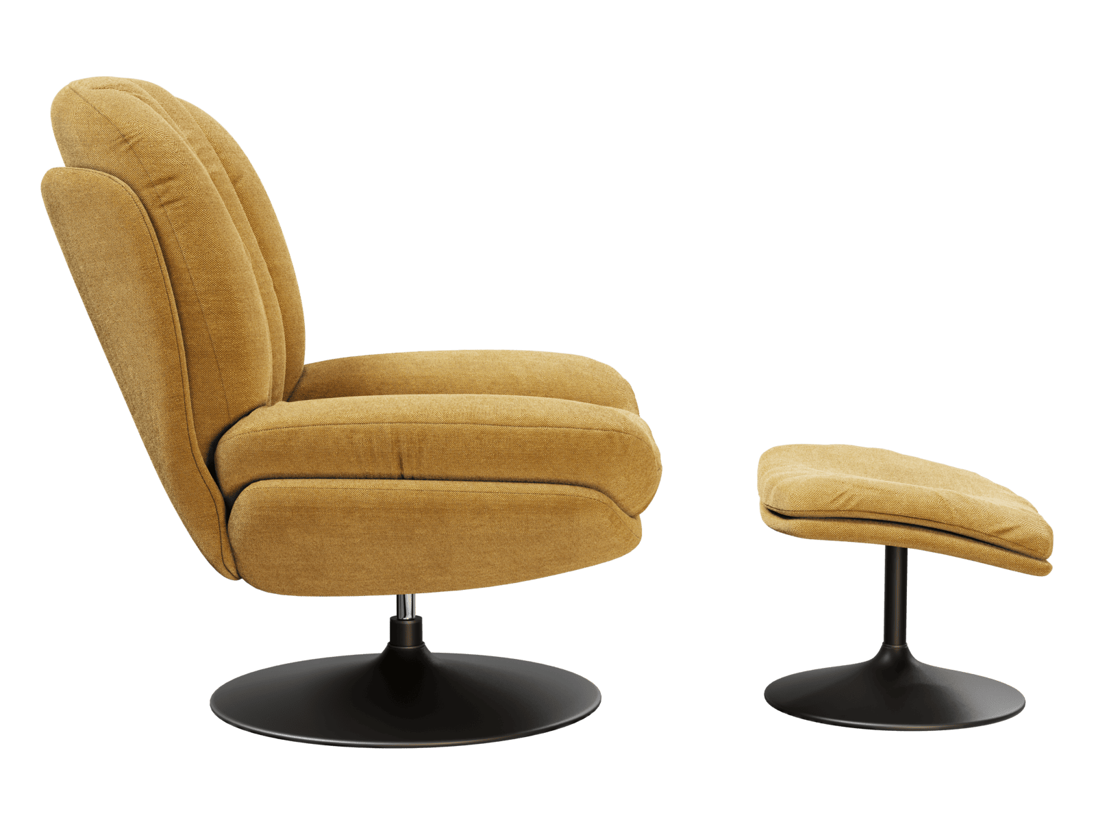 Offrez à votre intérieur une touche à la fois contemporaine et rétro grâce au fauteuil Lisboa. Sa teinte ocre, lumineuse et chic, s'intègre parfaitement à tout type de décoration. Profitez de son confort inégalé grâce à son tissu 100% polyester résistant au boulochage et aux frottements. Il est également conforme à la norme européenne de résistance aux flammes et cigarettes. Lisboa mesure 72 cm de largeur, 86 cm de profondeur, 92 cm de hauteur totale et 47 cm de hauteur d’assise. Son repose-pied mesure 50 x 42 cm sur 43 cm de hauteur. Son assise est pivotante à 360°.