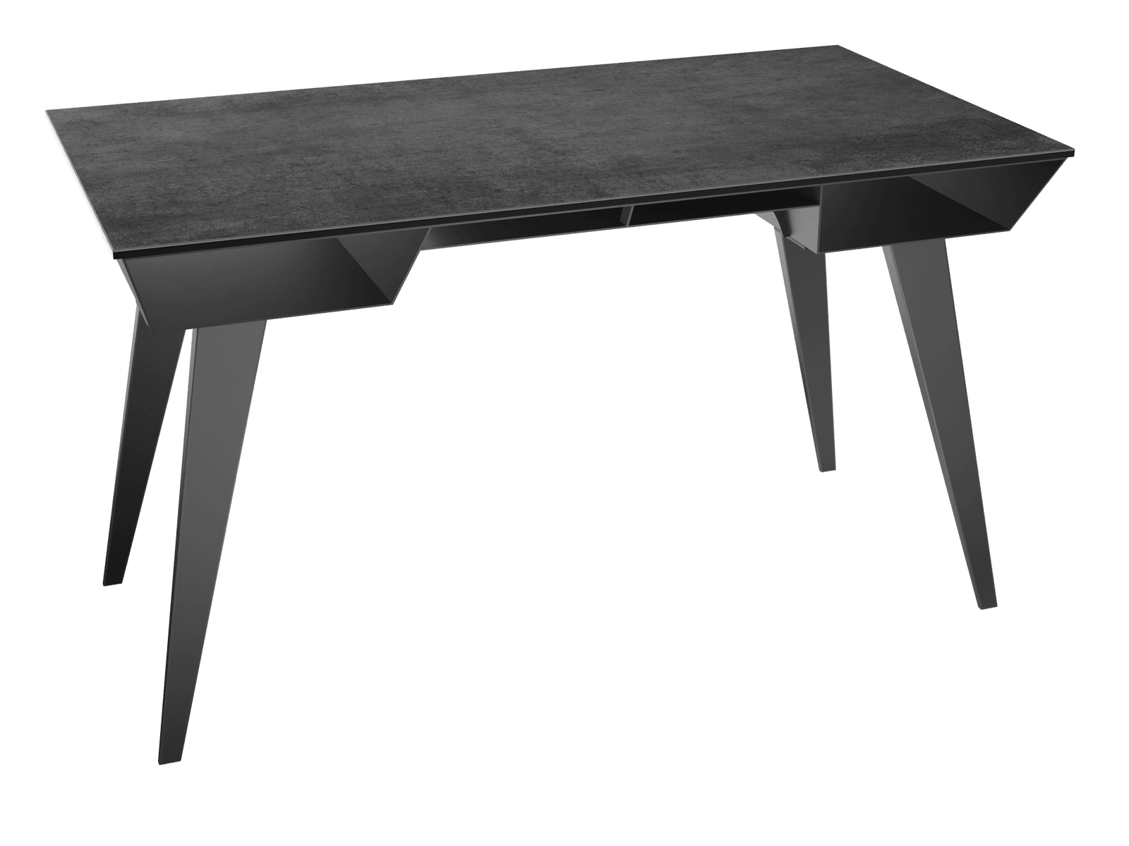 Le bureau Rafale a tout pour vous plaire et pour favoriser un travail productif. Il vous permettra à l’aide de ses deux rangements intégrés, d’organiser votre espace de travail. Le plateau en céramique titane fait 3 mm d’épaisseur et est collé sur un vitrage de 8 mm. Avec ses lignes simples et sobres, il s’intégrera facilement dans tous les espaces. Le piétement classique en acier laqué noir est d’une hauteur de 73.5 cm, il apporte de la stabilité à ce bureau Rafale.