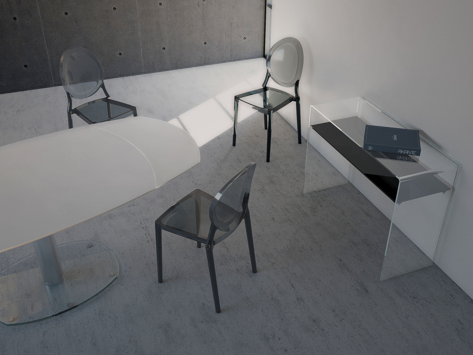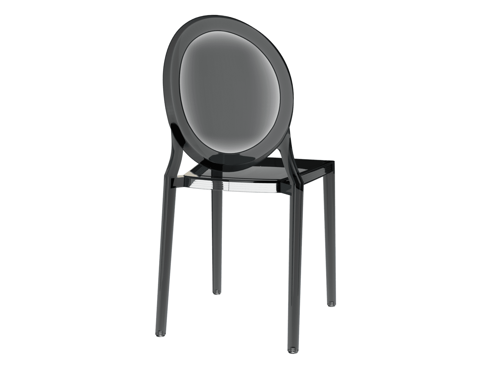 VENDU PAR LOT DE 2 CHAISES. La chaise LAFAYETTE est tout simplement magnifique en gris fumé. Avec son médaillon et sa couleur fumé, elle va remplir votre espace tout en étant fine et légère. Hauteur d'assise : 47 cm. Chaises empilables.