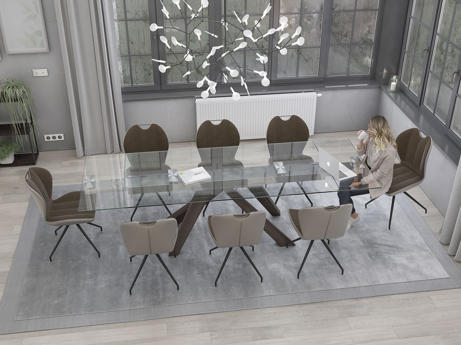 La chaise New York est confortable. Son assise est épaisse et bien dessiné, tout comme son dossier. Une poignée en acier rend cette chaise pratique car elle permet de la déplacer aisément. Le dossier de la chaise est en PU et l’assise en tissu. C’est donc une chaise qui est proposée en bi-matière ce qui la rend extrêmement originale. La chaise New York de chez Akante se décline en 6 couleurs. La chaise New York est disponible en version fixe ou pivotante. Le piétement de cette chaise est en acier laqué noir pour une meilleure stabilité. Présentée ici en taupe en version pivotante.