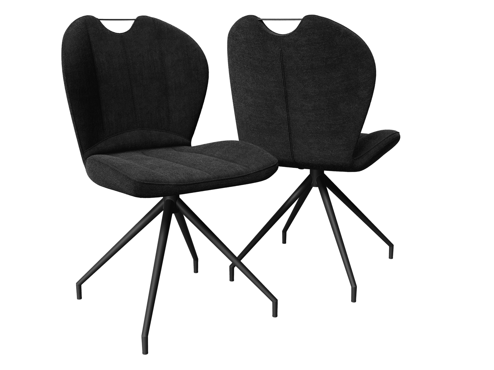 .Moderne et confortable, la chaise NEW YORK est un véritable atout pour votre intérieur. Son dossier enveloppant est recouvert d’un tissu 100% polyester. Il est doté d’une excellente résistance face aux frottements et au boulochage. La teinte Anthracite se marie idéalement à son piétement conçu en acier laqué noir mat. Ces teintes assurent un design contemporain à la pointe de la tendance actuelle. NEW YORK mesure 50 cm de largeur, 63 cm de profondeur, 48 cm de hauteur d’assise et 63 cm de hauteur totale. Sa structure est pivotante pour un confort d’assise optimal.
