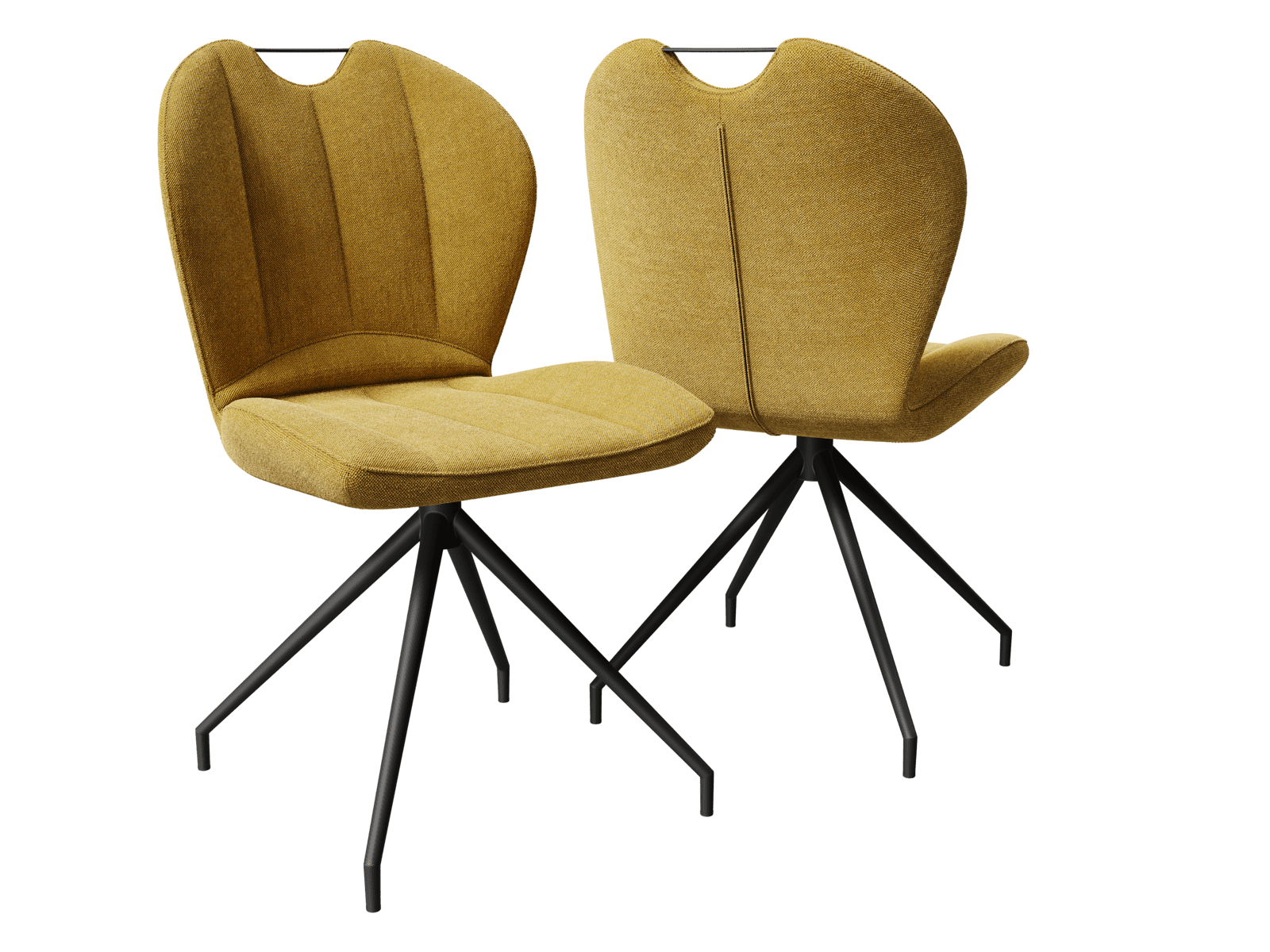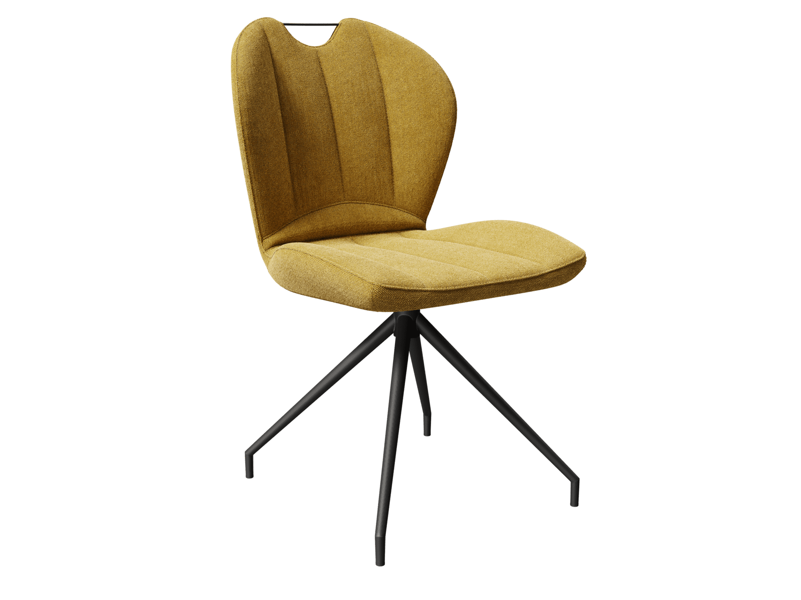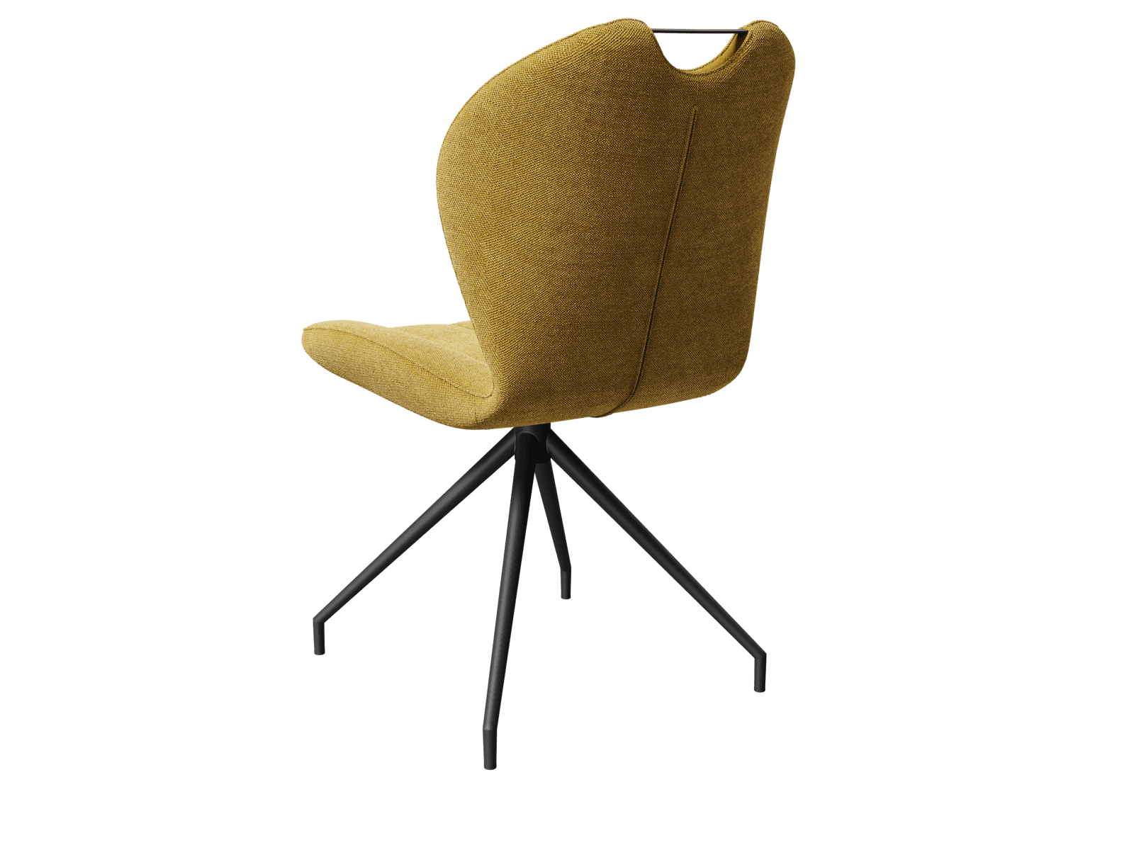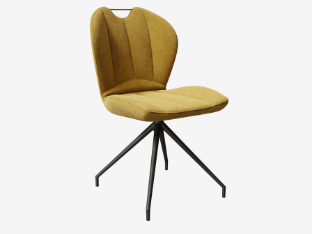 .Adoptez la chaise New York en teinte Ocre pour une touche lumineuse au sein de votre espace repas. Sa poignée lui permet de faciliter son déplacement. Son assise incurvée est pivotante pour un confort optimisé. Son tissu est conçu en 100% polyester, il est doté d’une excellente résistance au boulochage, au frottement et à la lumière. Concernant ses dimensions, sa largeur est de 50 cm, sa profondeur est de 63 cm, sa hauteur d’assise est de 48 cm et sa hauteur totale est de 63 cm. Sa structure est en acier laqué noir mat.