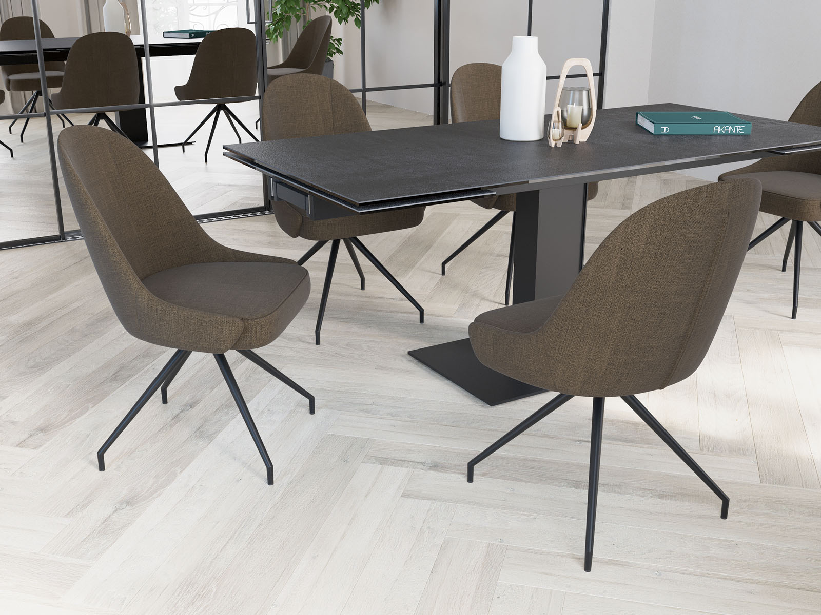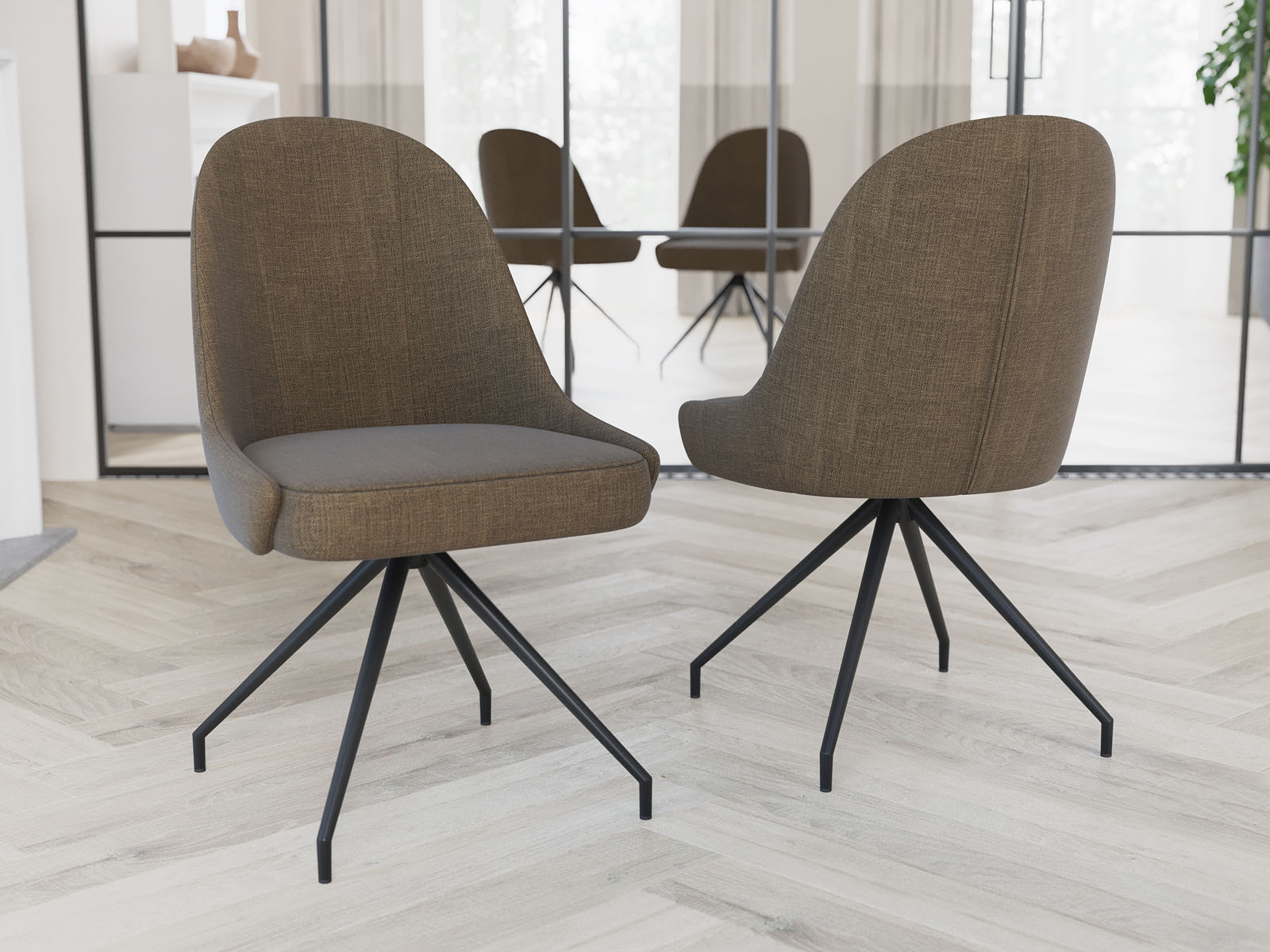 Douceur et confort, un mariage parfait pour la chaise Miami couleur taupe. Grâce à son piétement raffiné en acier laqué noir mat, vous pourrez lier l'élégance de la décoration contemporaine et le charme du style vintage. Pratique et fonctionnelle, elle est pivotante à 180° ce qui vous permet de l’utiliser comme vous le souhaitez. Miami existe en cinq autres coloris mais également avec assise fixe.