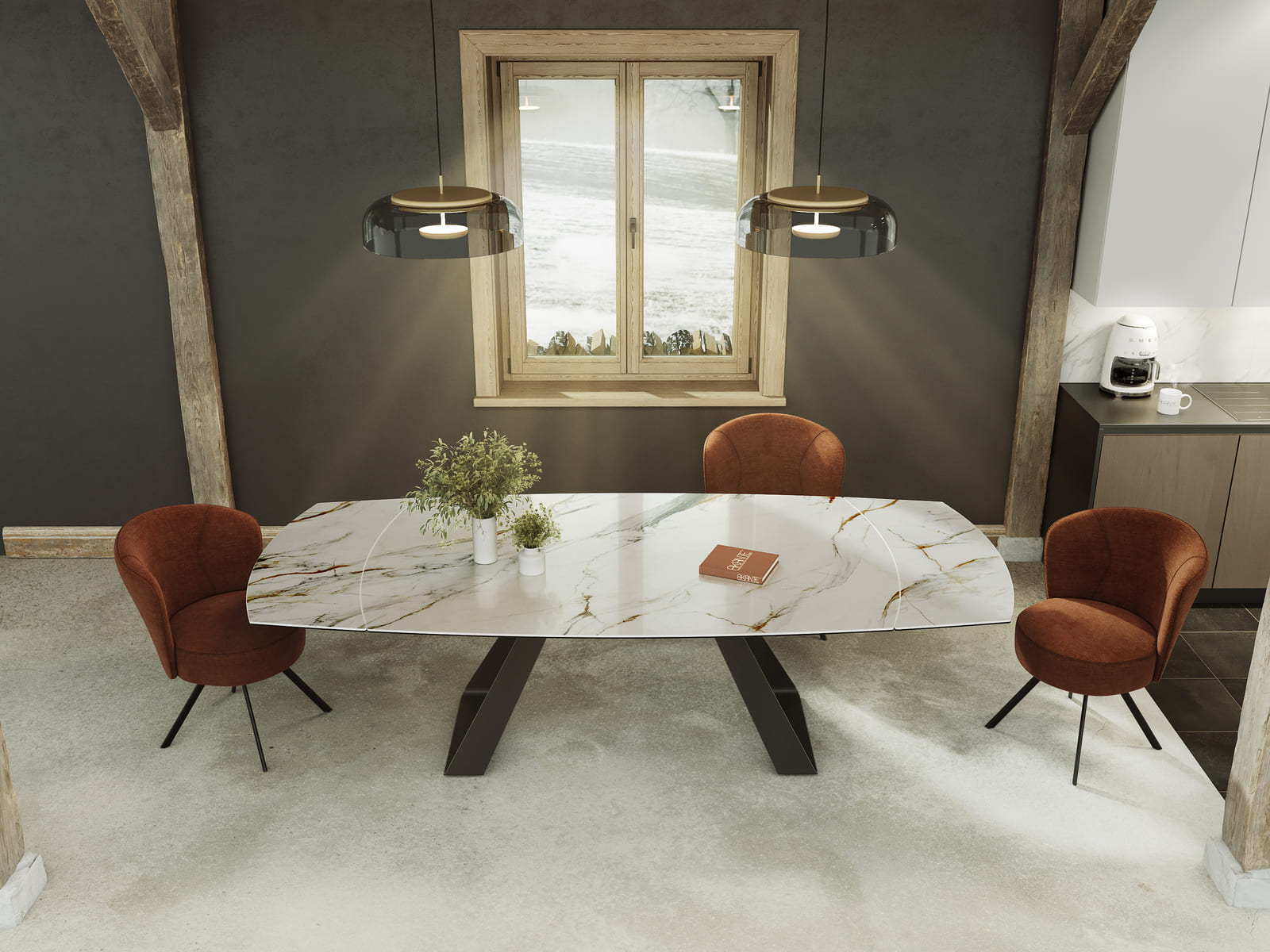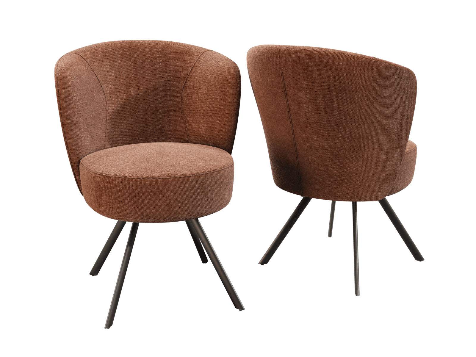 Ajoutez de la couleur à votre intérieur grâce à la chaise Prague, une nouveauté Akante. Son tissu Terracotta 100% polyester est doté d’une excellente résistance au boulochage, aux frottements et à la lumière. Son assise pivotante à 180° avec rappel rend son utilisation pratique et agréable. Ses contours aux formes arrondies créent un design minimaliste et tendance. Le modèle Prague possède un piétement raffiné en acier laqué noir mat. Ce modèle mesure 62 cm de largeur, 65 cm de profondeur, 84 cm de hauteur totale et 50 cm de hauteur d’assise.