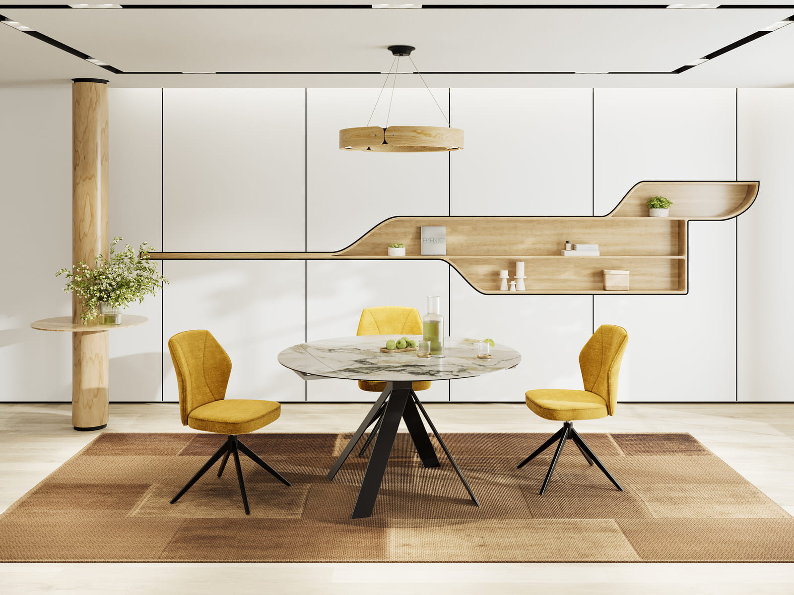 Idéale pour un salon contemporain et lumineux, la chaise Vienna est revêtue d’un tissu élégant de couleur Ocre. Cette chaise saura s’adapter aisément dans votre intérieur. Son assise pivotante à 180° avec rappel lui permet de revenir automatiquement sur sa position initiale. Son tissu 100% polyester est résistant au boulochage. Vienna mesure : 51 cm de largeur et 60 cm de profondeur, sa hauteur d’assise est de 48 cm et sa hauteur totale est de 89 cm.