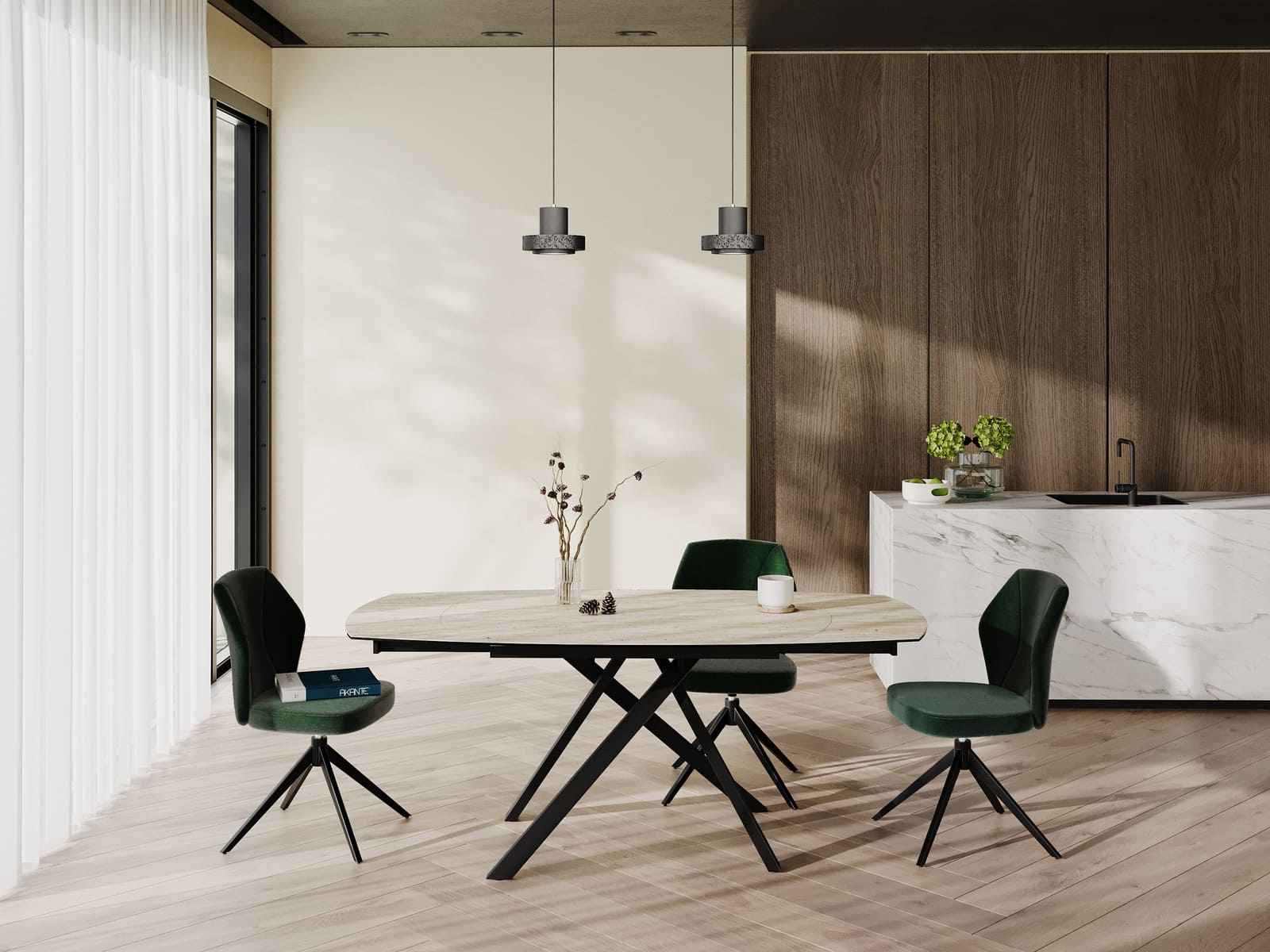 Le nouveau tissu Vert Sapin s’habille désormais de la chaise Vienna. Découvrez sa silhouette gracieuse aux courbes harmonieuses. Son tissu de haute qualité est résistant au boulochage et au frottement. Dotée d’une assise pivotante à 180° avec rappel, cette chaise sera idéale pour votre salle à manger. Concernant ses dimensions, Vienna mesure : 51 cm de largeur, 60 cm de profondeur, 89 cm de hauteur et 48 cm de hauteur d’assise. Découvrez sa version avec accoudoirs pour un confort optimal.