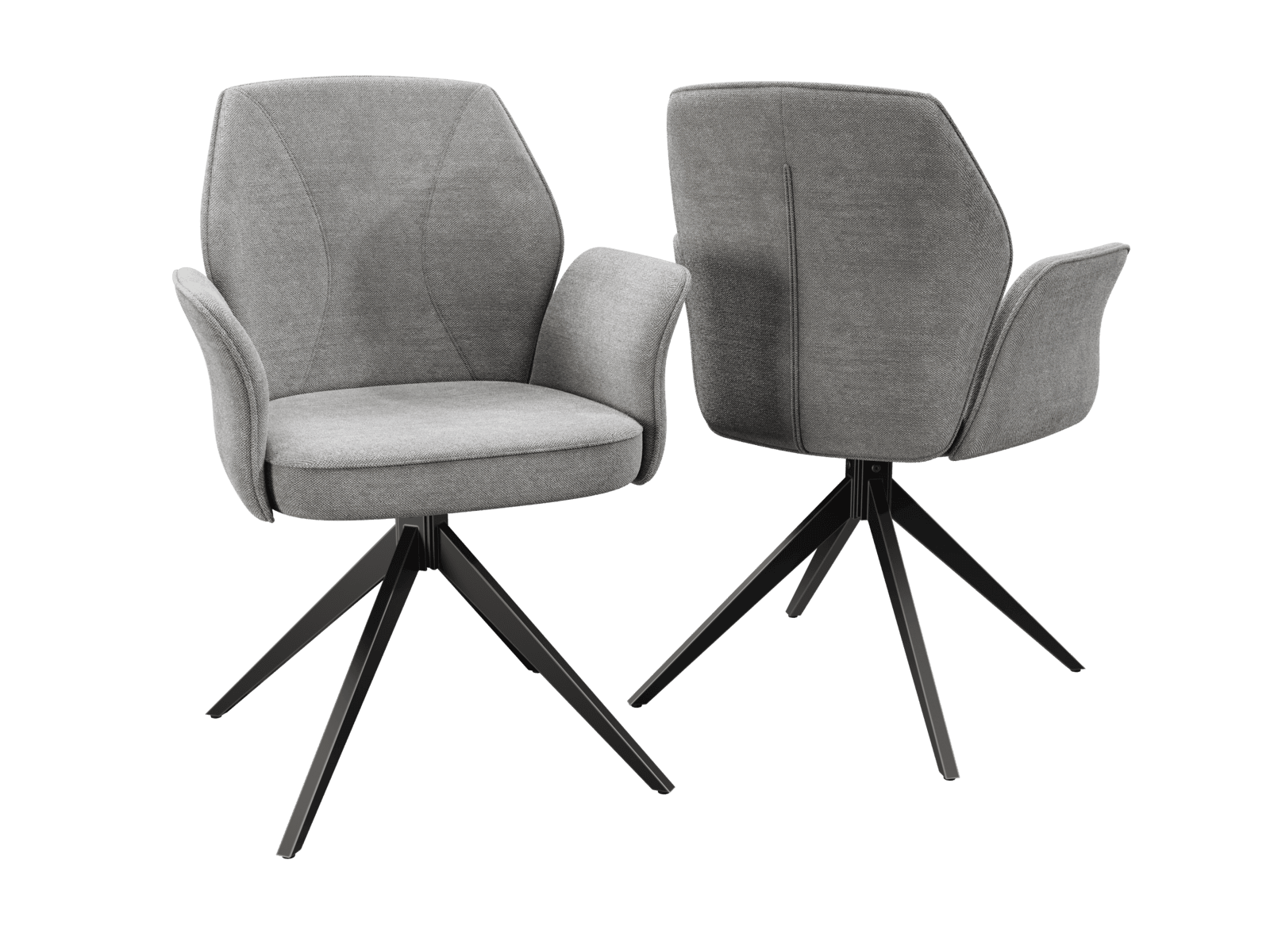 Adoptez la chaise Vienna pour un coin repas minimaliste et épuré. Son tissu élégant de couleur Gris Clair est un intemporel, il conviendra parfaitement à toute les teintes de tables de repas. Vienna est dotée d’un mécanisme qui pivote à 180° avec rappel. Sa hauteur d’assise mesure 48 cm pour une profondeur de 60 cm. Sa hauteur totale mesure 89 cm pour une largeur de 64 cm. Vienna possède également des accoudoirs pour un agréable confort d’assise.