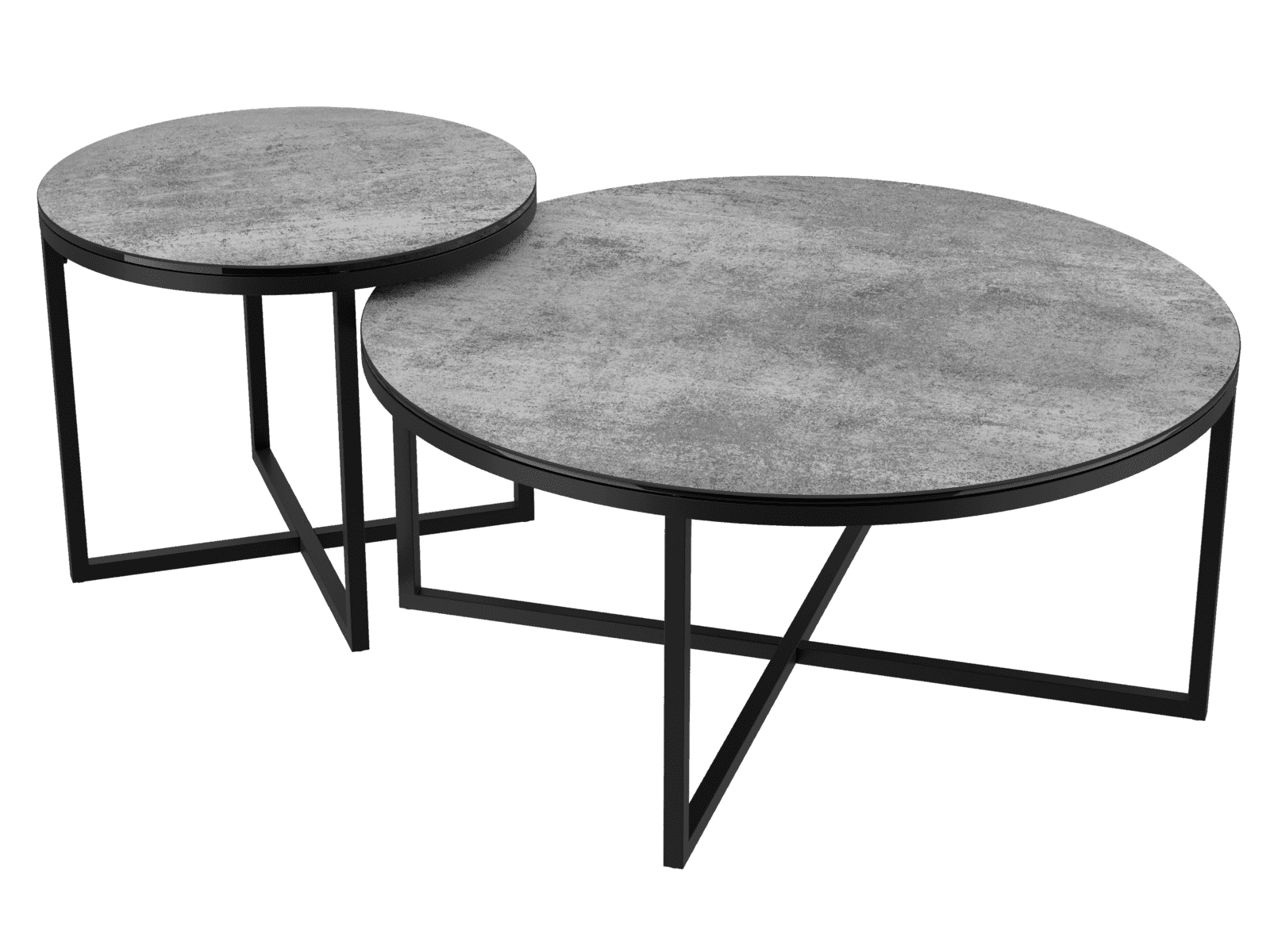 Talia, une table basse ronde qui allie le design et l’élégance. Grâce à son piétement croisé en acier laqué noir mat et son plateau en céramique silver de 90 cm de diamètre, elle apportera une touche tendance à votre séjour. Sa céramique de 3 mm d’épaisseur est collée sur un verre de 6 mm ce qui vous assure une table basse pratique et solide. Pour personnaliser le coeur de votre séjour, vous pouvez la marier à une table d’appoint de la même gamme pour dynamiser votre dé-coration.