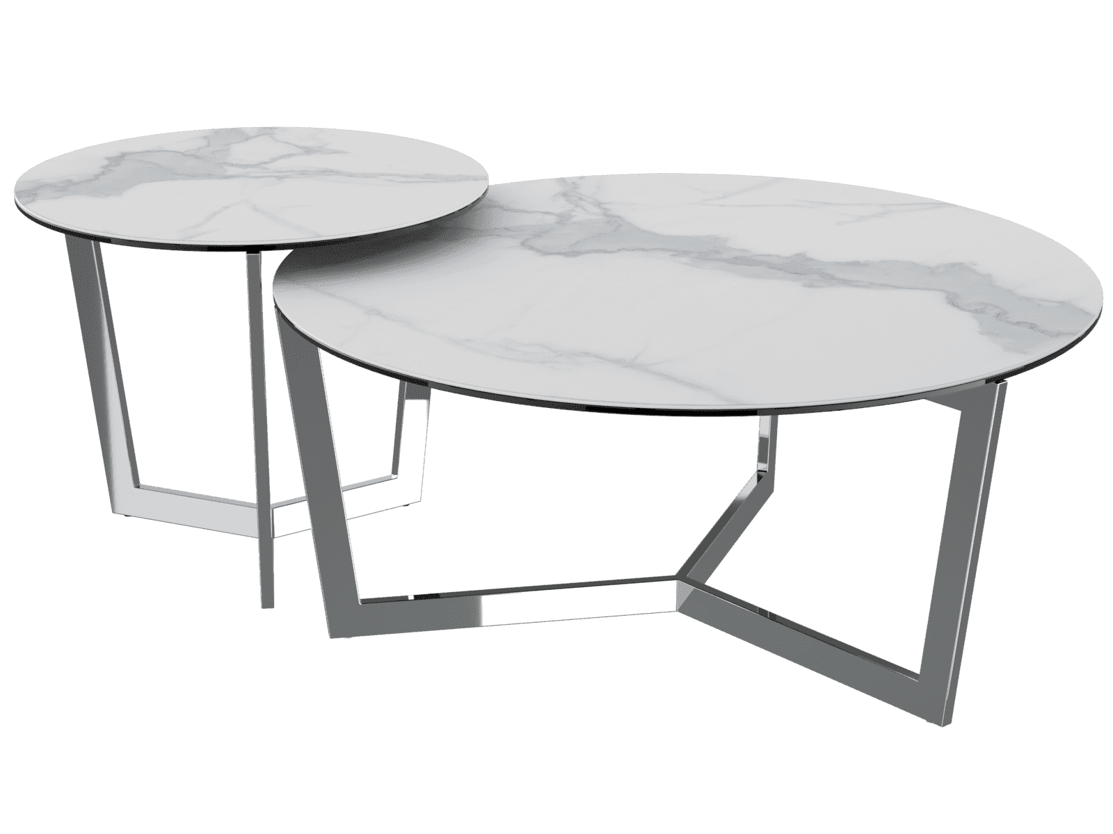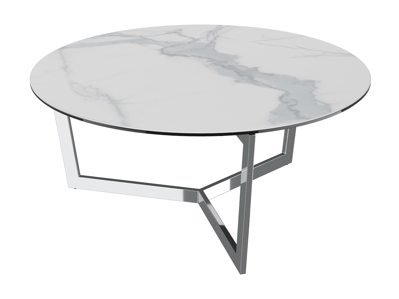 Akante vous propose de découvrir la table basse Tamara. Cette dernière dispose d'un plateau en céramique marbré mat ainsi que d'un piètement en acier inoxydable poli. Le diamètre de sa structure arrondie est de 90 cm.