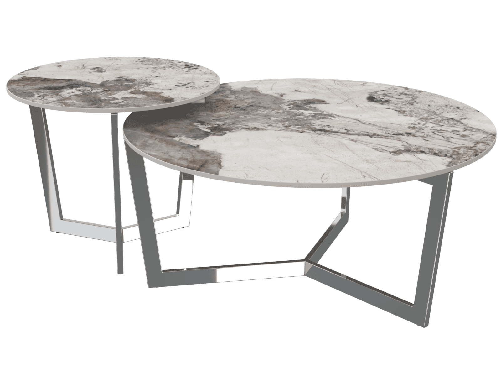Les tons doux de la table basse Tamara lui permettront de s'intégrer à tout type d'intérieur. Son élégante forme ronde repose sur une base en acier inoxydable poli. Le design de la base assure une stabilité et une robustesse de premier ordre. La table basse Tamara deviendra ainsi une pièce centrale de votre salon. Son plateau est composé d'une plaque de céramique pleine masse en marbre calcatta de 11 mm d'épaisseur : un modèle d'élégance et de résistance.