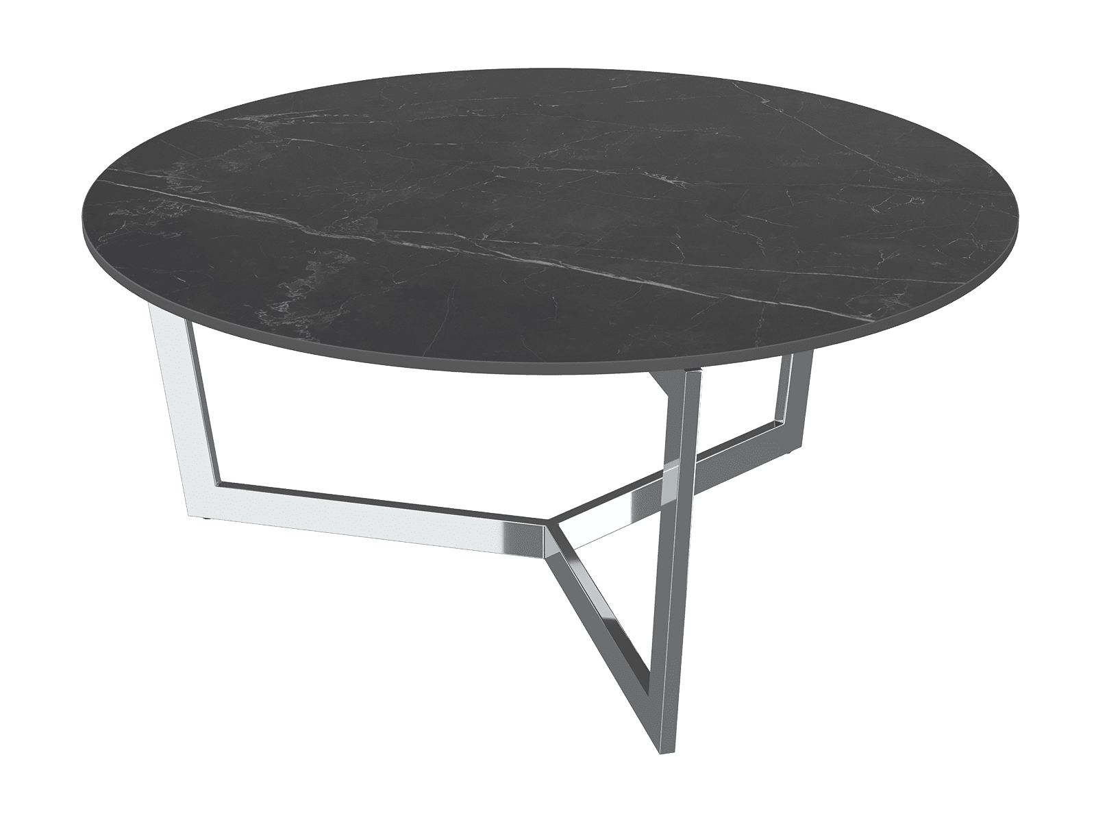 La dernière plaque en céramique d'Akante est un plaisir pour les yeux. La table basse Tamara avec la plaque en céramique en marbre marquina embellira votre salon. La céramique a une épaisseur de 11 mm. La table a un diamètre de 90 cm et une hauteur de 40 cm. Les trois pieds de la base se raccordent harmonieusement au centre de la table.