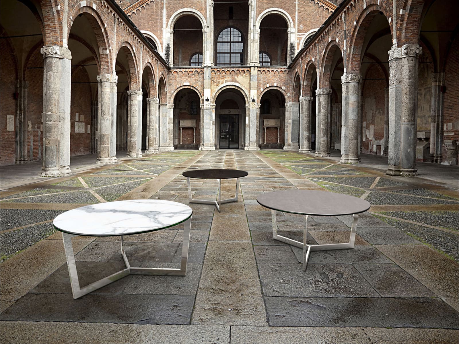 Voici Tamara, une table basse signée Akante. Originale et classique par sa forme arrondie, Tamara est composée d'un plateau en céramique acier ainsi que d'un piètement en acier inoxydable poli. Le diamètre de la structure de Tamara est de 90 cm.