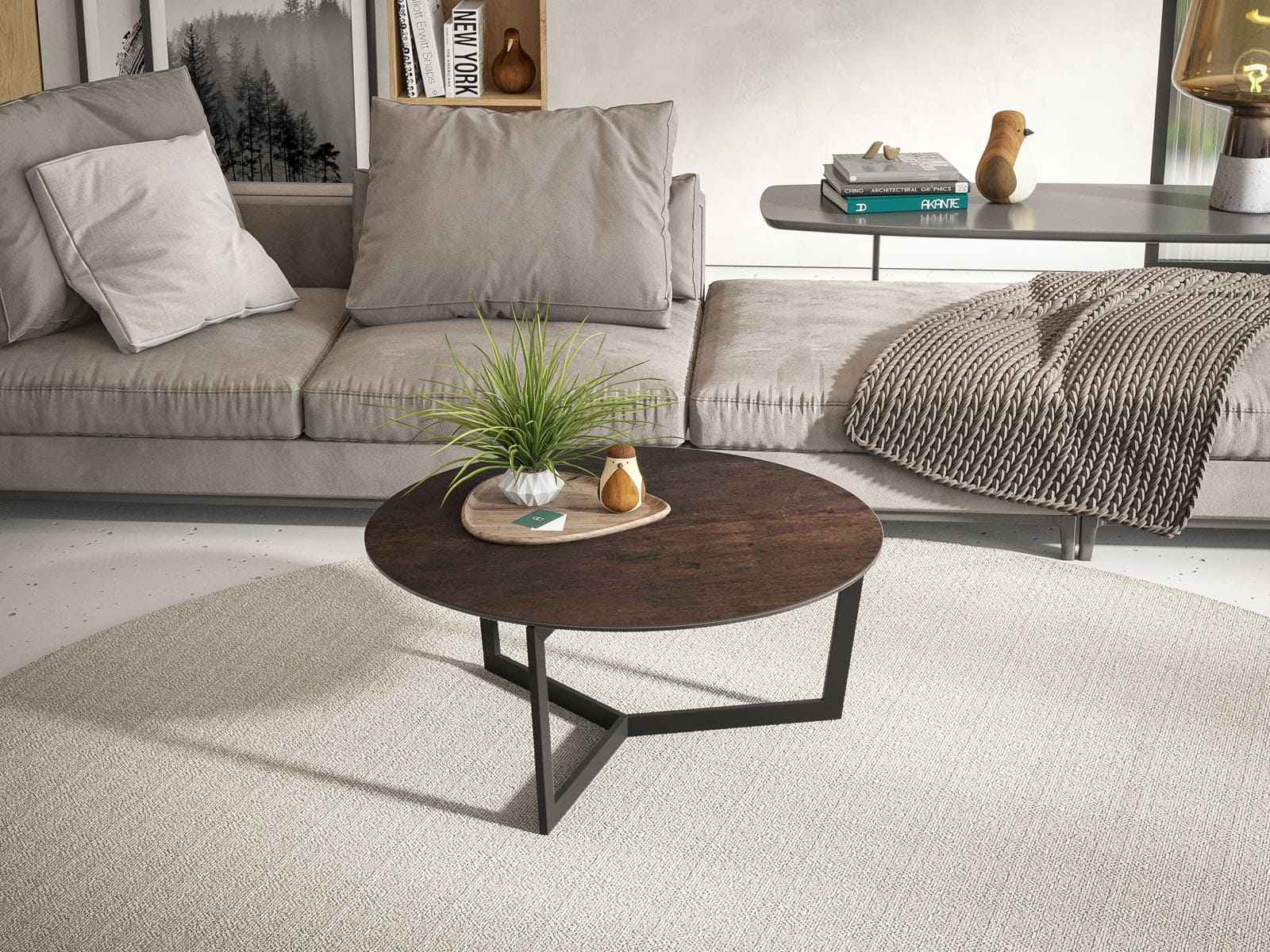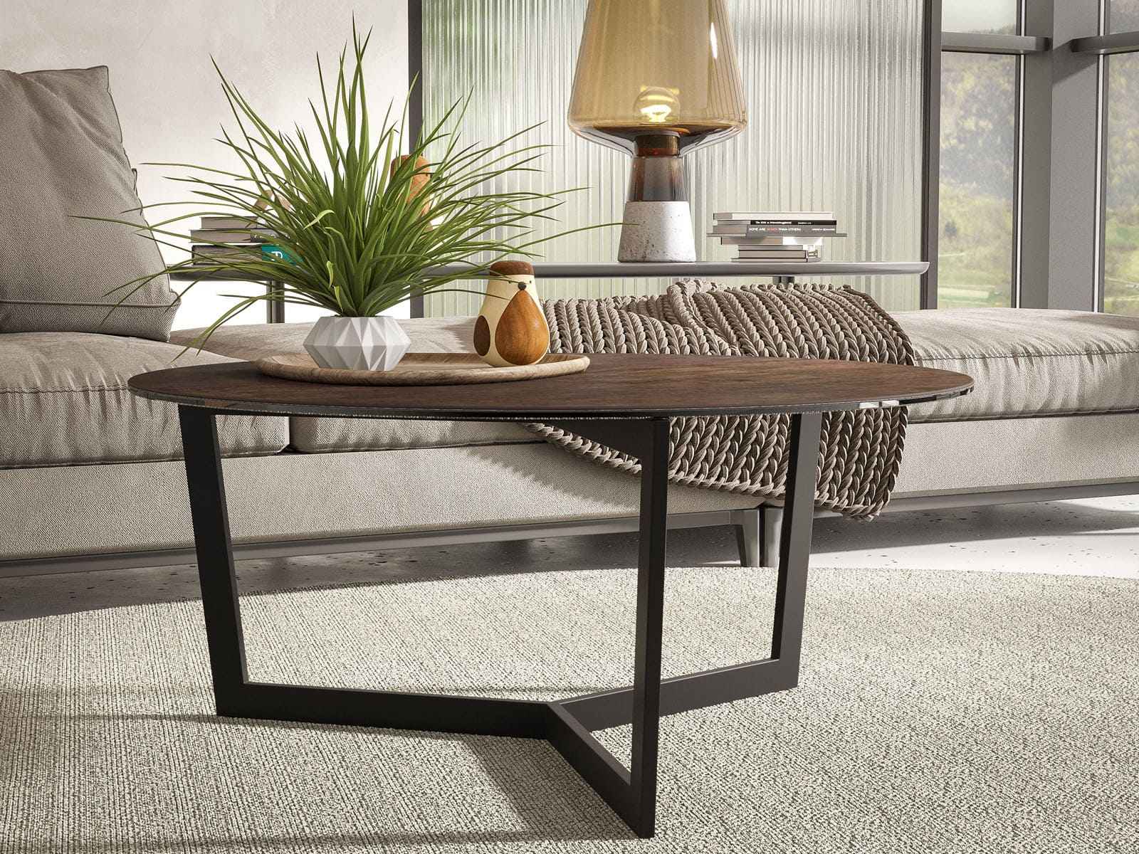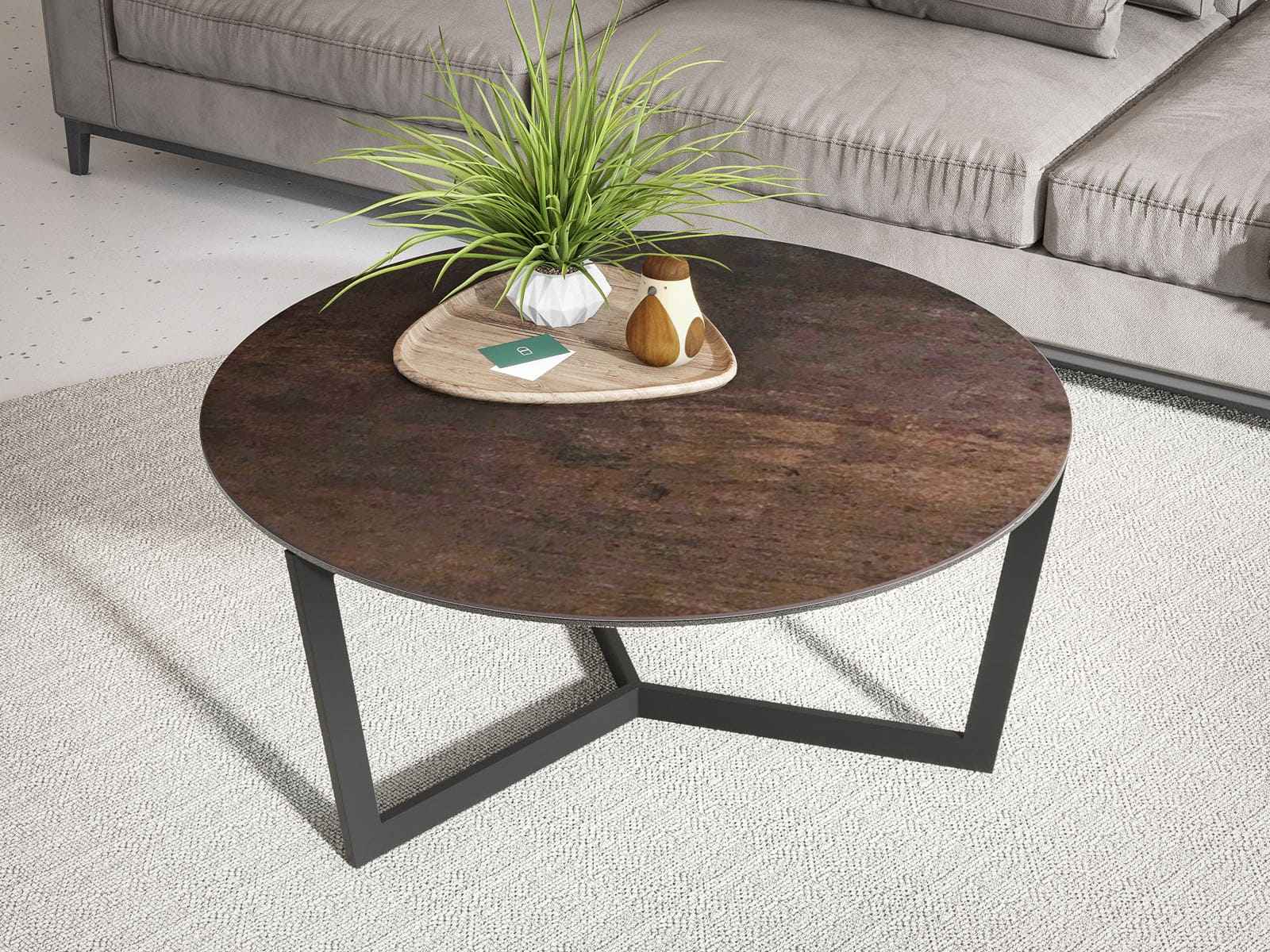 Voici la table Tamara en acier et céramique avec son empiècement en acier laqué noir. Pour un look rustique et branché qui vous assure élégance et sobriété. Akante vous propose cette table basse avec un plateau de 3mm en céramique acier, collée sur un vitrage de 6mm qui lui confère sécurité et sureté.